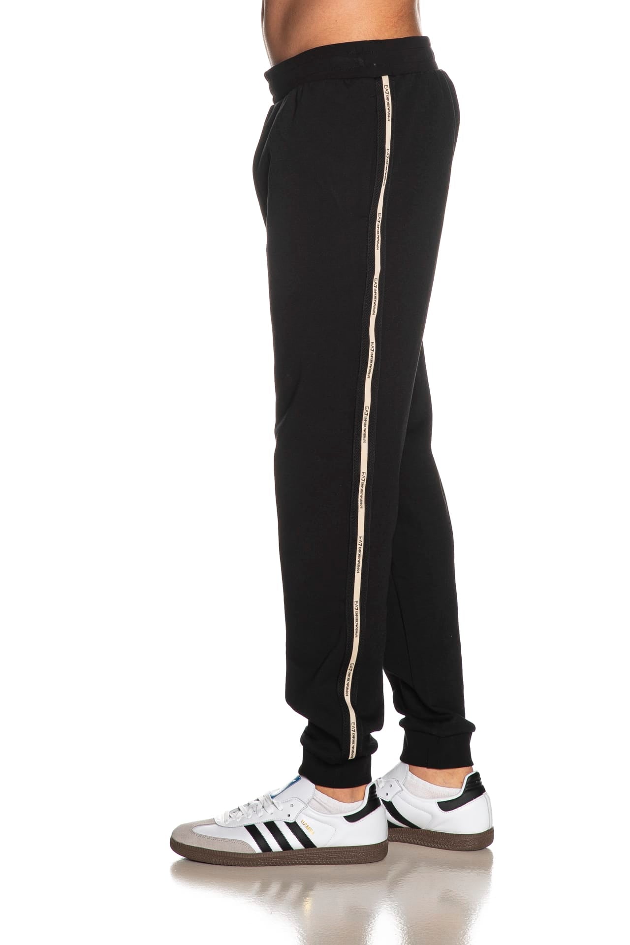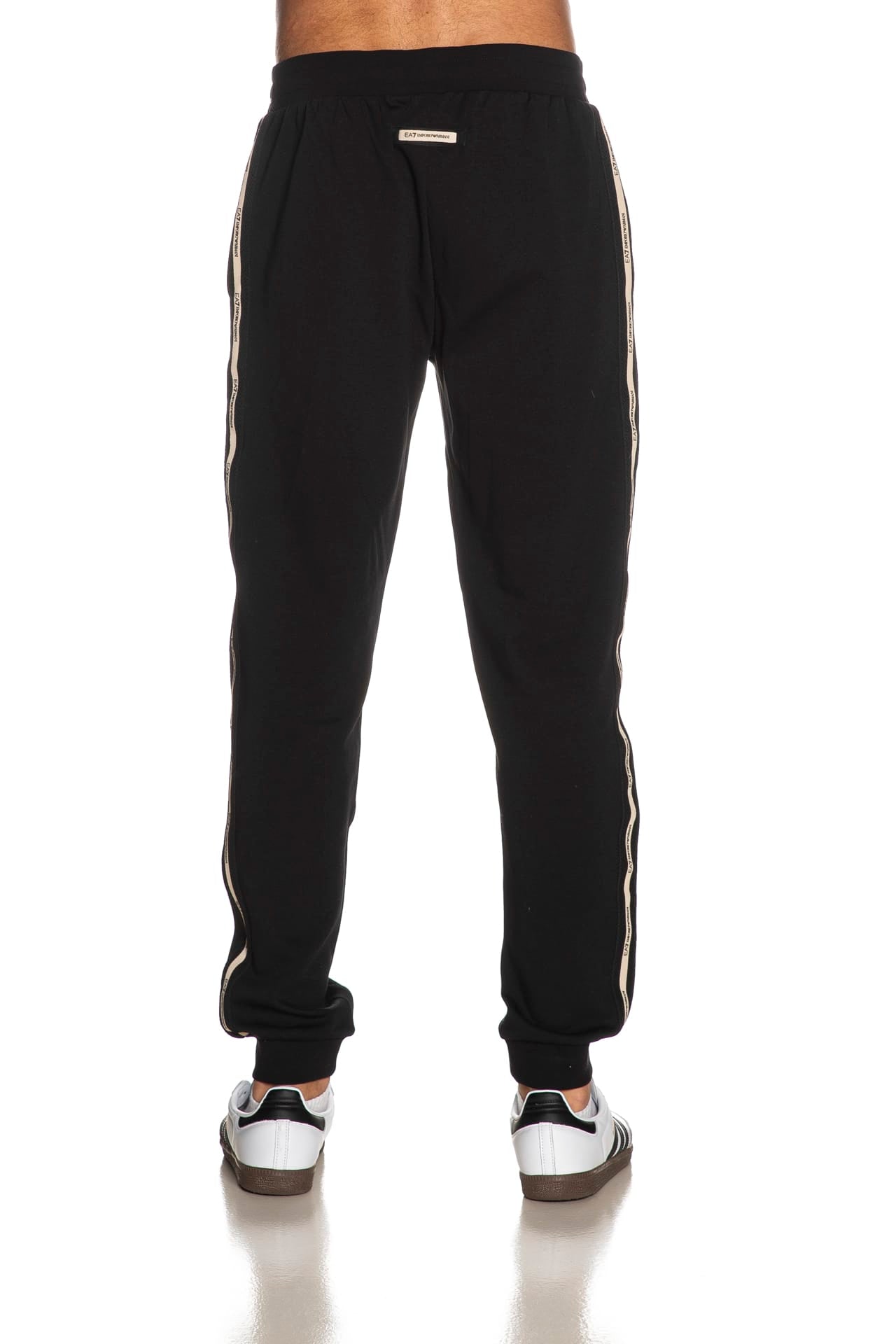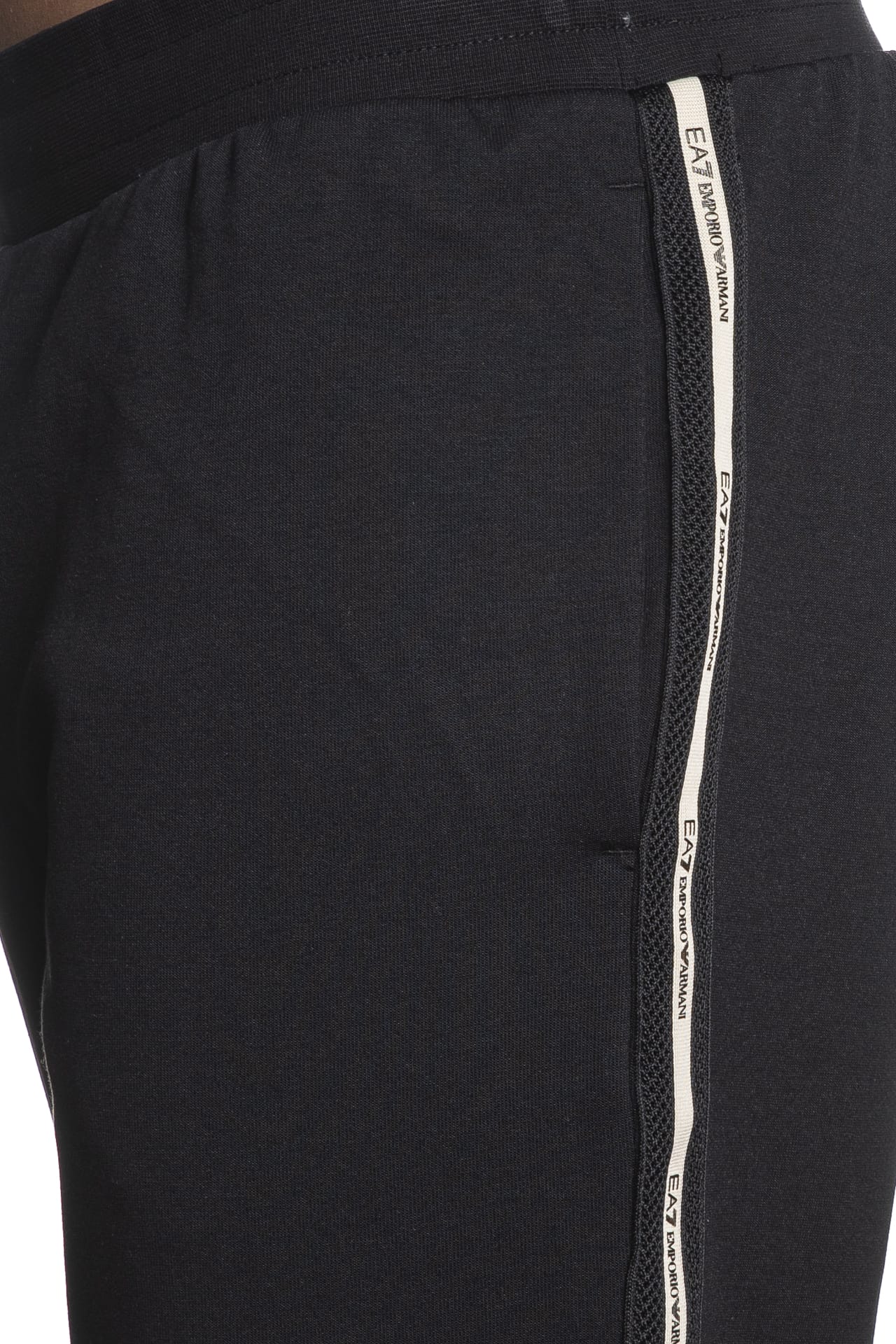 Pantalone Ea7 Train Lg Series Tape Trim da uomo in interlock di misto cotone e poliestere, modello jogger con coulisse interna ed elastico in vita, tasche a filo, polsini in maglia a costine, bande laterali di passamaneria logata a contrasto sulla gamba e etichetta patch gommata applicata posteriormente