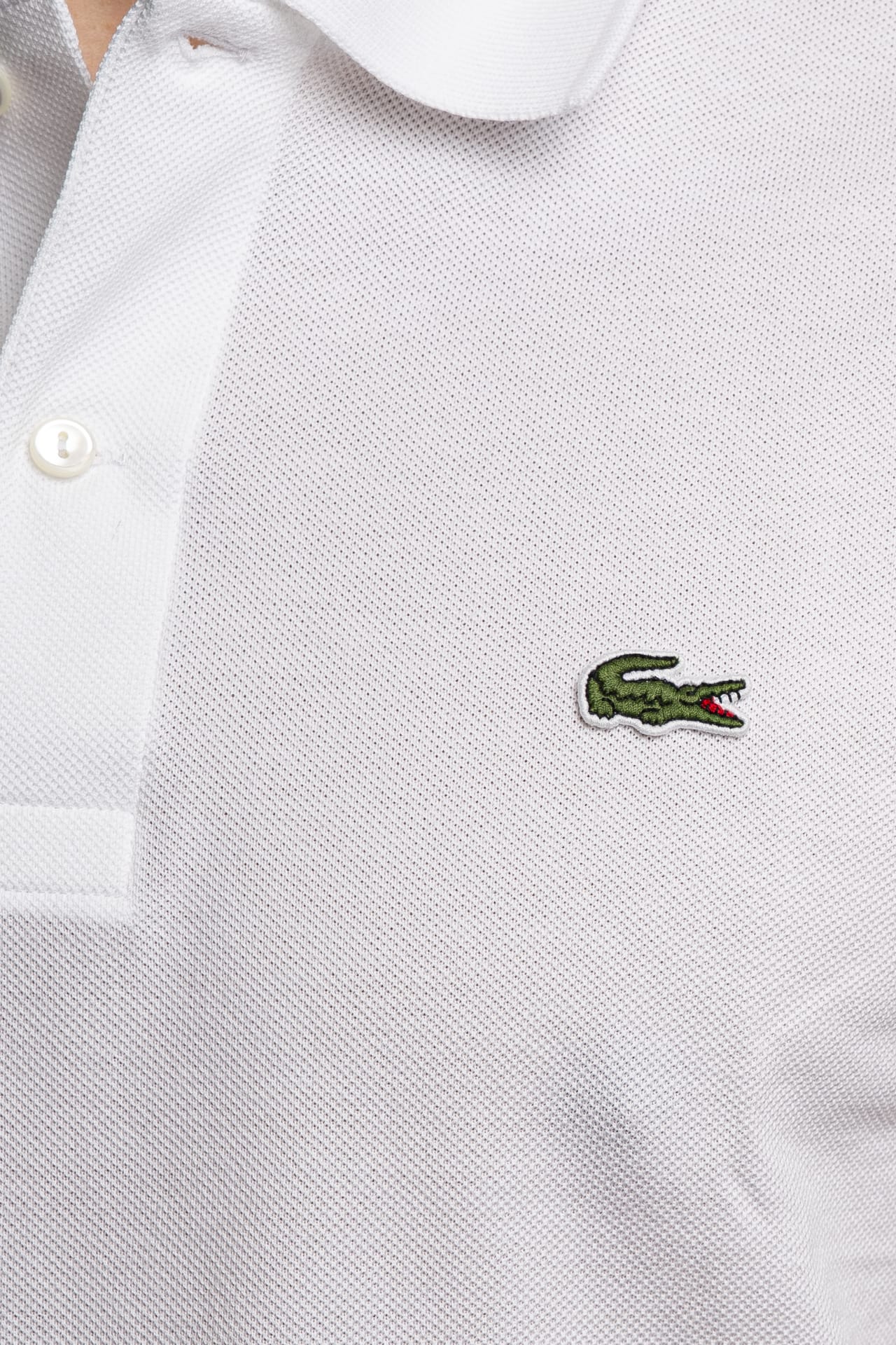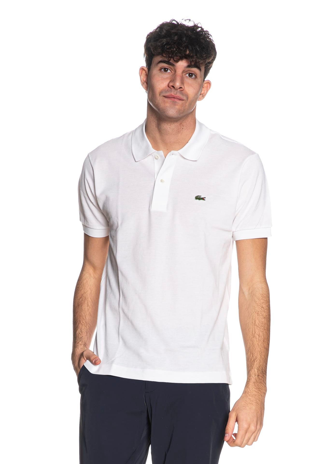 Polo Lacoste 1212 da uomo in piquet di cotone, classic fit, con colletto e bordo manica corta in maglia a costine, abbottonatura a due bottoni, monogramma istituzionale ricamato a filo patch sul petto e micro spacchetti laterali