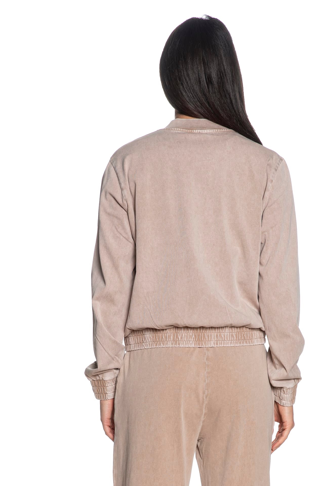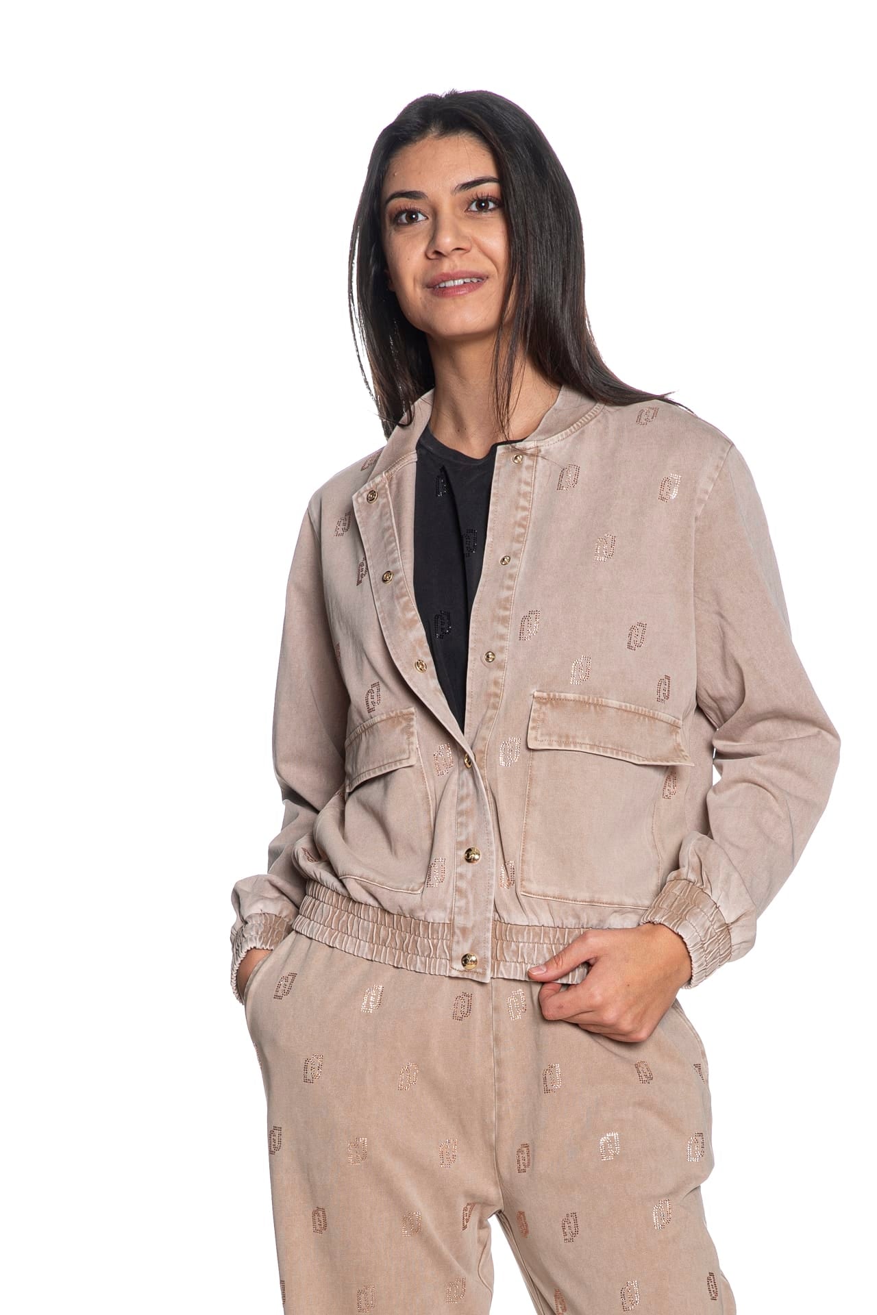 Felpa Liu Jo Sport Bmr Stss J Dlv da donna in jersey sottoposto a trattamento delavè per un effetto vintage, modello bomber, con lavorazione logo allover in strass nella parte anteriore, chiusura full ad automatici dorati, tasche a toppa con pattina frontali, colletto in maglina, polsini e cannolè elasticizzati