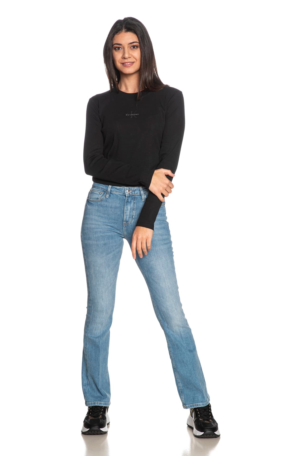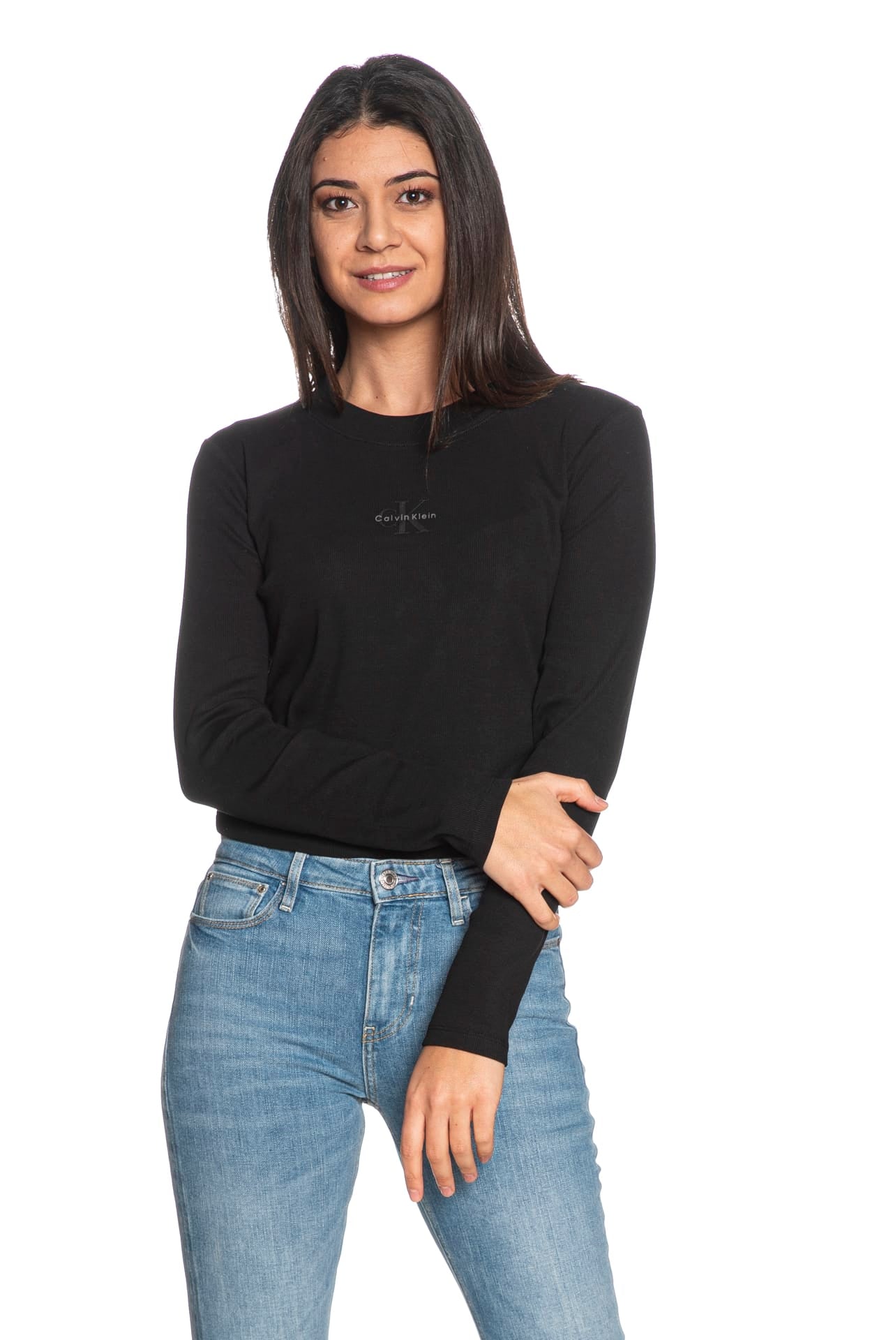T Shirt Calvin Klein Rib Mono Baby Ls Tee Da Donna Nera
