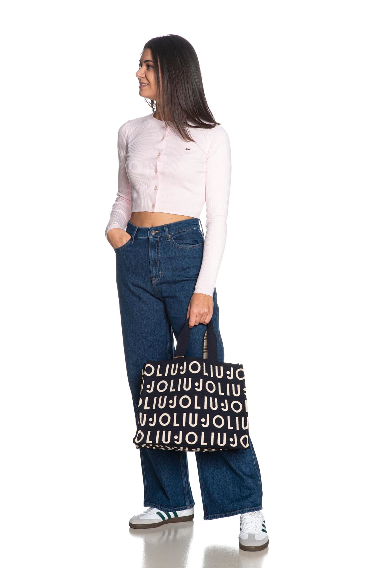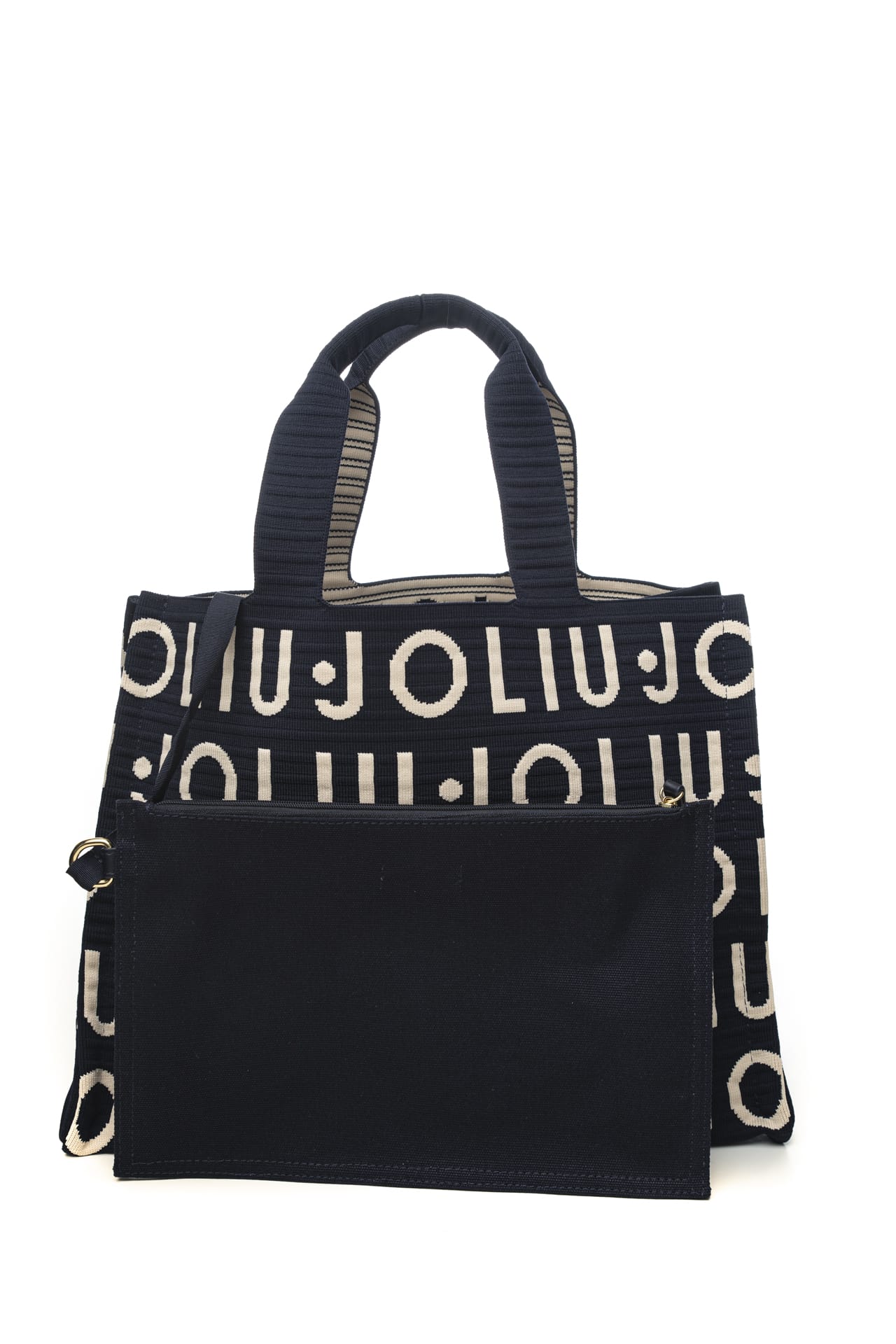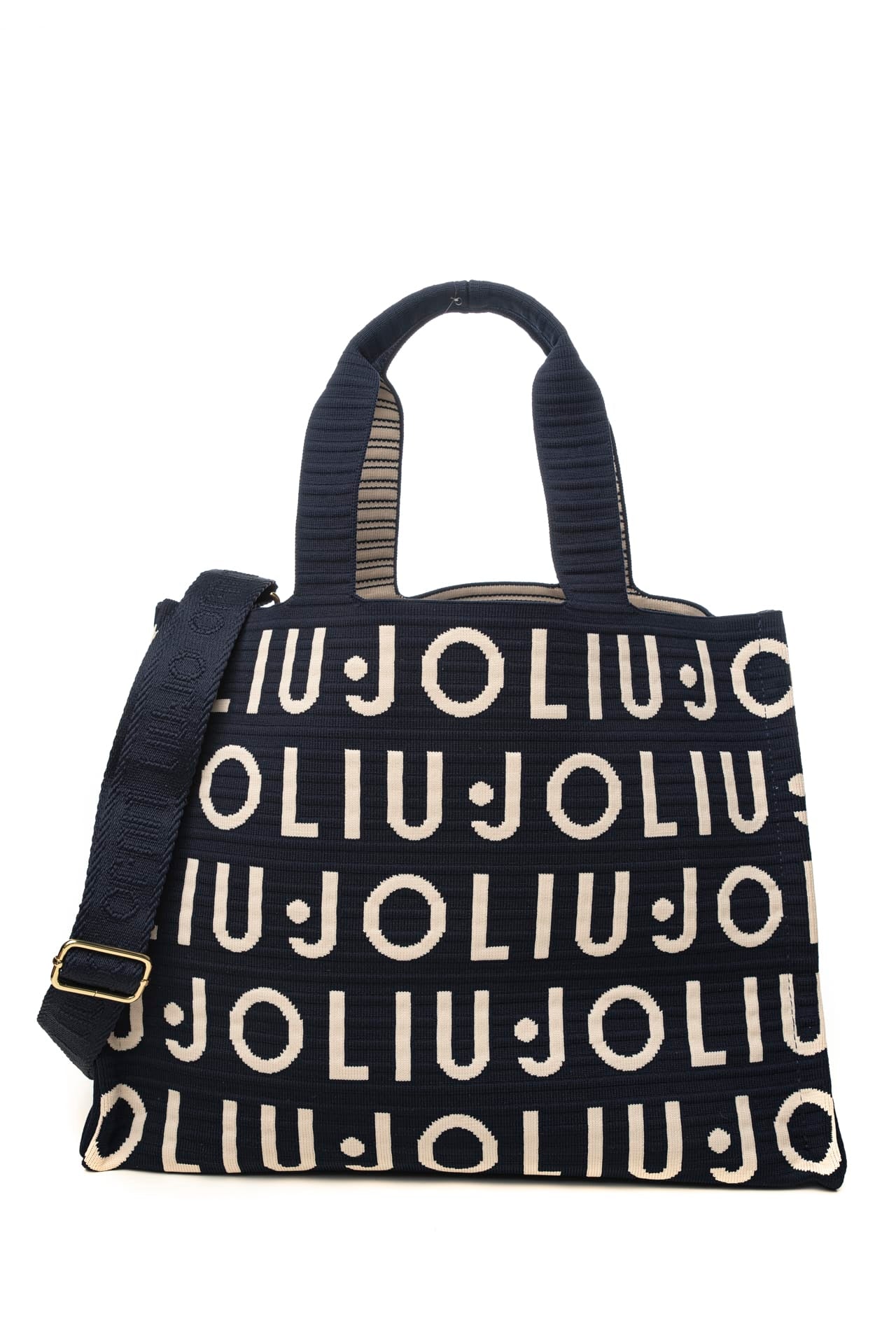 Borsa Liu Jo Tt L Knitted Da Donna Blu Notte Loghi Jacquard Panna In Tessuto A Maglia