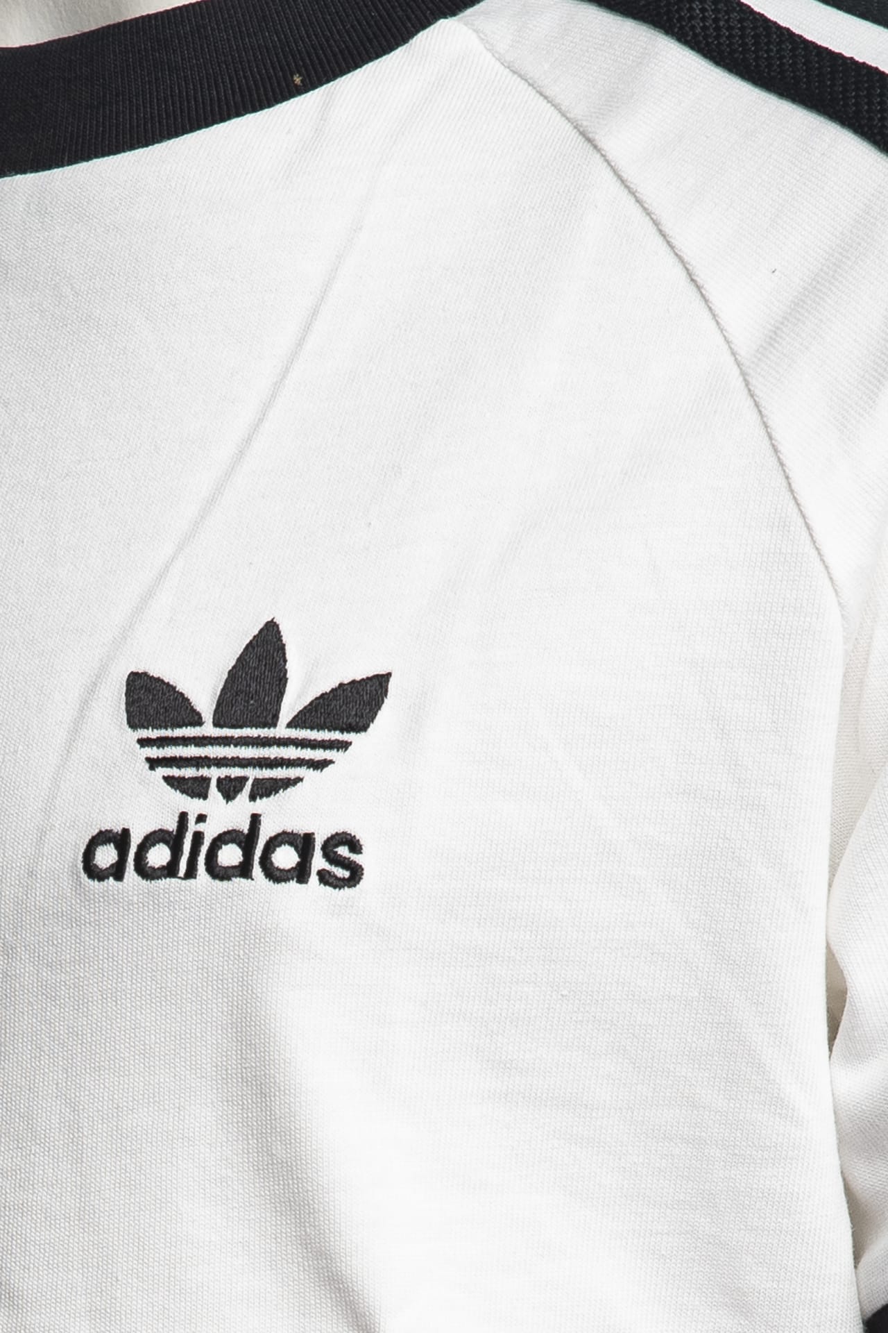 T shirt Adidas Originals 3S Stripes Tee Kids da bambino in jersey, girocollo, con piccolo logo ricamato sul petto e strisce in gros grain su spalle e maniche corte raglan