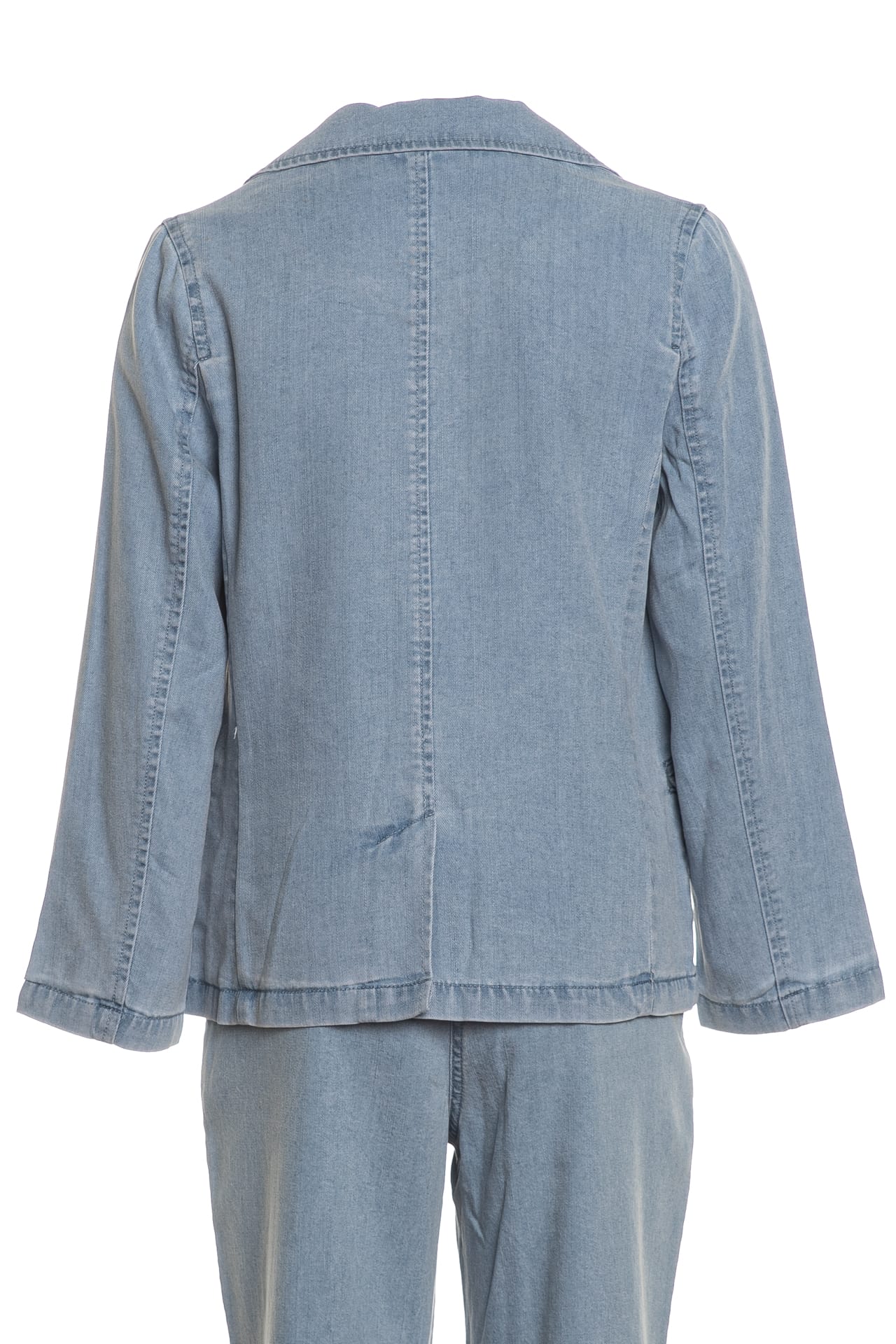 Giacca Sarabanda Blaz One Button Desert Glow da bambina in denim chambray stretch di misto lyocell viscosa e poliestere sottoposto a trattamento per un aspetto vissuto, modello blazer monopetto ad un bottone, con revers, fodera, tasche a filo con patta e spacchetto posteriore