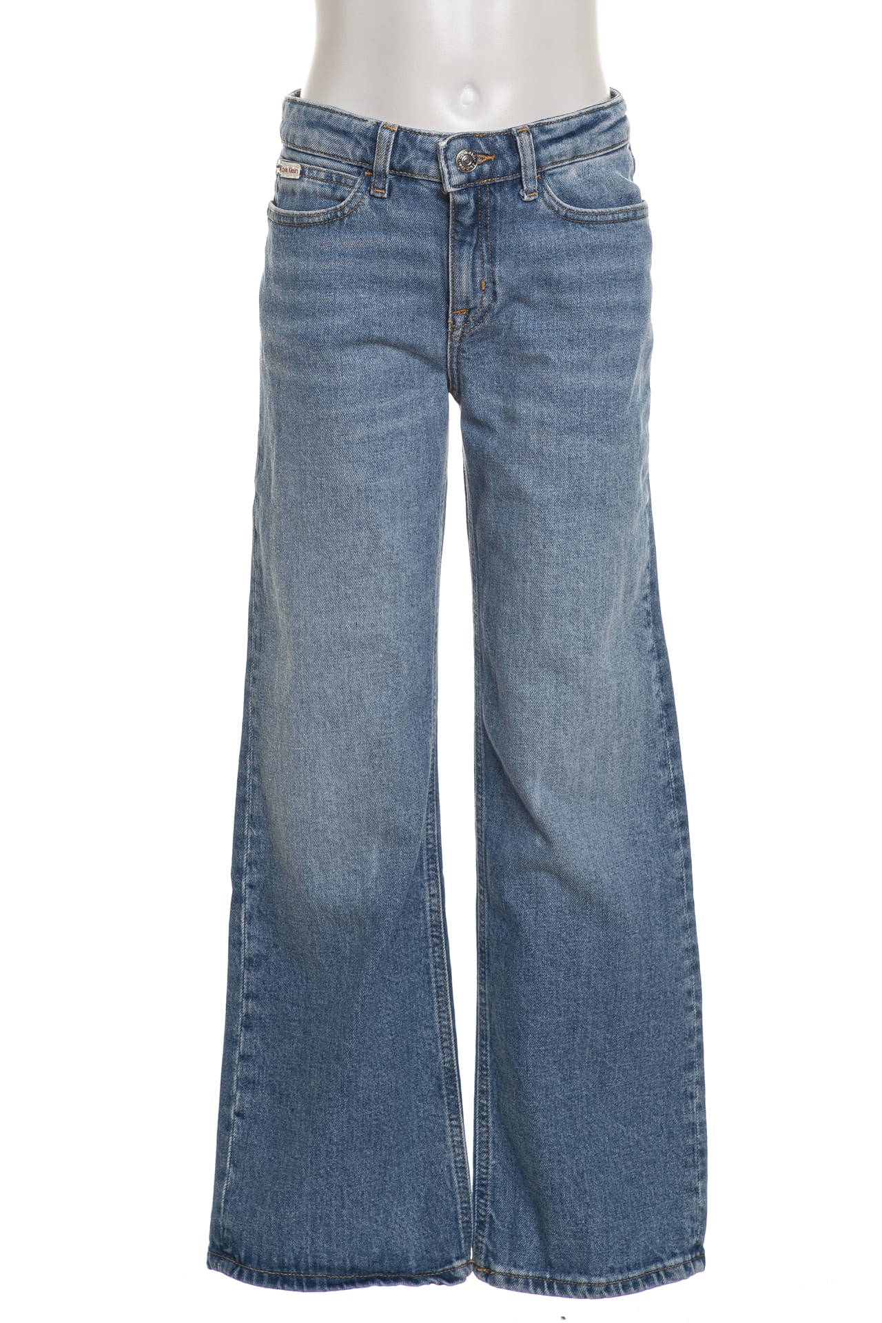 Jeans Calvin Klein Hr Wi Leg Cloudy da bambina in denim di cotone stretch sottoposto a trattamento per un aspetto vintage, modello cinque tasche relaxed fit a vita alta e gamba ampia, con chiusura zip coperta e bottone