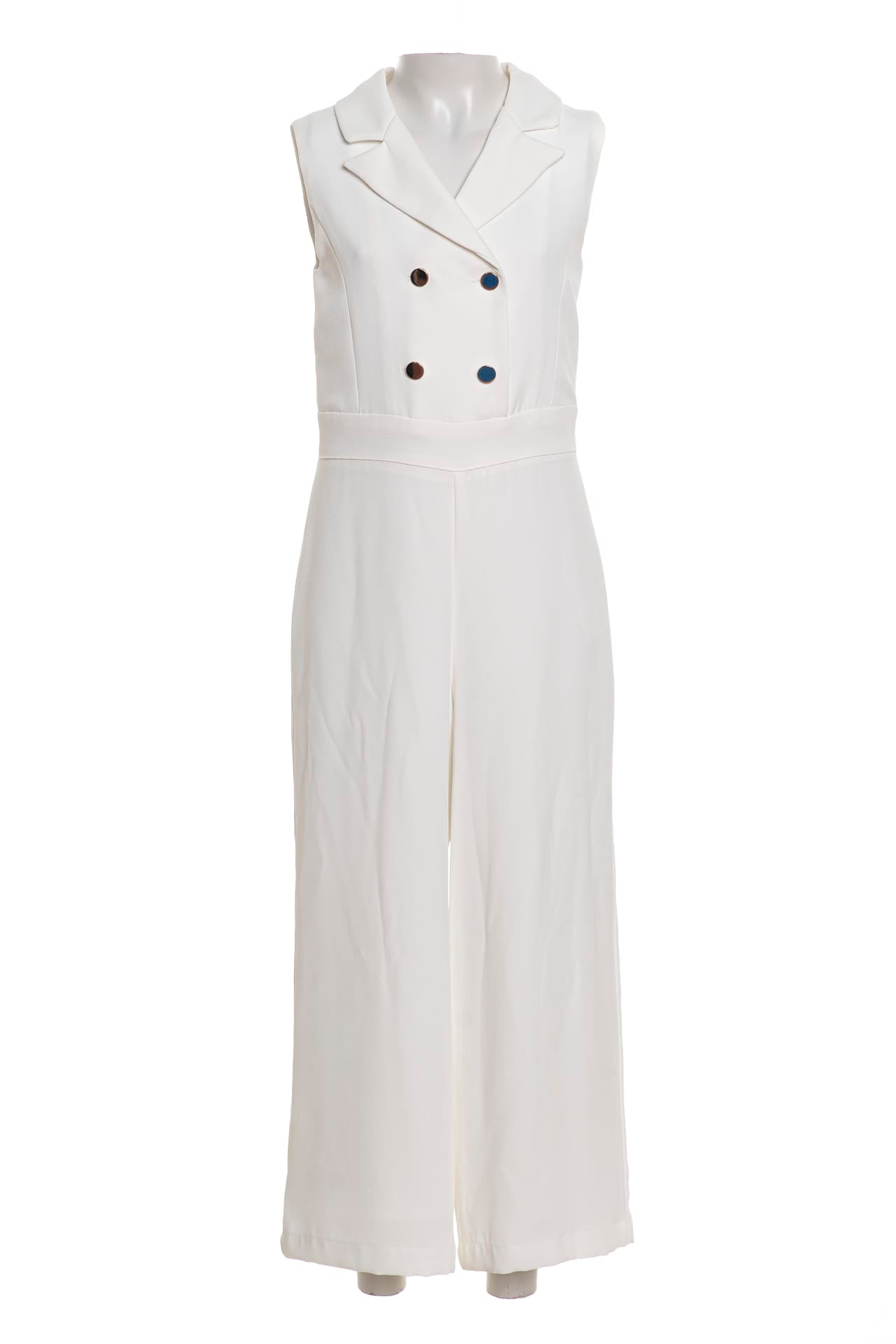 Tuta Intera Sarabanda Desert Glow da bambina crepes di poliestere, con scollo a v e revers, abbottonatura doppiopetto sul corpetto canotta, chiusura ful zip a scomparsa sulla schiena, fodera tono su tono e pantalone palazzo