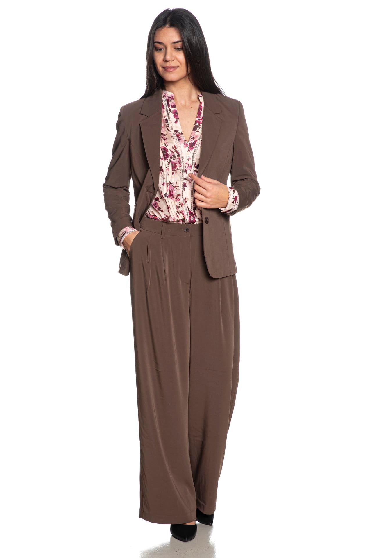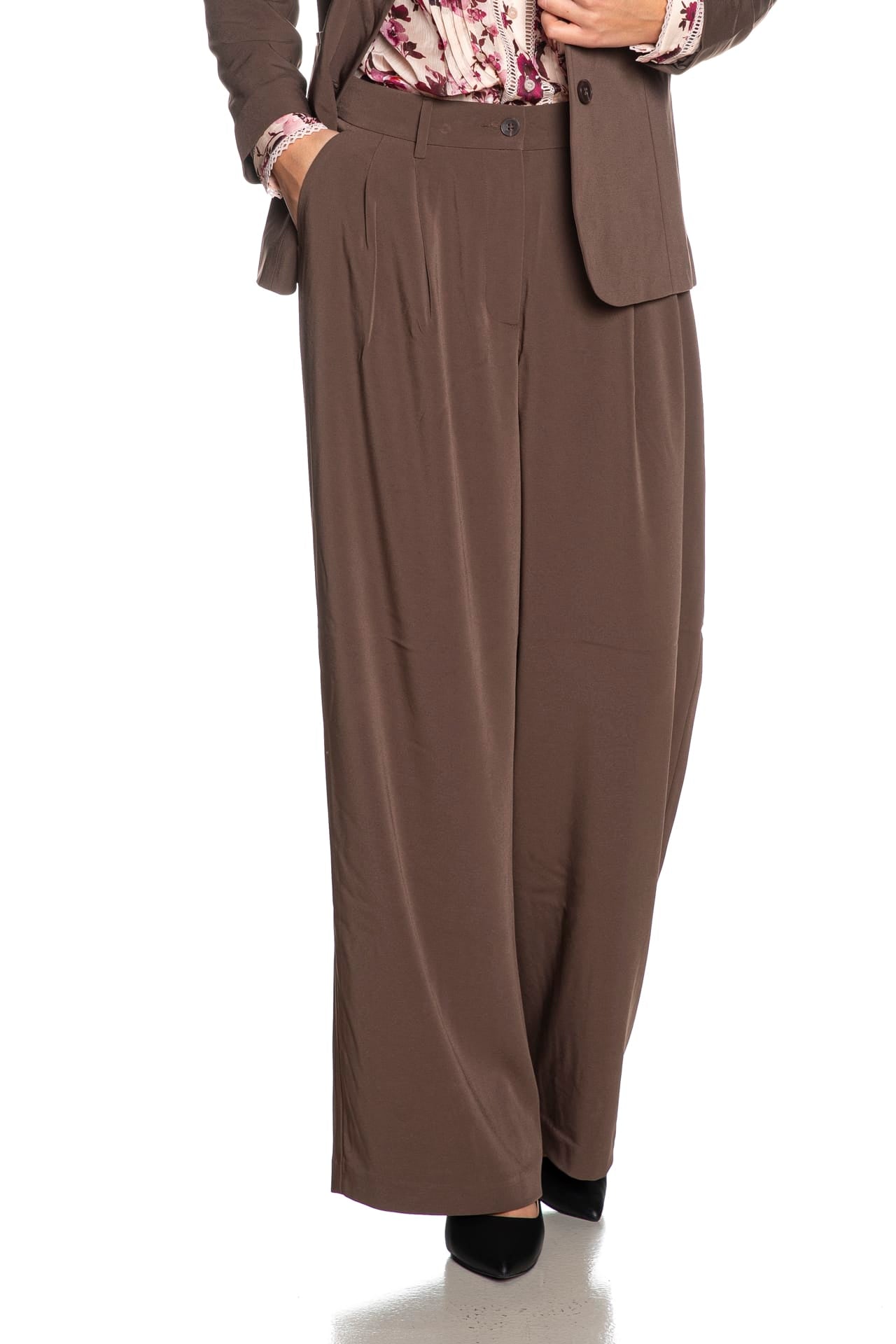 Pantalone Only Dove Life W da donna in tessuto a navetta stretch di poliestere riciclato, modello chino wide fit a vita alta, con doppie pinces laterali, tasca america, chiusura zip coperta e bottone