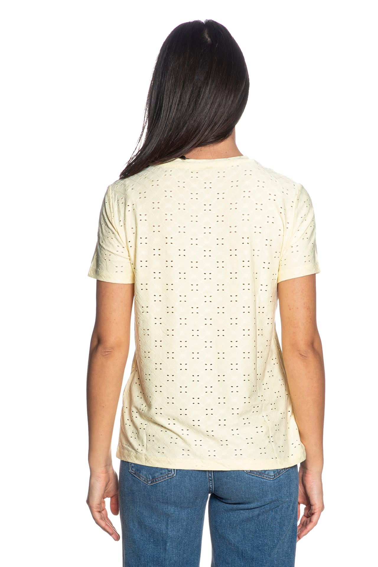 T-Shirt Only Cathinka da donna in tessuto di poliestere stretch effetto pizzo sangallo, regular fit a manica corta
