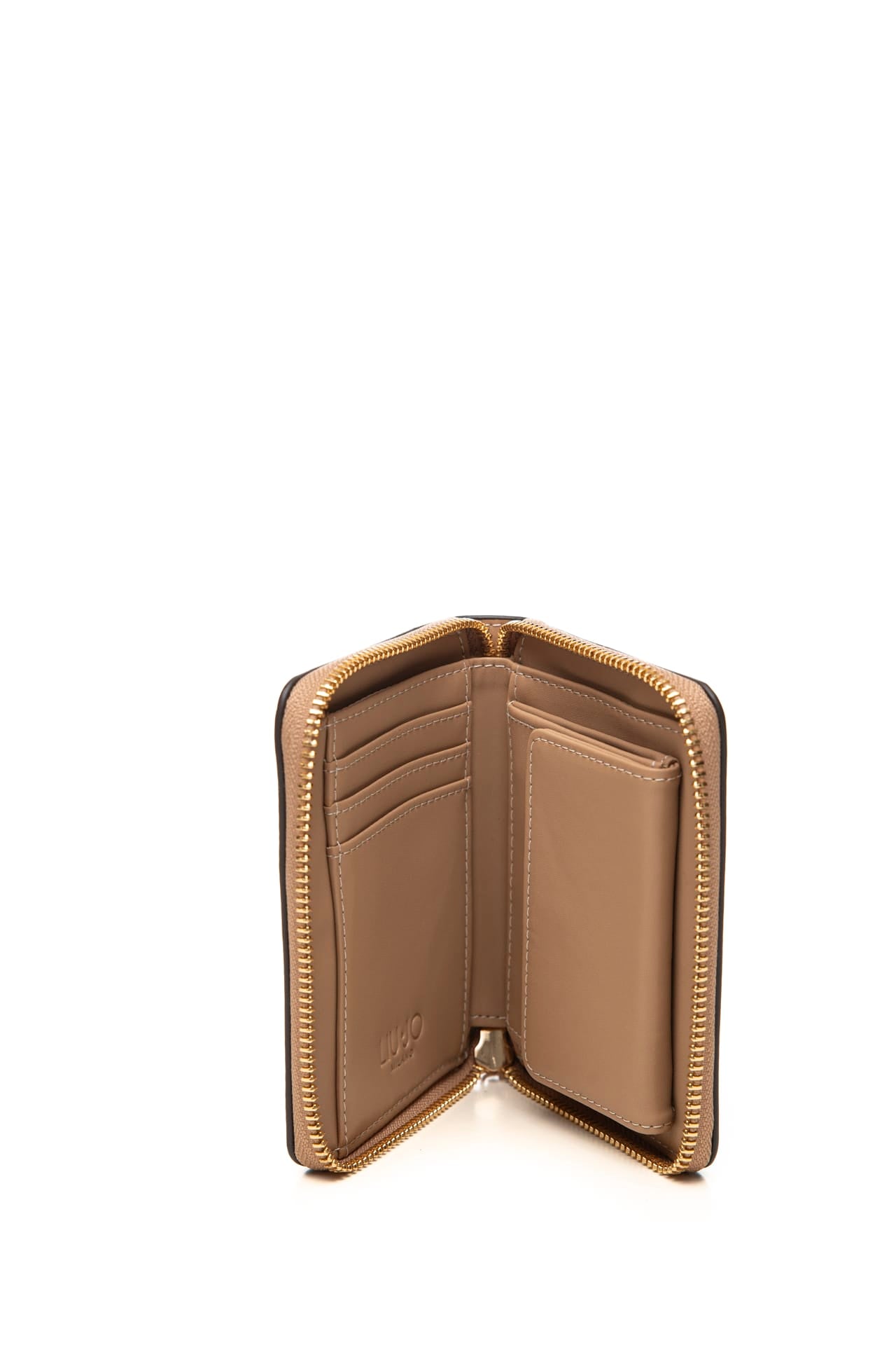 Portafoglio Liu Jo Caliwen Zip Around M da donna in poliuretano martellato stampato allover a monogrammi in contrasto colore, con logo in metallo dorato, chiusura full zip che si apre su vano a libro per banconote, tre tasche per carte e portamonete con patta Misure: 13x2,5x10 cm
