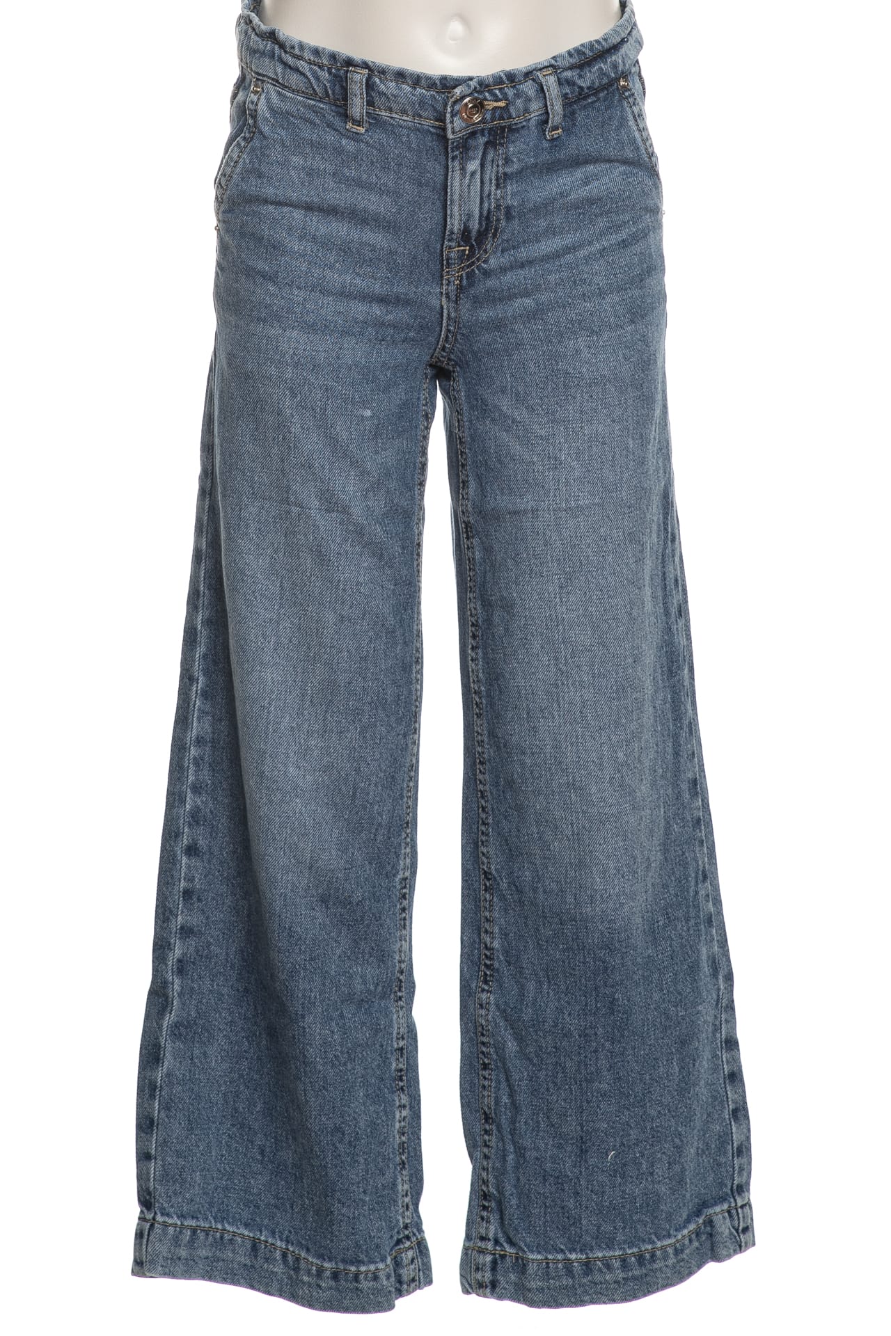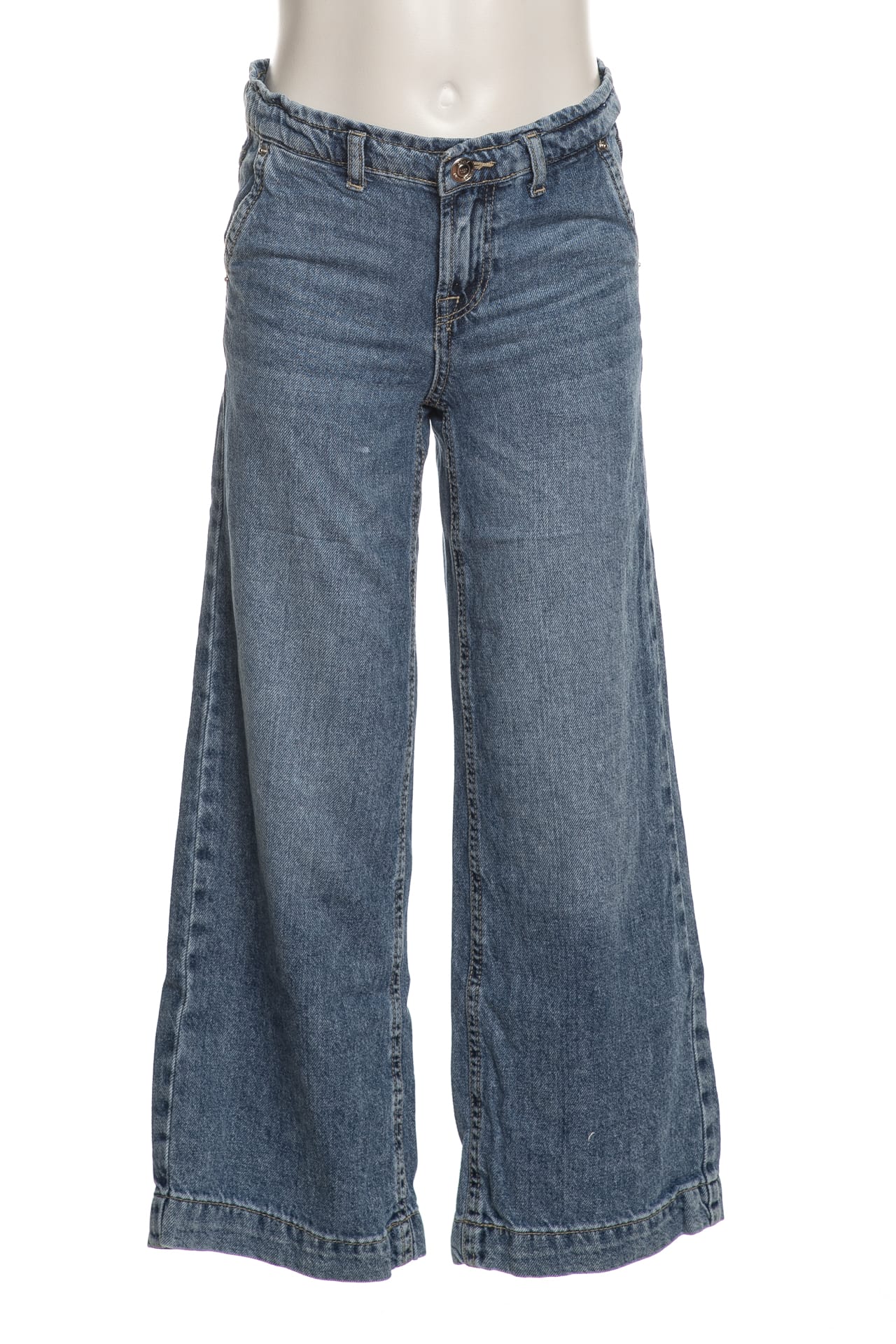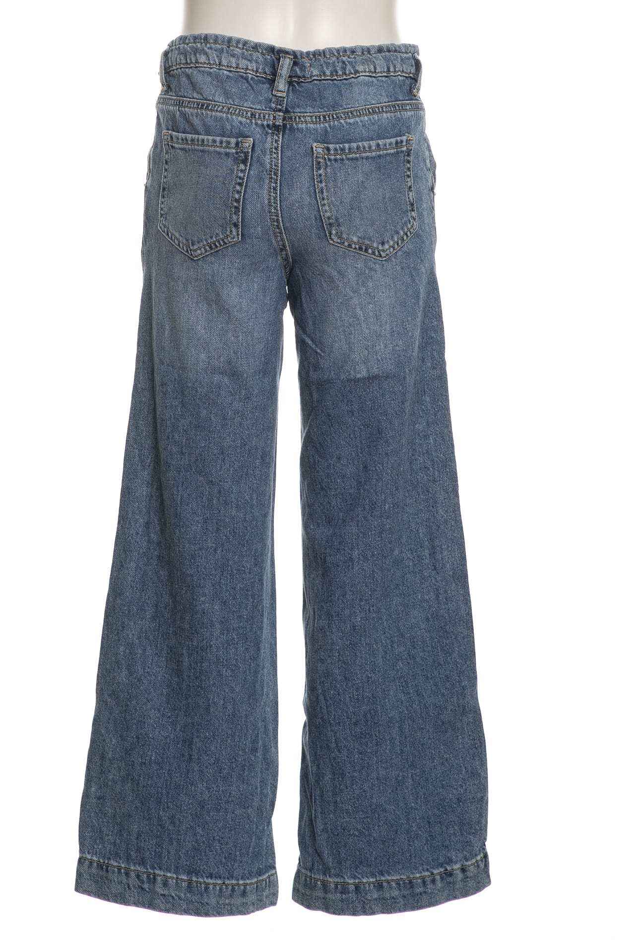 Jeans Kids Only Comet da bambina in denim di cotone sottoposto a trattamento per un aspetto vissuto, modello chino wide fit, con chiusura zip ed elastico alla vita regolabile