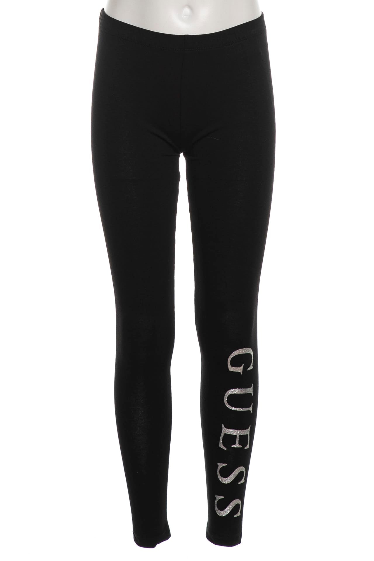 Leggings Guess Shiny da bambina in jersey stretch di cotone, con elastico in vita e macro logo esteso su una gamba in stampa glitter
