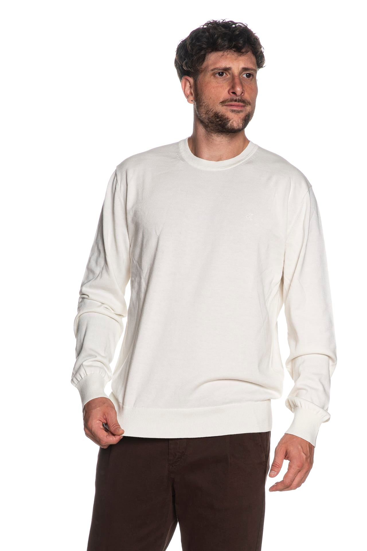 Maglia Calvin Klein Supima Ctt Crew Da Uomo Latte