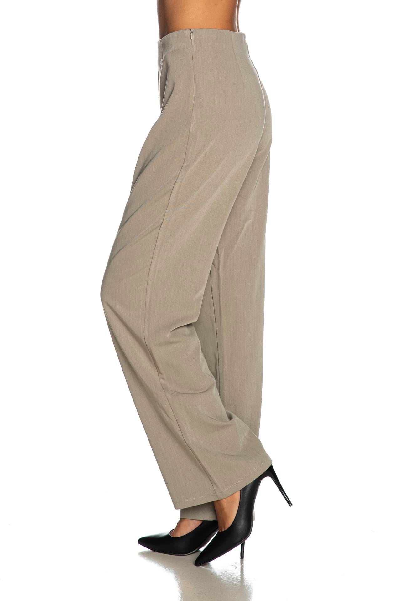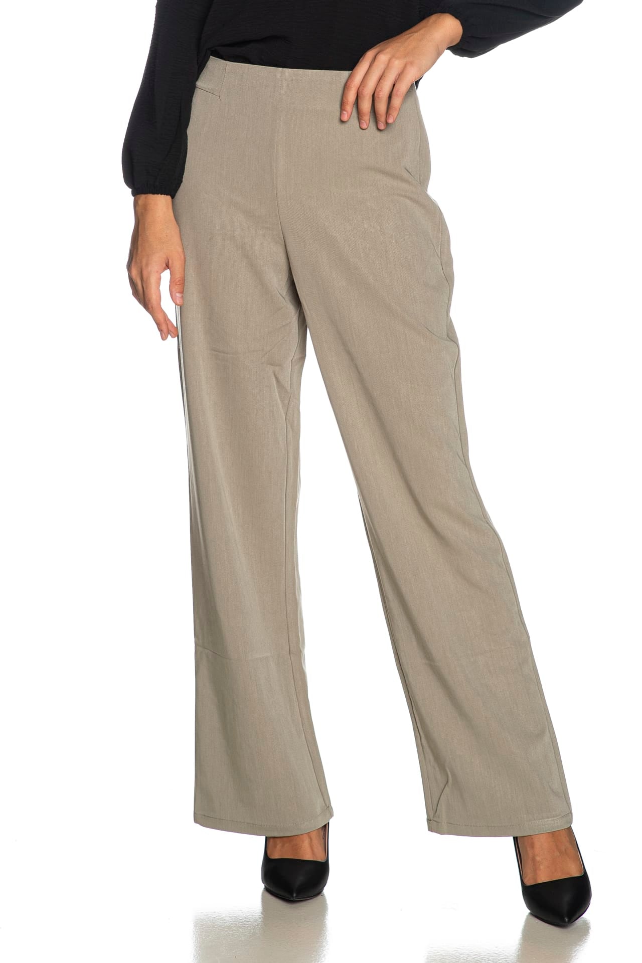 Pantalone Tiffosi Charlotte da donna in tessuto stretch di misto viscosa e poliestere, a vita alta, con chiusura zip coperta e gamba palazzo