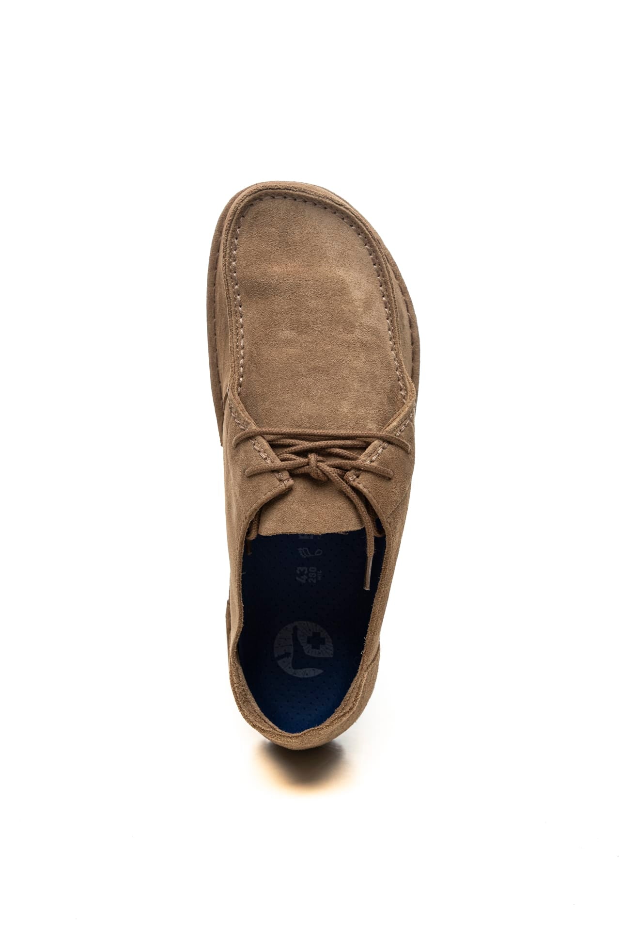 Scarpa Birkenstock Utti Lace da uomo in pelle scamosciata, modello mocassino stringato a due occhielli, con lacci tubolari, cuciture a vista, tallone rialzato per facilitare la calzata, logo laterale inciso, plantare comfort Deep Blue, suola interna in microfibra ed esterna in gomma