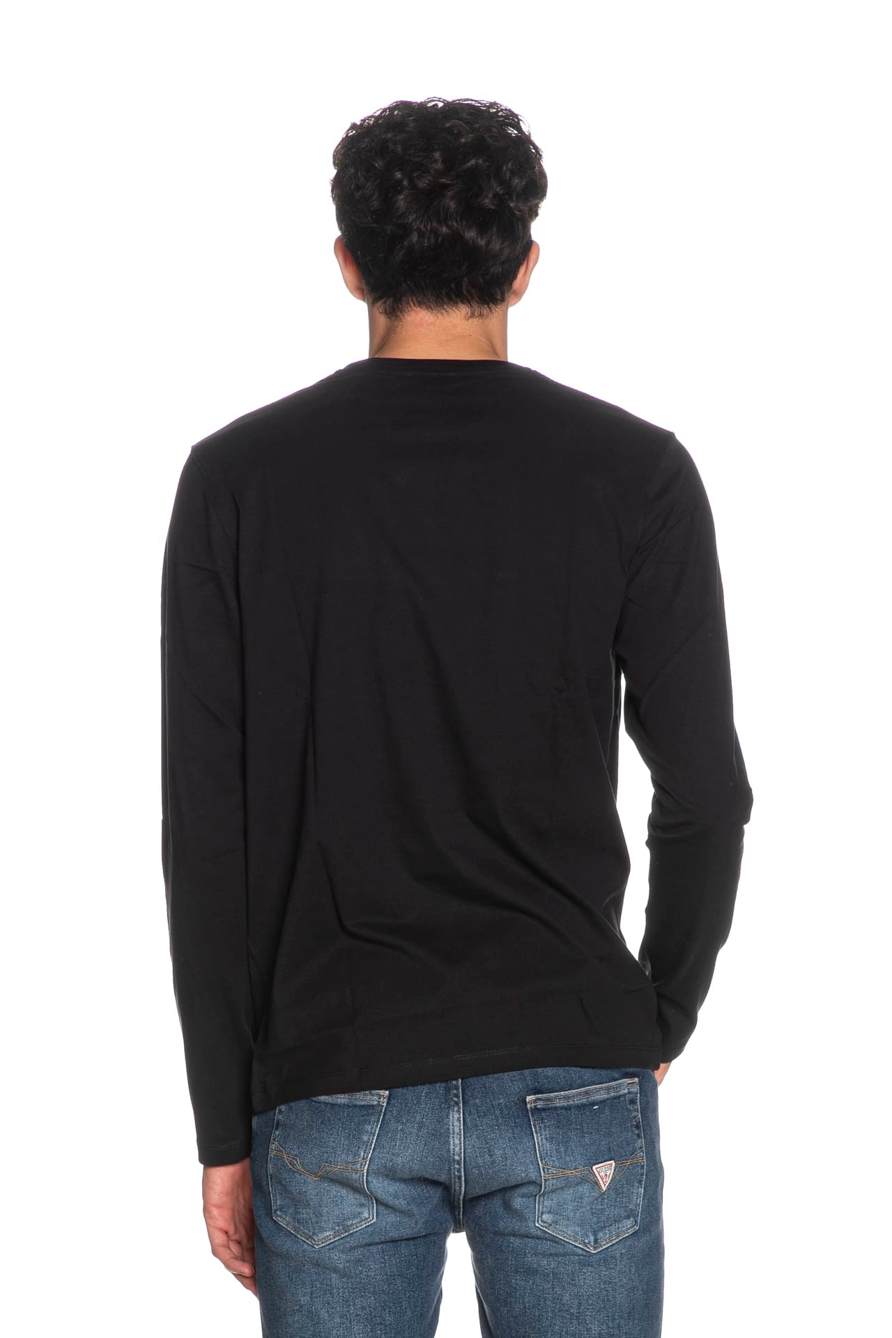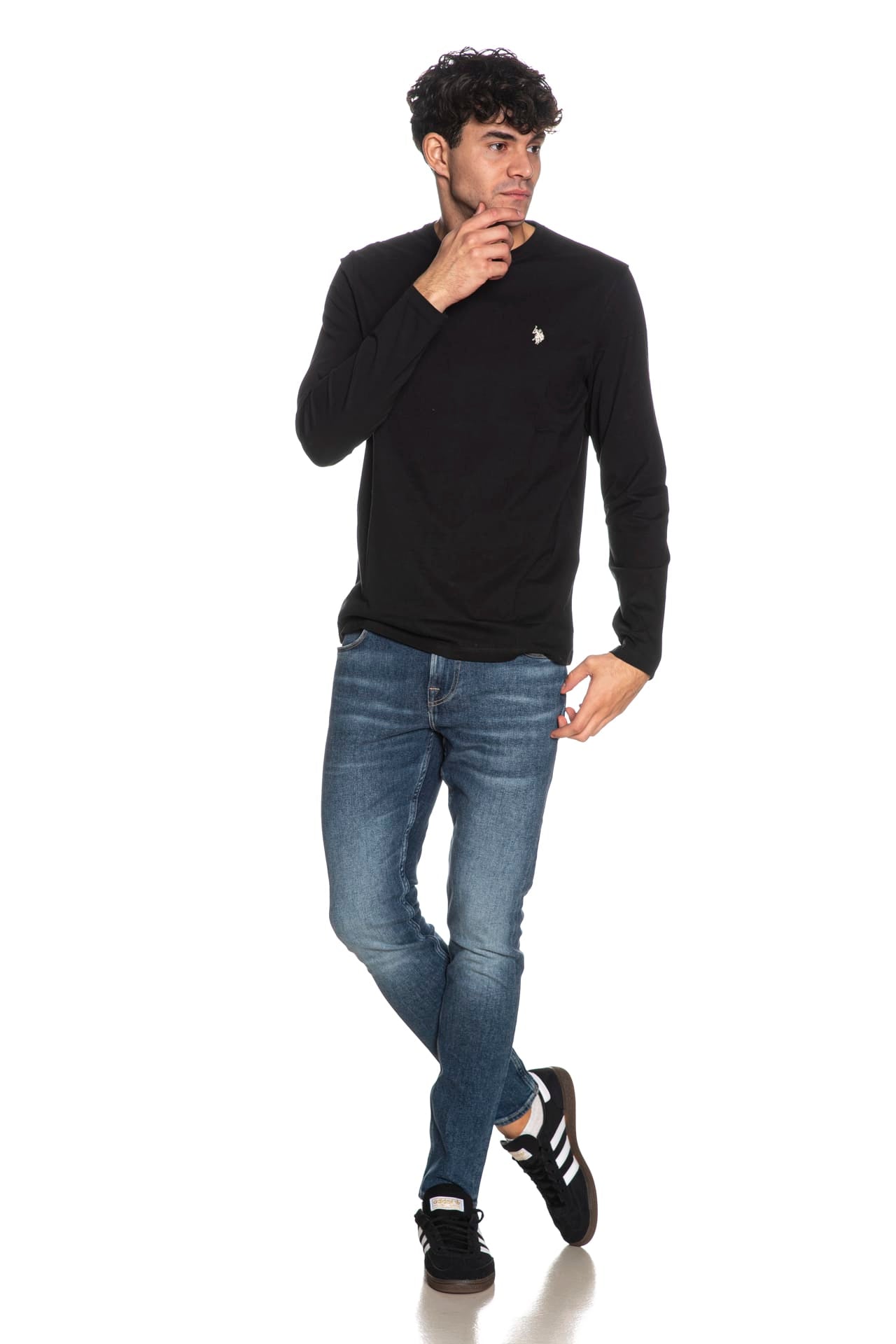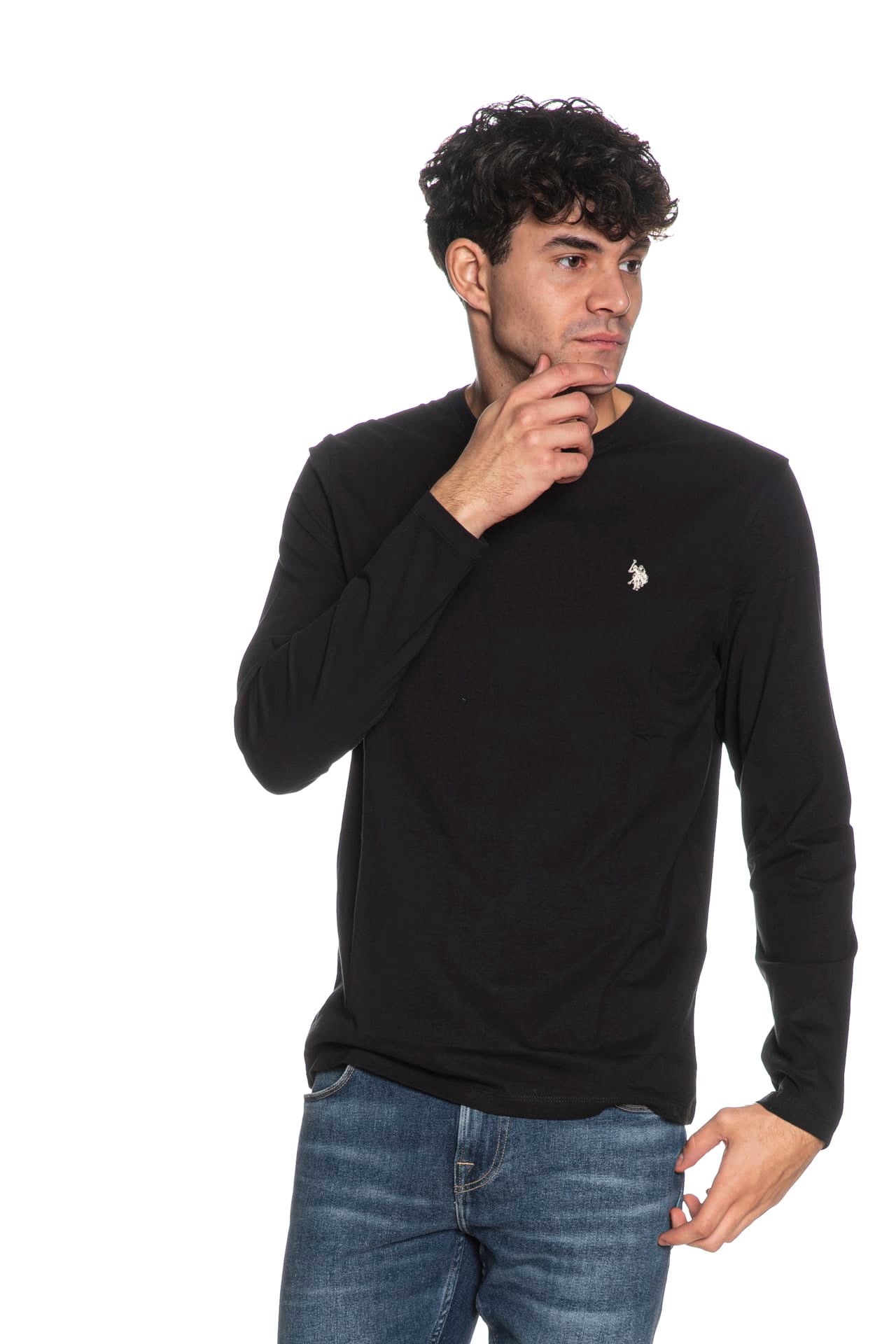 T Shirt U.S. Polo Assn Will da uomo in jersey, girocollo a manica lunga, con piccolo monogramma ricamato a contrasto colore sul petto