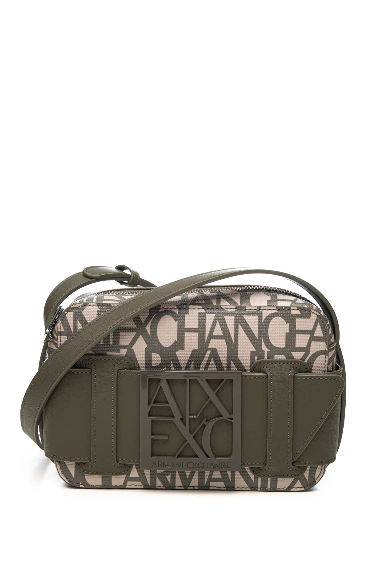 Borsa Armani Exchange Susie Cb Da Donna Beige Stampa Loghi Verde Militare Scuro In Poliuretano