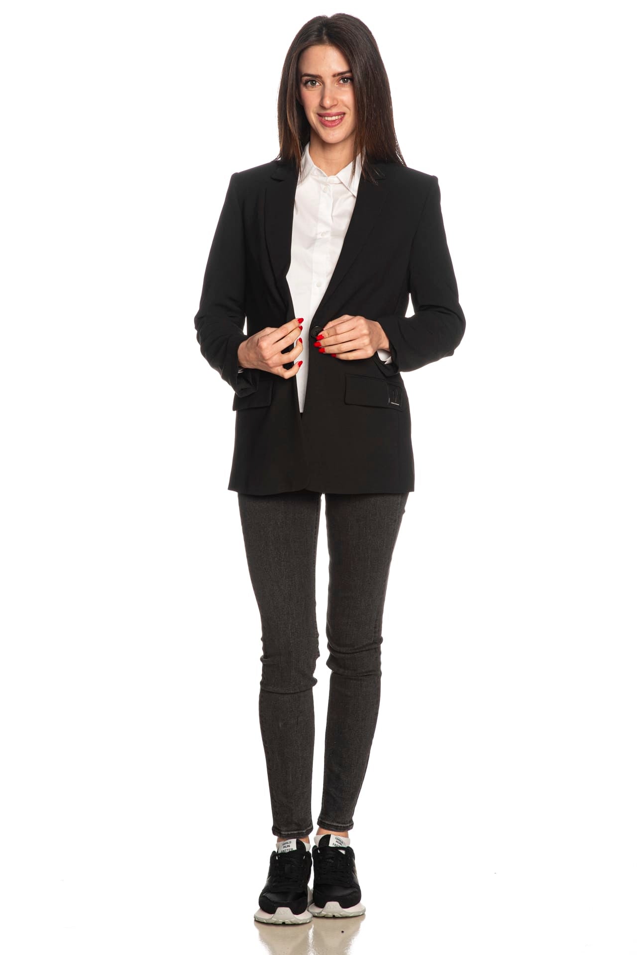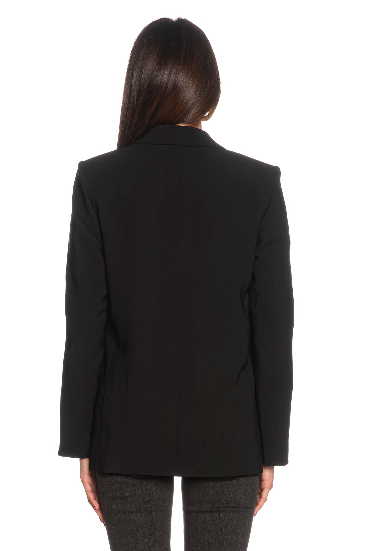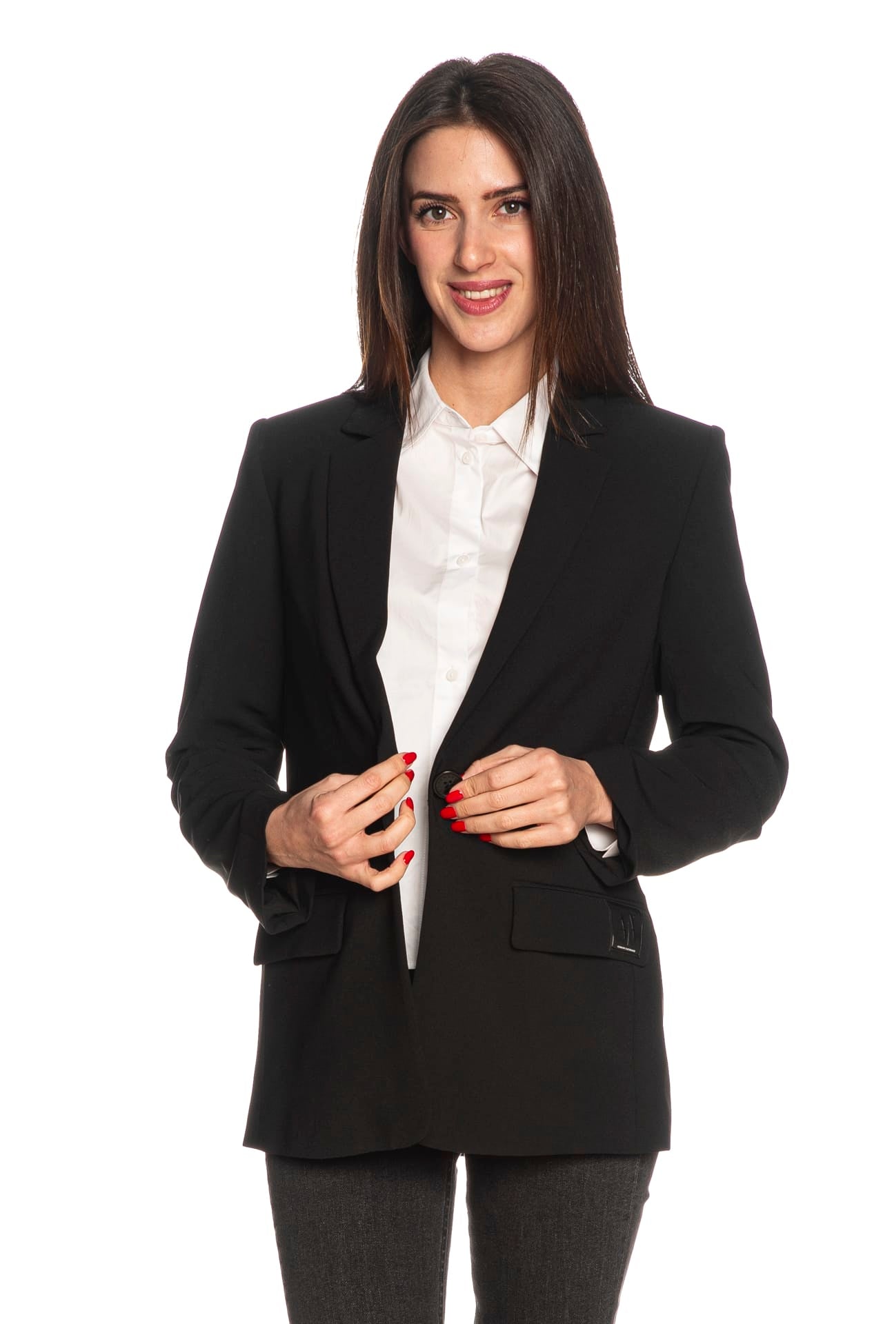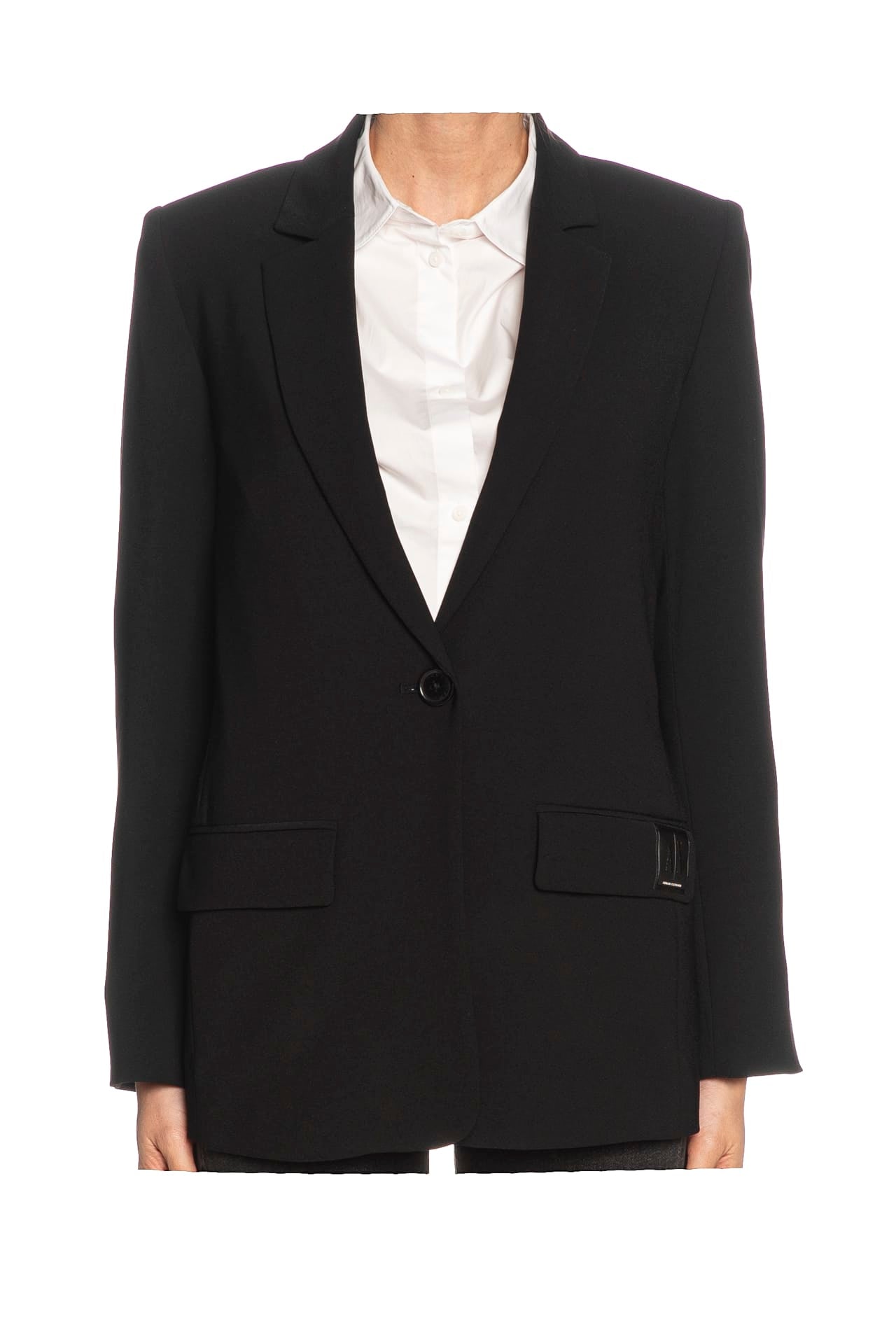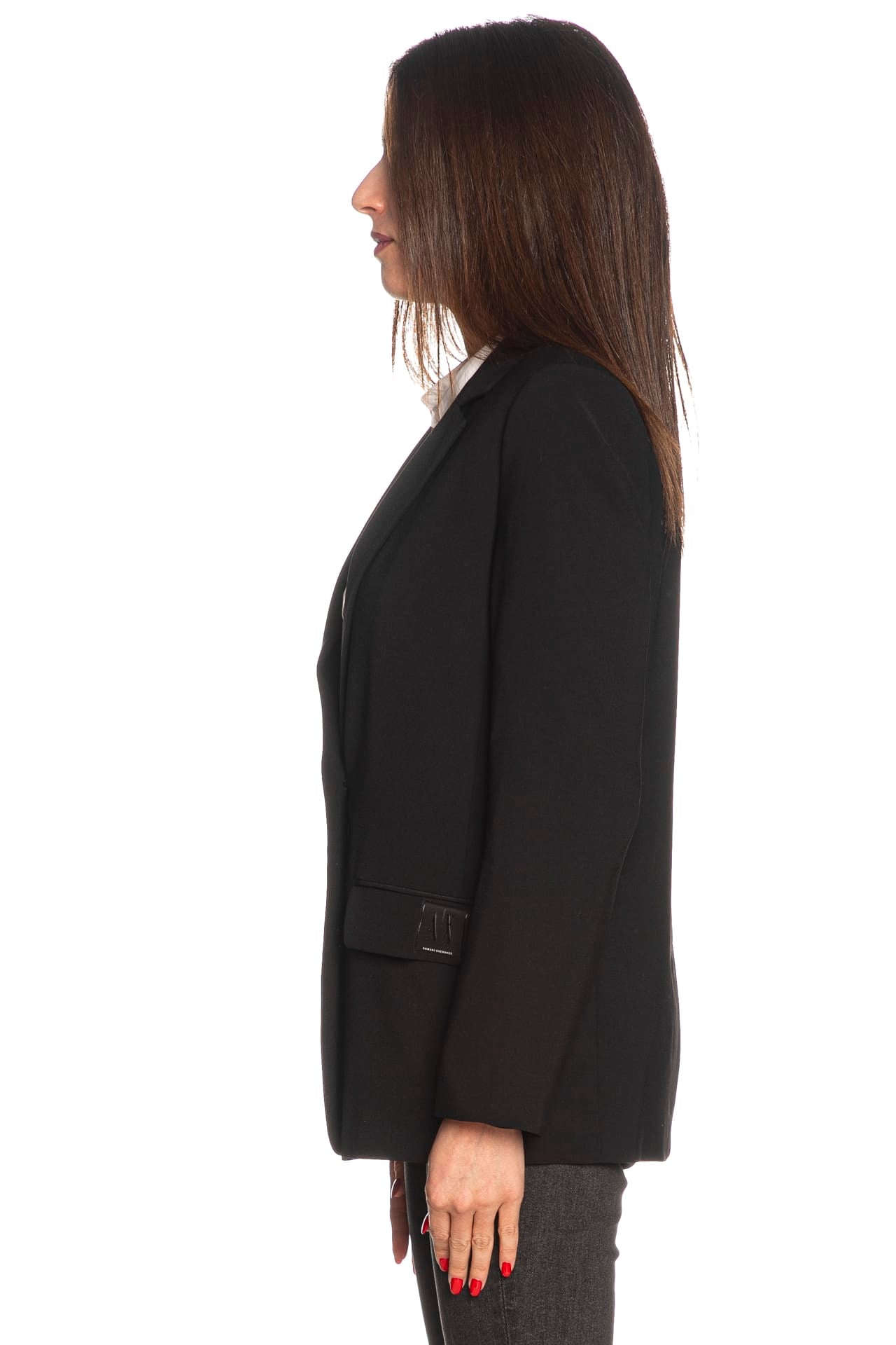 Giacca Armani Exchange W da donna in tessuto di poliestere parzialmente riciclato, modello blazer monopetto ad un bottone, dal taglio formale, foderata, con revers classici, tasche a filo con patta e piccolo tag logo gommato tono su tono su un lato