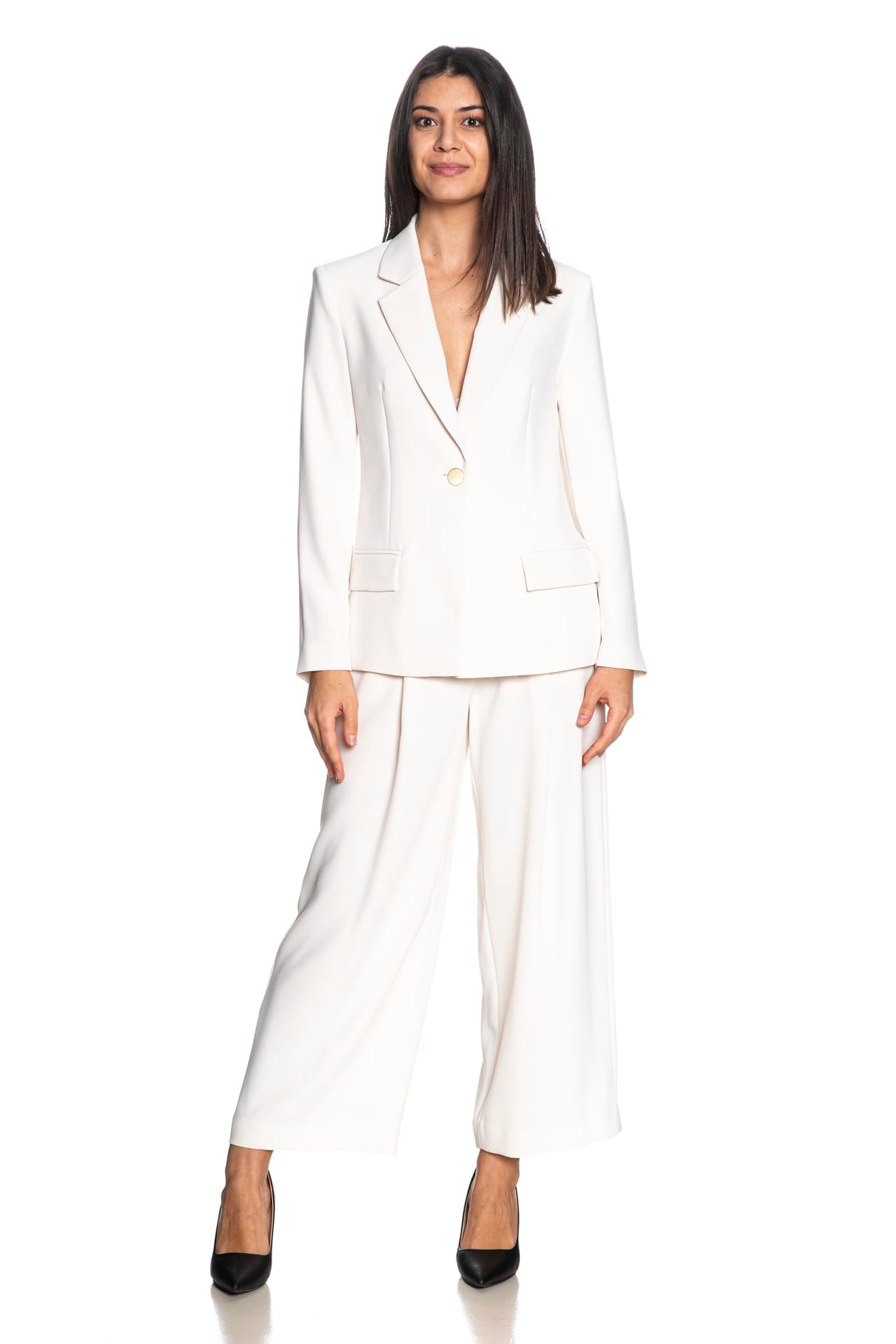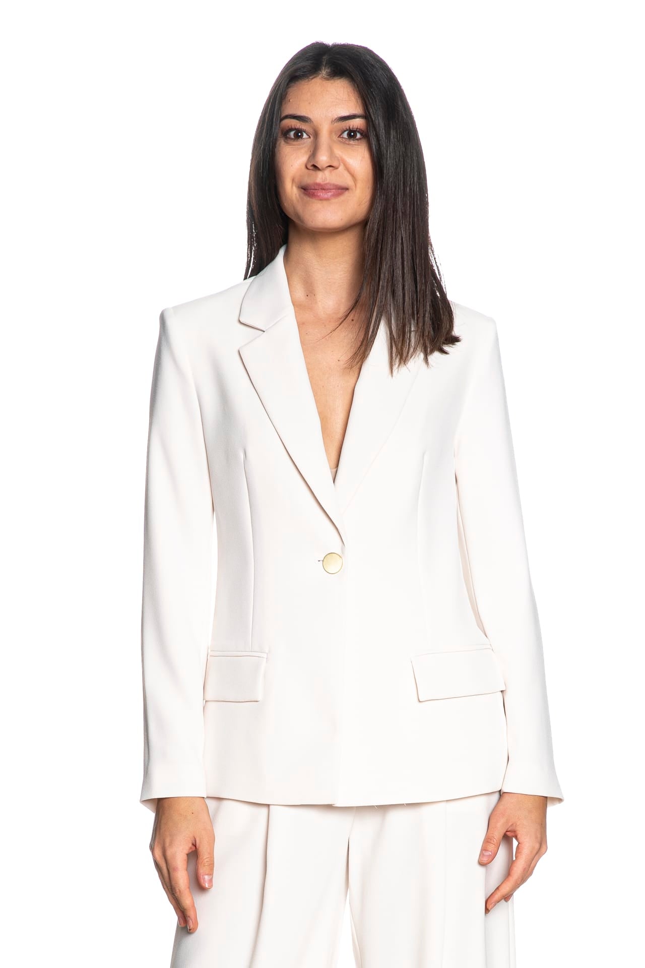 Giacca Armani Exchange Wd Plc Blazer da donna in tessuto crêpe di poliestere, modello blazer monopetto ad un bottone metallico, dal taglio aderente, formale, foderata, con revers classici, tasche a filo con patta e piccola etichetta logo cucita nel retro collo