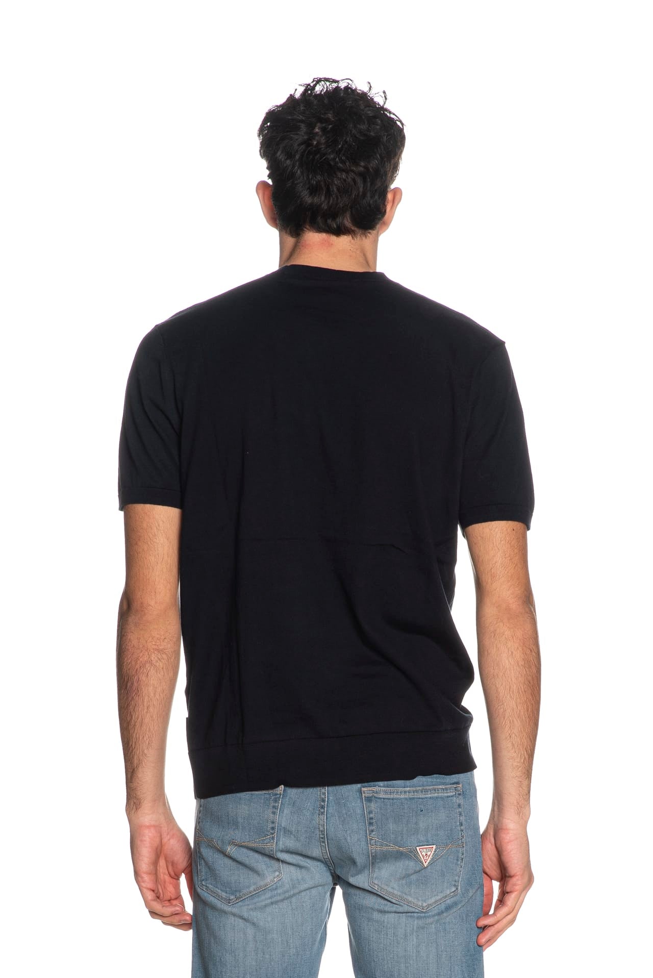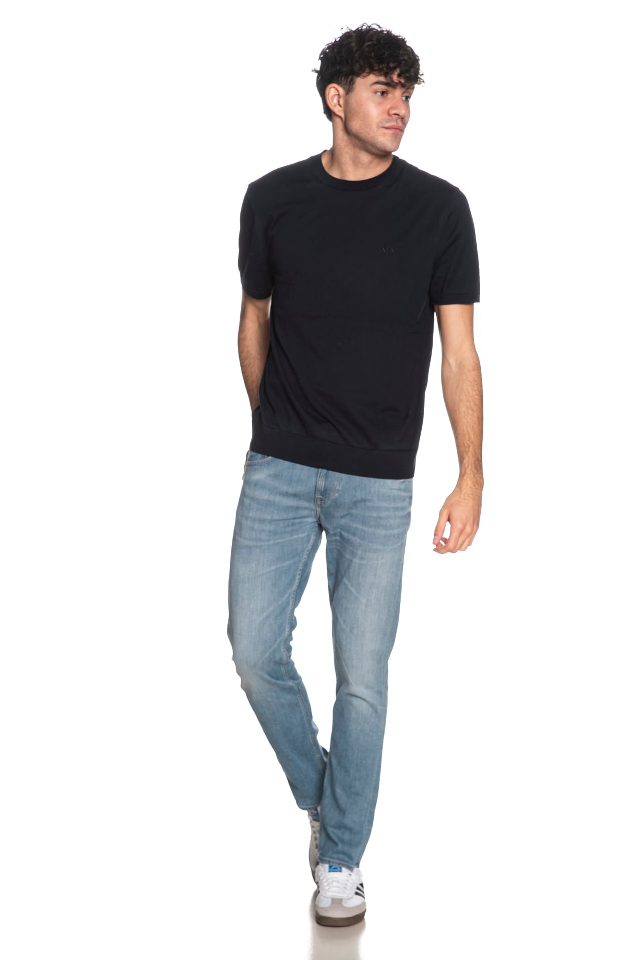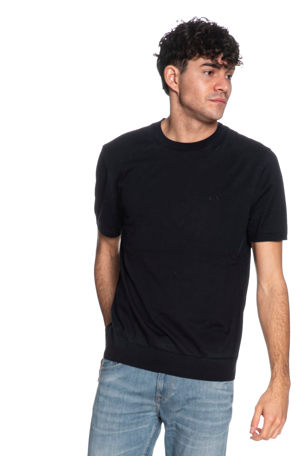 Maglia Armani Exchange New Pull Ss da uomo in filato rasato di cotone, con piccolo monogramma ricamato tono su tono sul petto, girocollo, bordi delle maniche corte e cannolè a costine