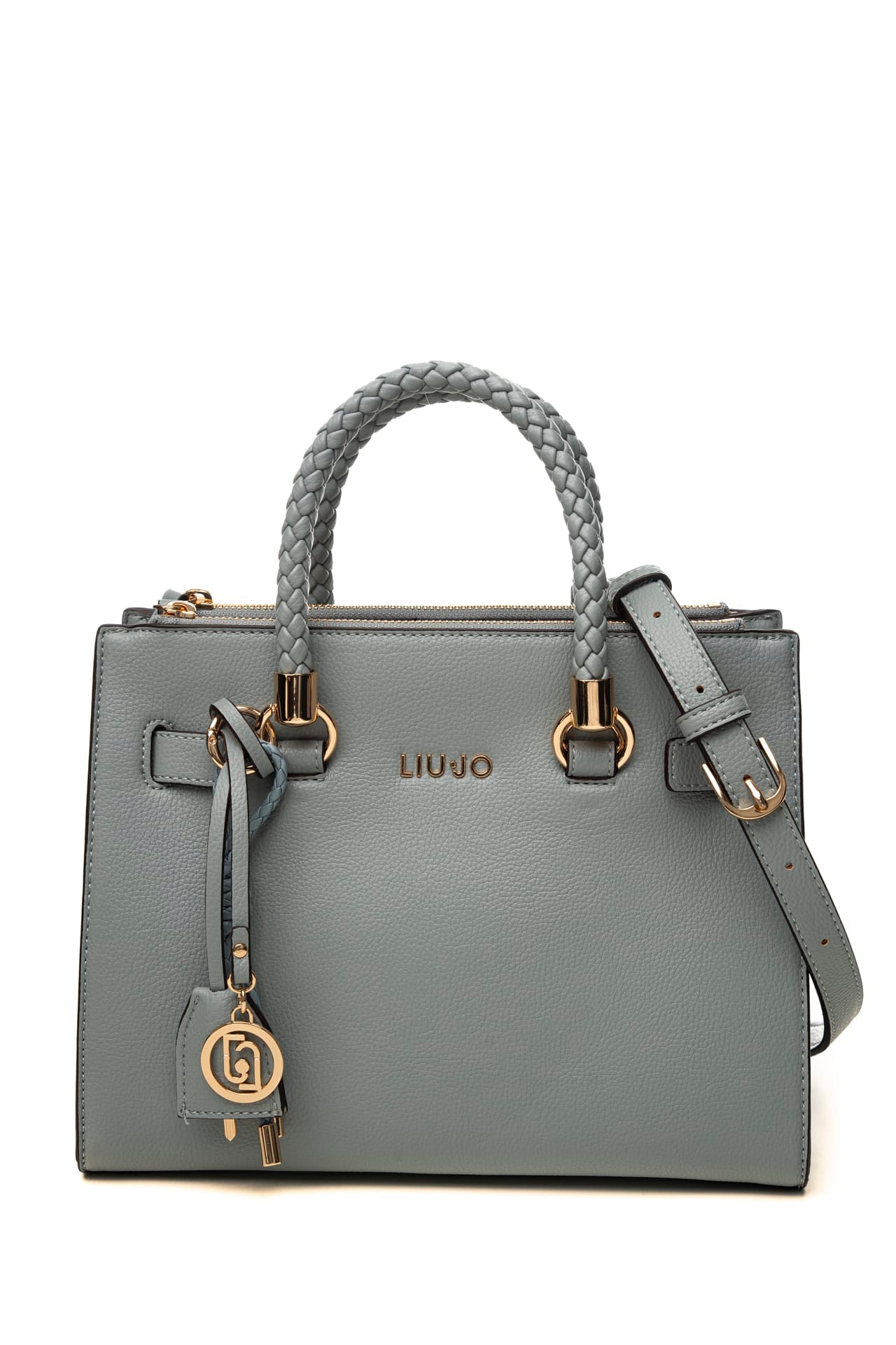 Borsa Liu Jo Manhattan Ecs S Stc da donna in poliuretano zigrinato, modello satchell small a mano, con charms agganciati ai manici corti rigidi intrecciati, tracolla stretta rimovibile e regolabile in lunghezza, piccolo logo in metallo dorato e fascette laterali con bottoni a pressione per aumentarne la capienza, vano principale con chiusura magnetica e vani laterali a busta con chiusura zip Misure: 27x13x21 cm