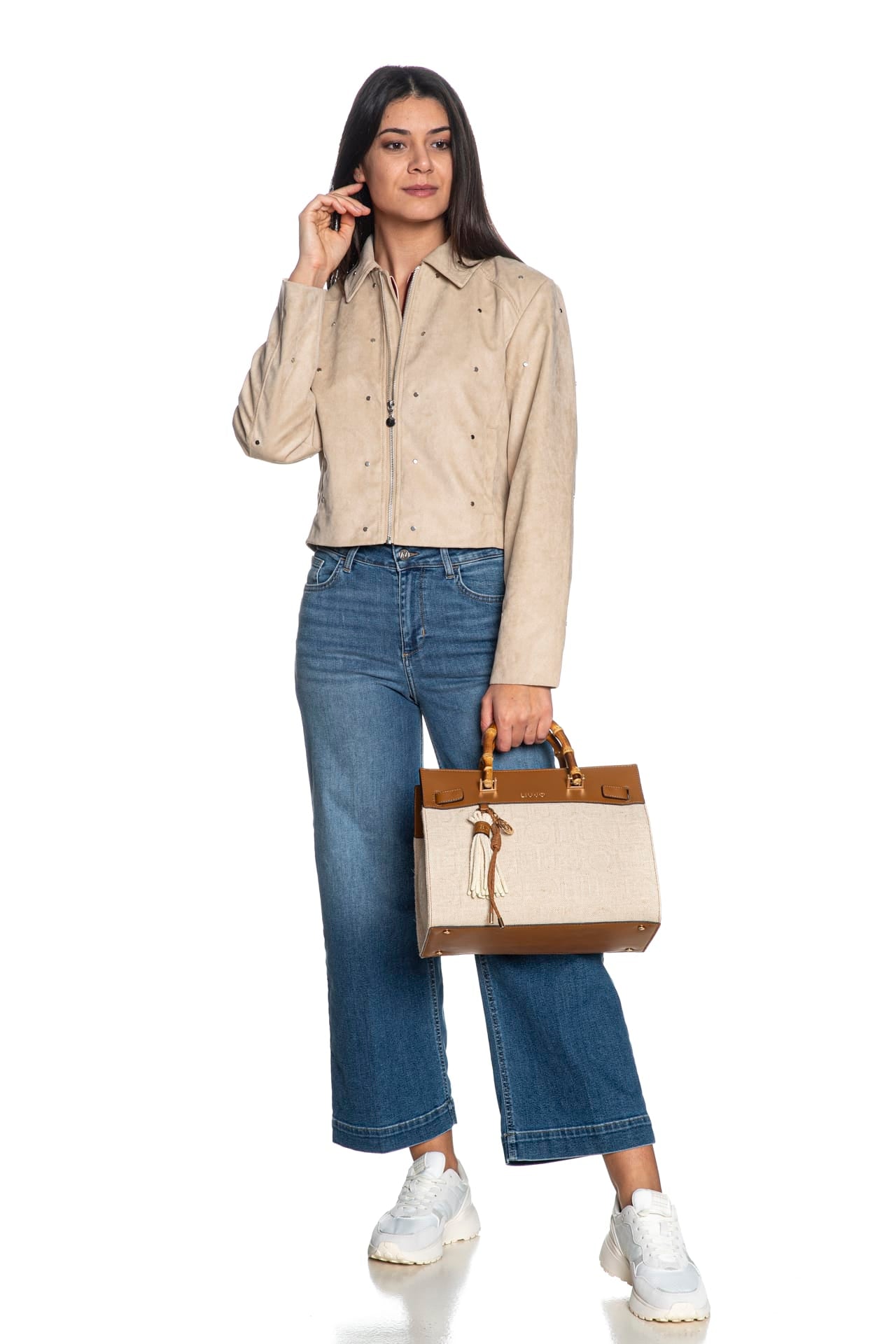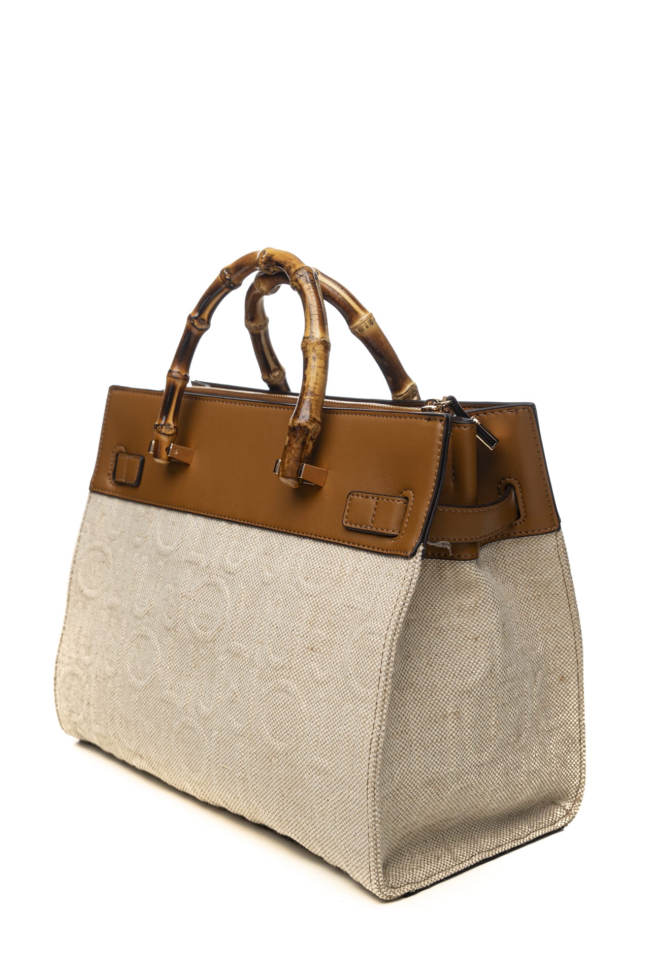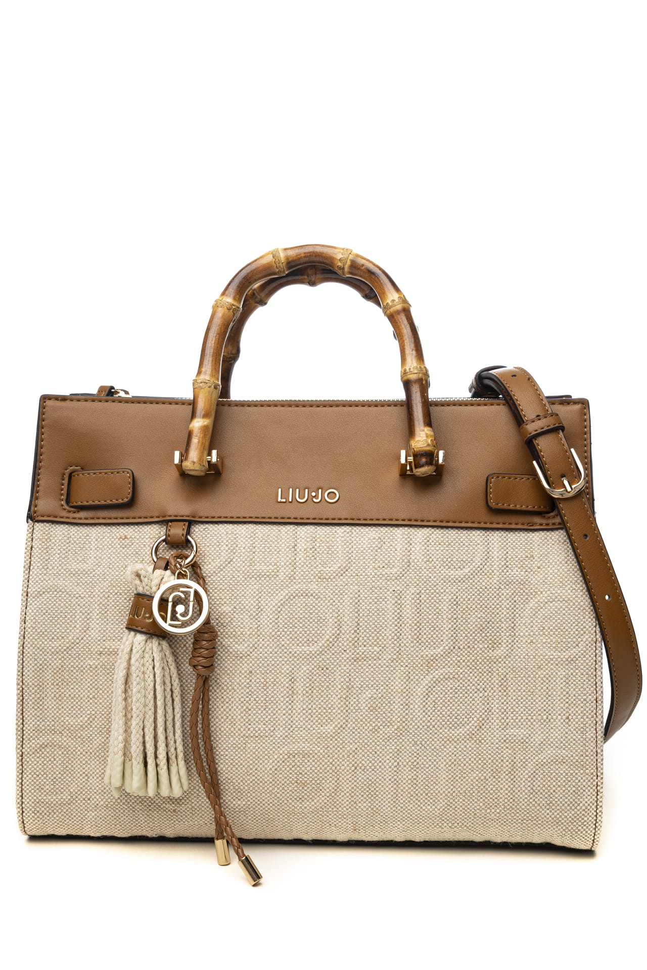 Borsa Liu Jo Manhattan M Tt Da Donna Ecrù Cuoio In Tessuto E Poliuretano