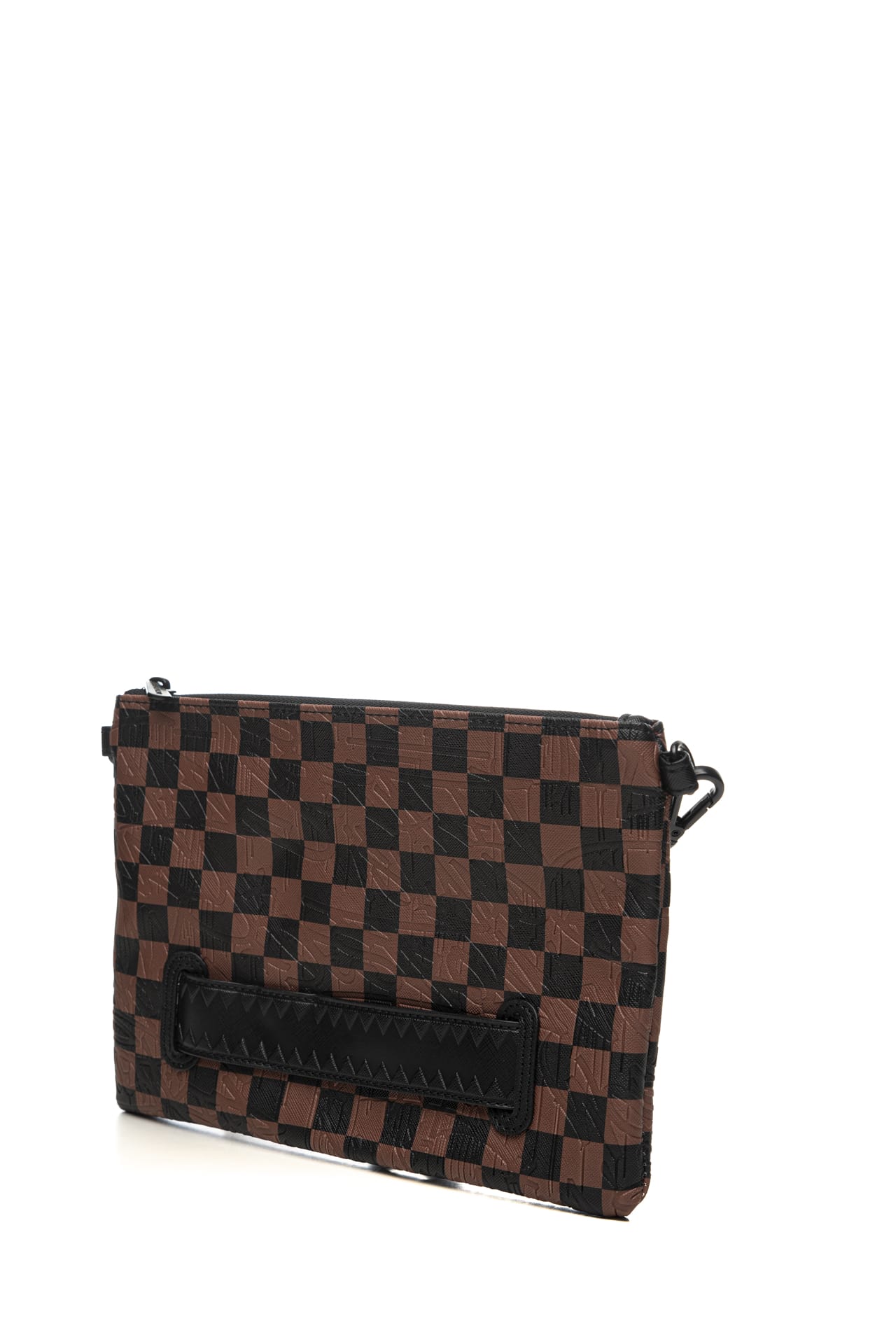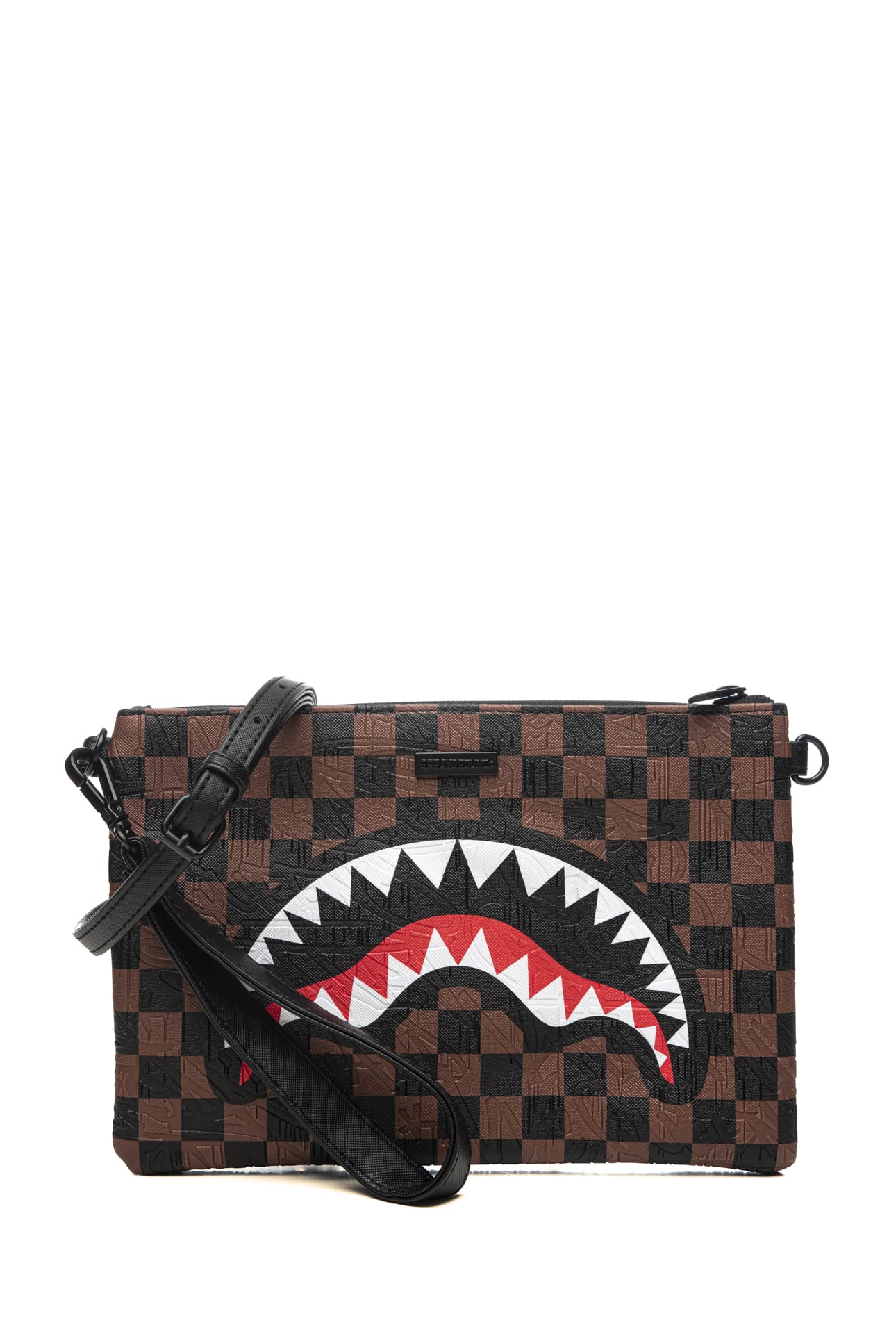 Pochette Sprayground Check 2 Emboss Crossover Clutch Unisex Stampa Emboss Su Scacchi Marrone Nera E Shark In Polivinile