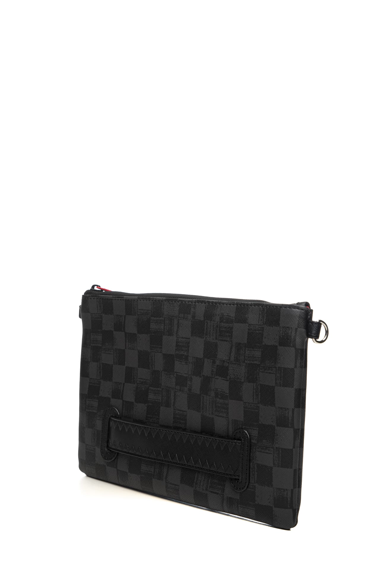 Pochette Sprayground Scribble Shark Crossover Clutch Unisex Stampa Disegno Scacchi Grigio Nera E Shark In Polivinile
