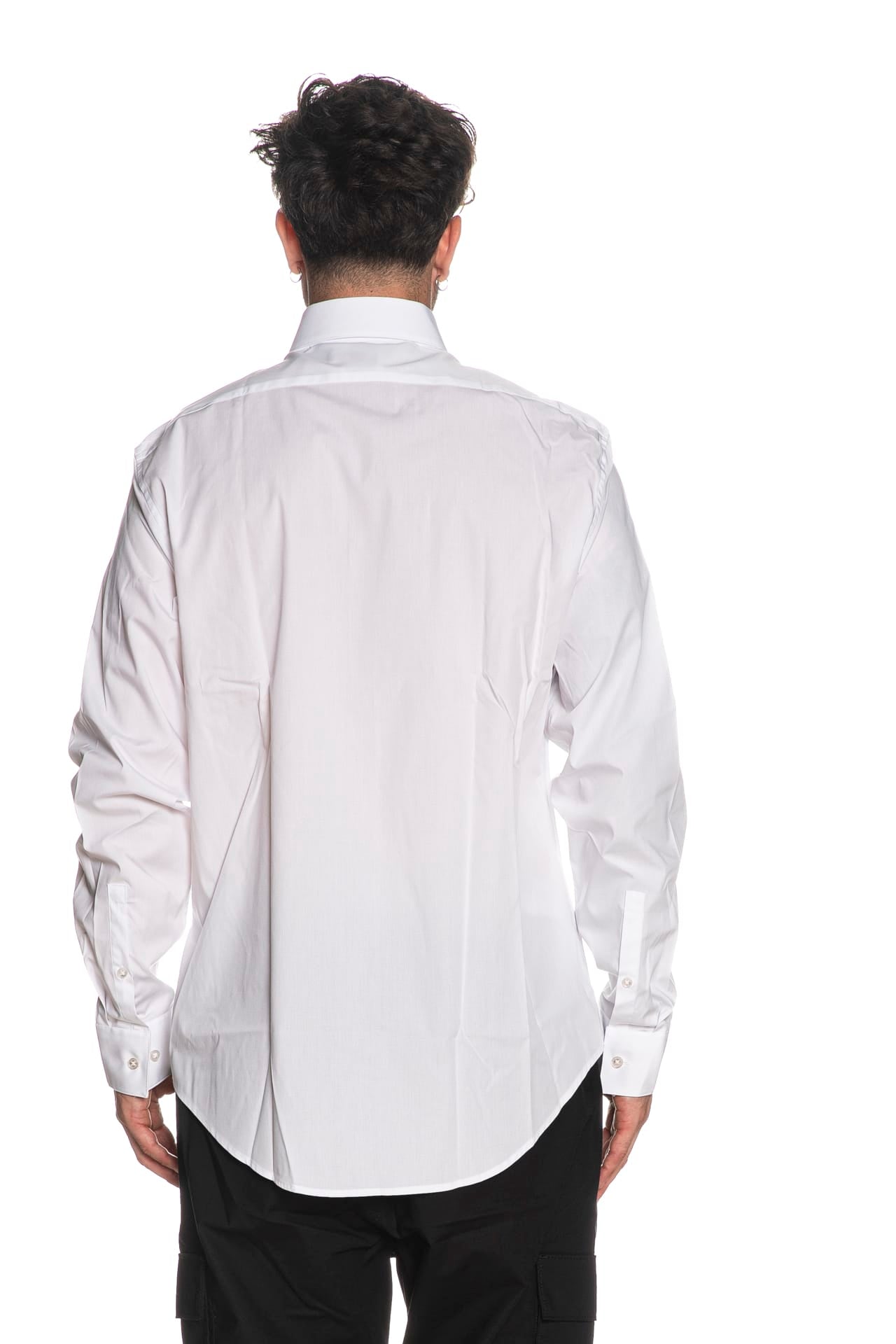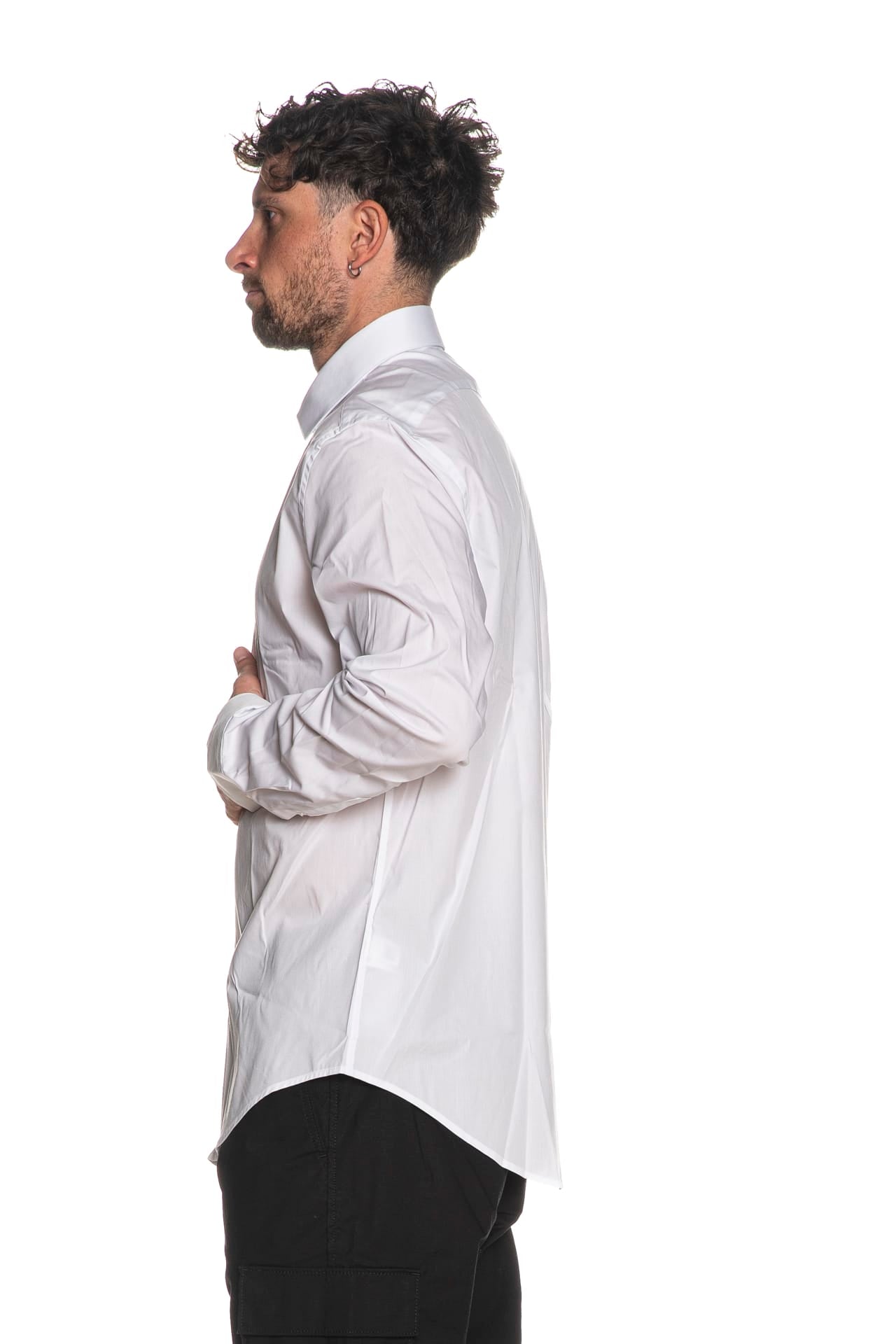 Camicia Calvin Klein Ppl Rg Ess Ls da uomo in popeline di cotone stretch, regular fit, con collo semi francese steccato, abbottonatura senza cuciture, carrè sulla schiena, manica lunga con polsino ad un bottone regolabile e fondo stondato
