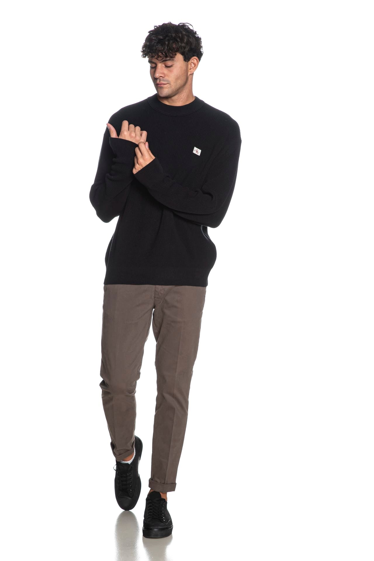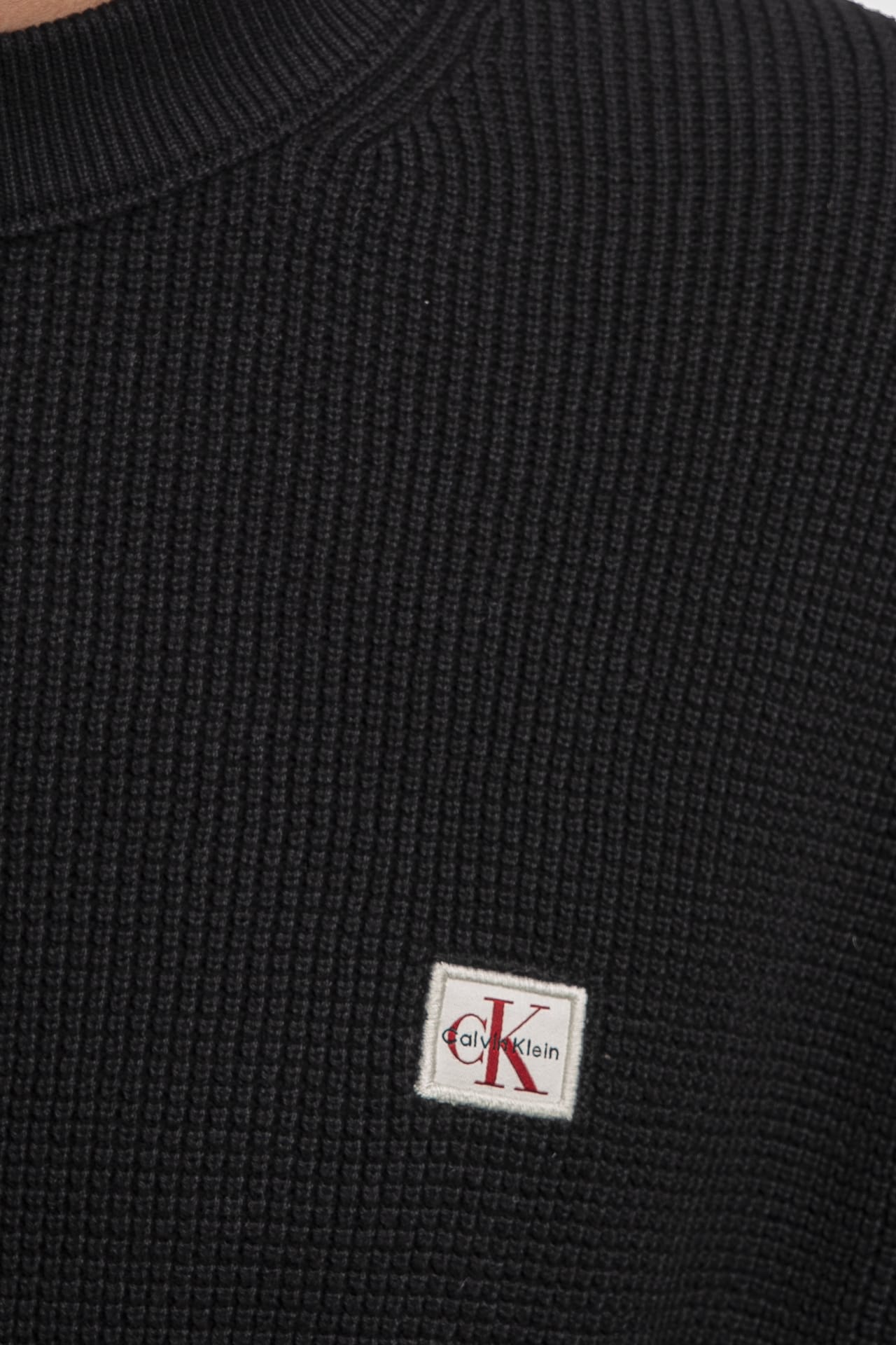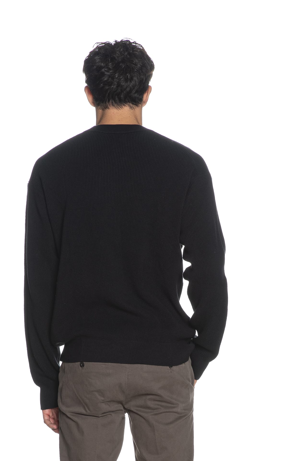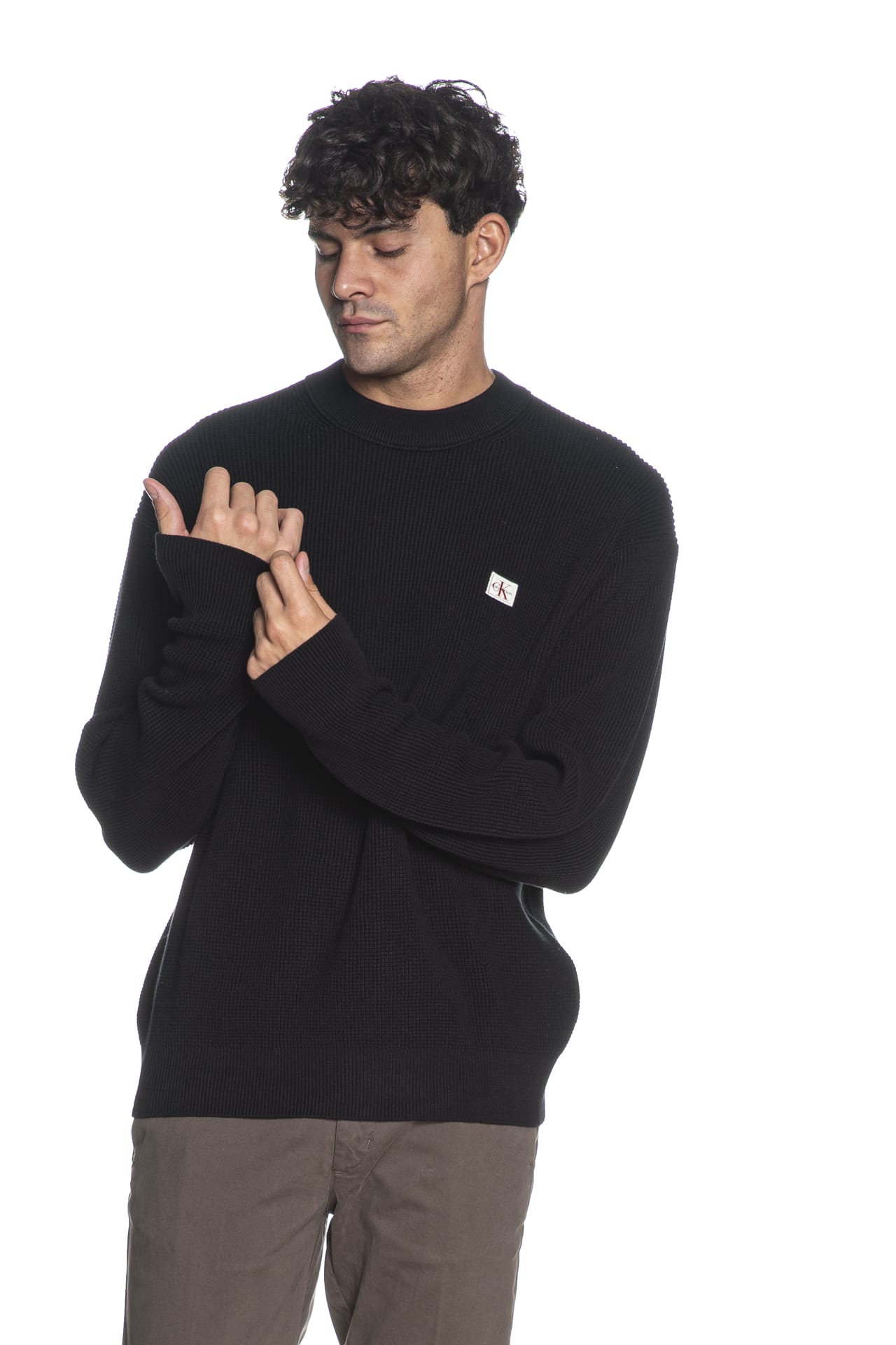 Pullover Calvin Klein Wa Crwnk Swt da uomo in filato testurizzato effetto waffle di cotone, relaxed fit, a manica lunga, con girocollo polsini e cannolè in maglia a costine e patch logo ricamato a contrasto sul petto