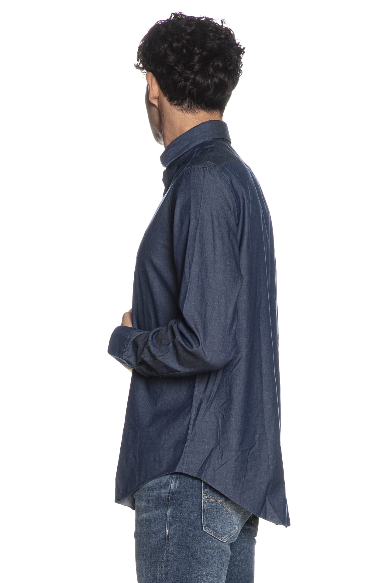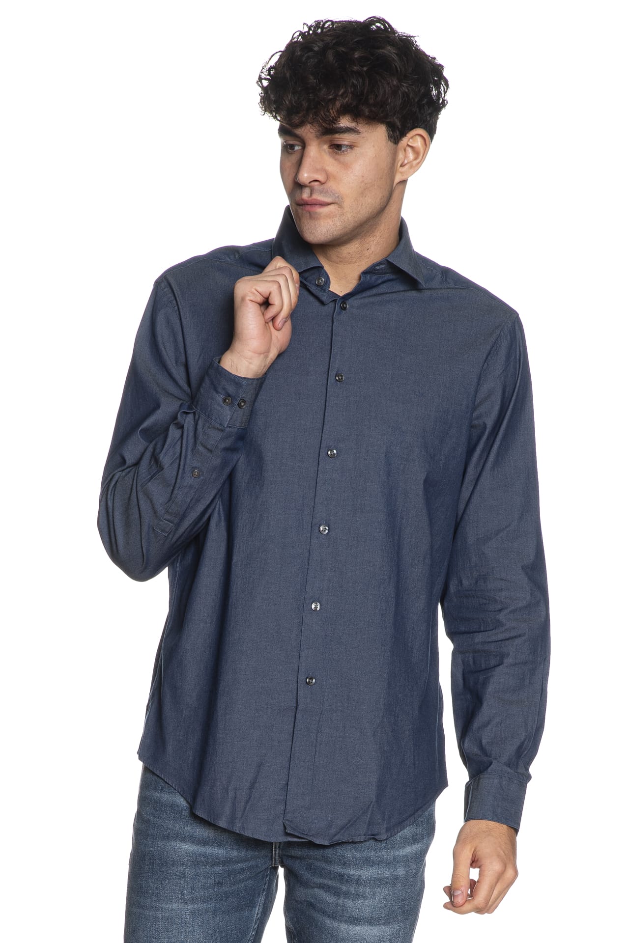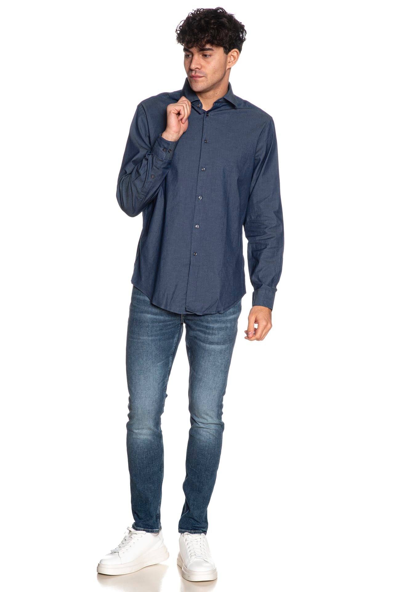 Camicia Calvin Klein Rg Dnm Wsh Sld da uomo in tessuto di cotone soft stretch lavato per un comfort superiore, regular fit, con collo italiano steccato, abbottonatura senza cuciture, carrè sulla schiena, manica lunga con polsino ad un bottone regolabile e fondo stondato