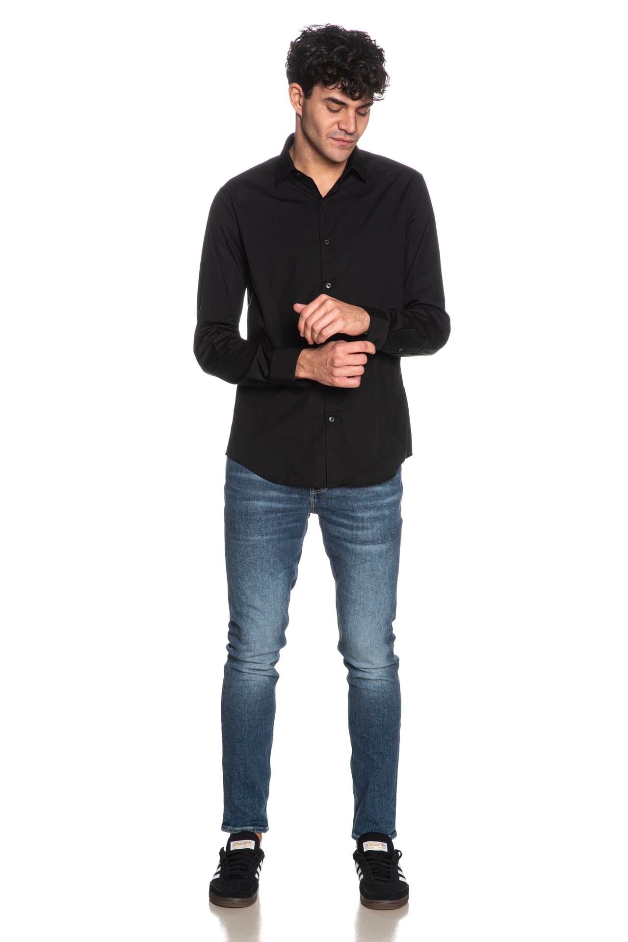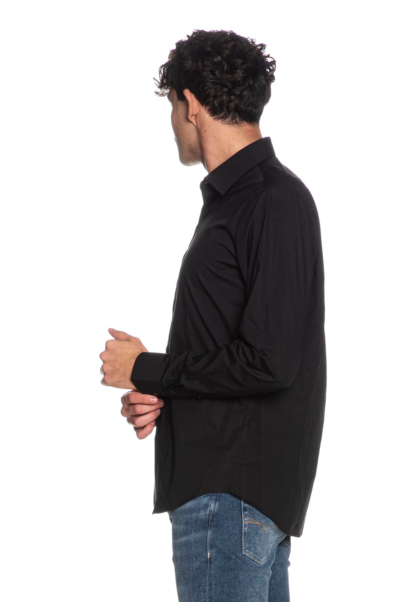 Camicia Calvin Klein Esntl Ppl Str Sld da uomo in popeline di cotone stretch, slim fit e easy care, con collo italiano steccato, abbottonatura senza cuciture, carrè sulla schiena, manica lunga con polsino ad un bottone regolabile e fondo stondato