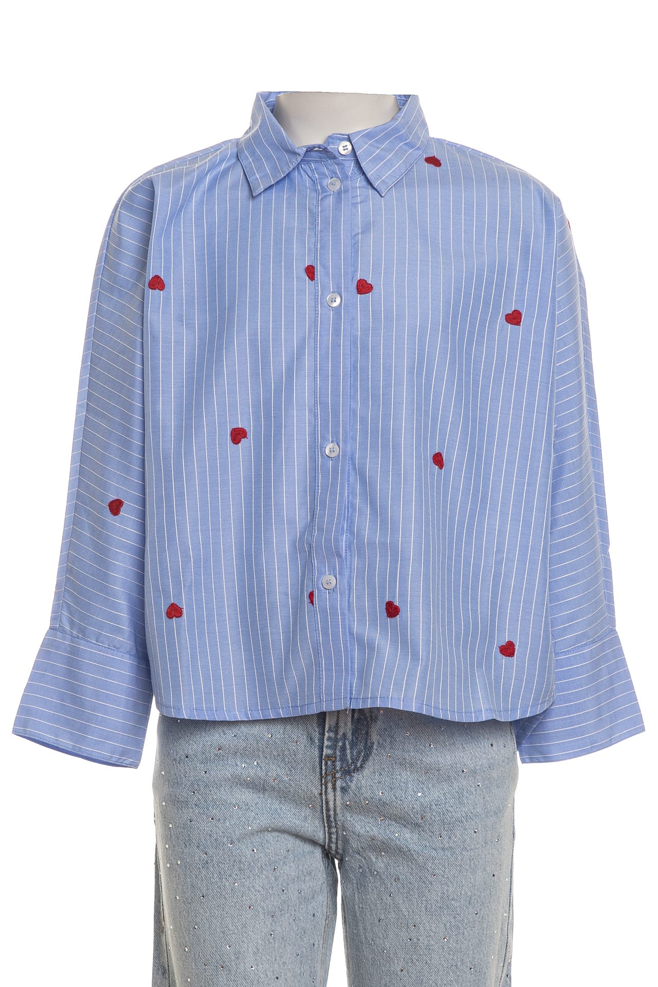 Camicia Kids Only New Lina Grace Da Bambina Fiordaliso Righe Bianche Cuori Rossi