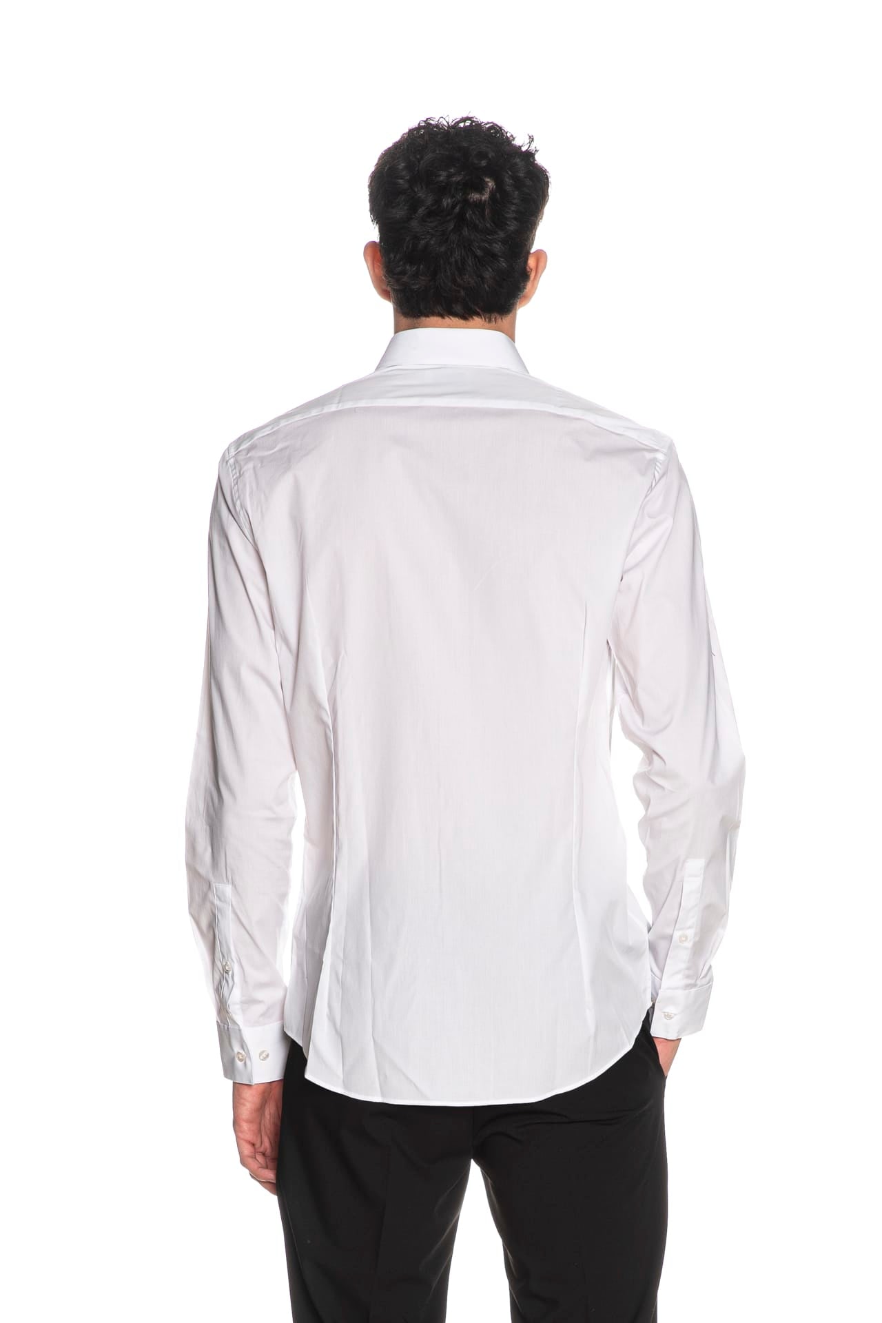 Camicia Calvin Klein Sl Ess P Str Sld da uomo in popeline di cotone stretch, slim fit e easy care, con interno collo semi francese steccato in tessuto stampato micro fantasia, carrè sulla schiena, manica lunga con polsino ad un bottone regolabile e fondo stondato