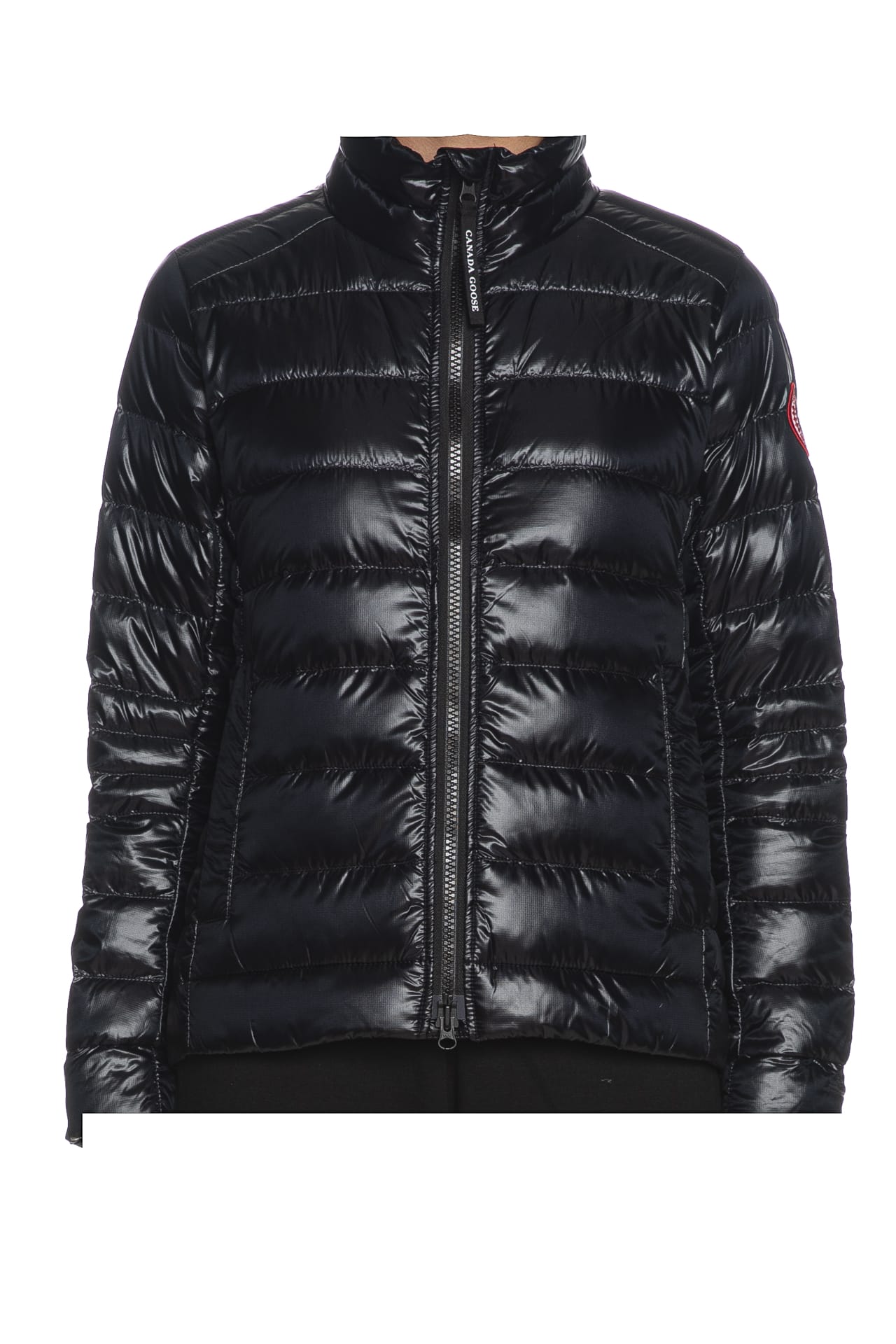 Piumino Canada Goose Cypress Jacket da donna in tessuto trapuntato ripstop resistente e idrorepellente di nylon riciclato a finitura lucida, dal minimo ingombro, facilmente trasportabile una volta ripiegato nella tasca interna convertibile in sacca zaino mediante coulisse e cinghe, ultraleggero per un calore senza peso e facilità di movimento, con collo alto e patta antivento logata, chiusura centrale a doppio cursore e tasche laterali a filo con zip coperte, imbottitura in piuma naturale, cinghe zaino interne rimovibili in tape elastico logato jacquard, logo istituzionale ricamato a filo applicato sulla manica e polsini interni in maglia Power Stretch per la massima protezione dalle intemperie Imbottitura: 90% piumino 10% piuma