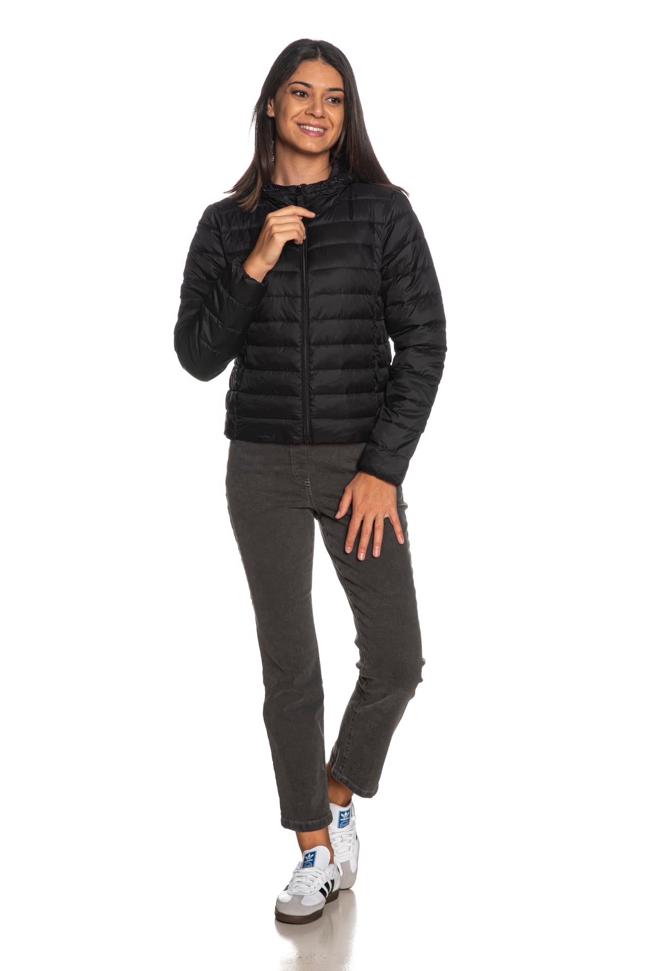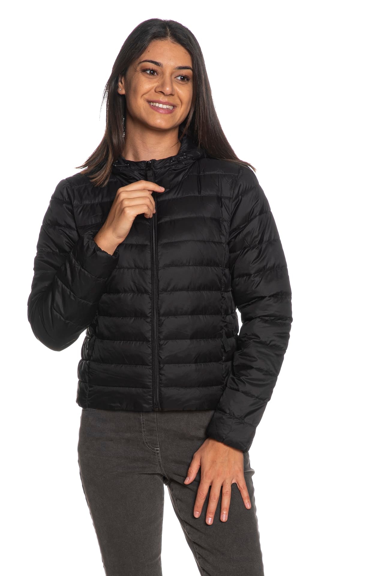 Piumino Only Tahia Quilted Hood Jkt da donna in tessuto trapuntato di nylon, corto dalla linea sagomata, con leggera imbottitura sintetica, cappuccio regolabile da stopper, maniche lunghe con polsini elastici, chiusura centrale full zip a vista e tasche laterali a filo con zip coperte