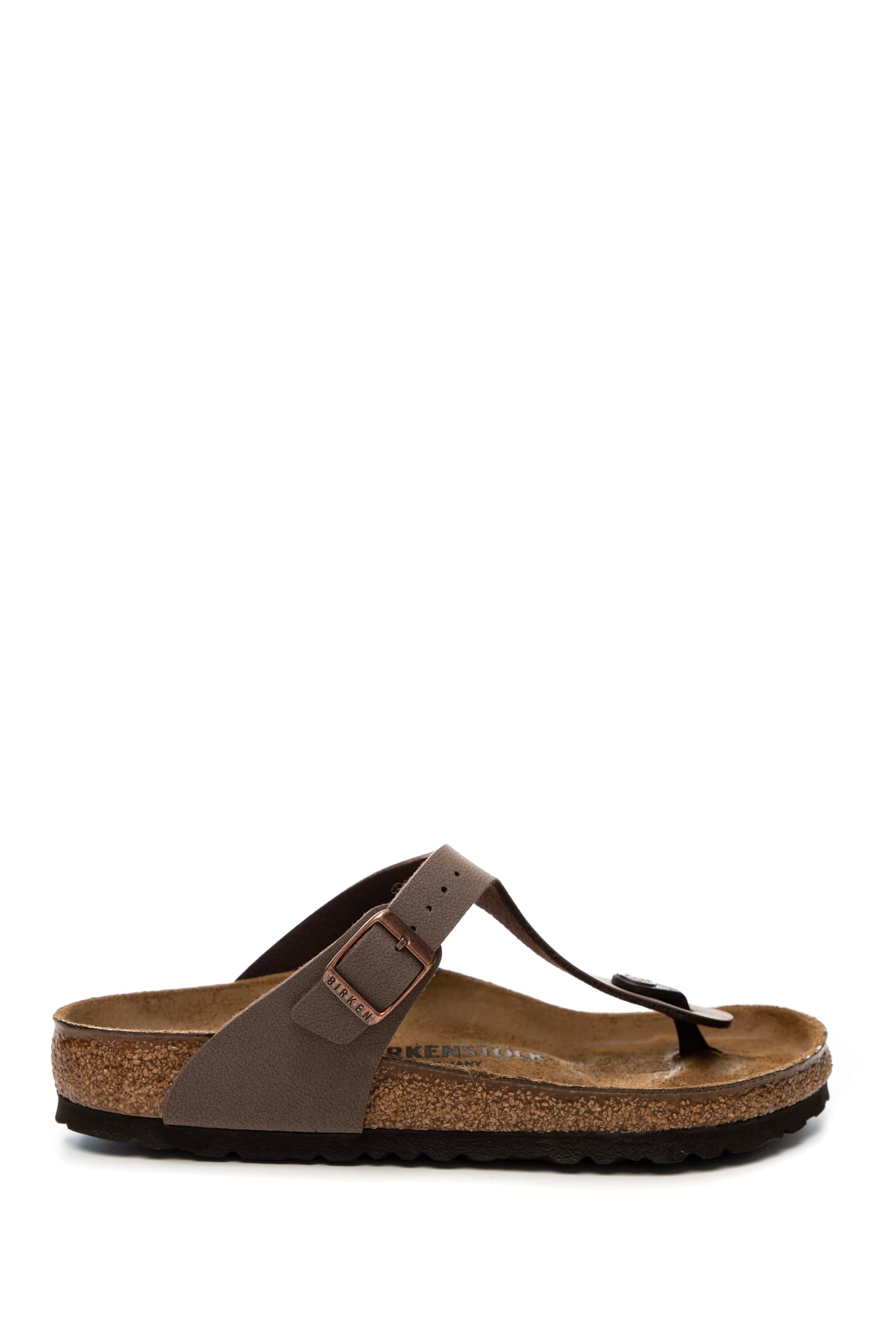 Infradito Birkenstock Gizeh Bs unisex in resistente materiale sintetico Birko Flor dermoaffine effetto nabuk, modello leggendario dalla struttura minimal ispirata all'orma naturale del piede per un appoggio e una stabilità perfetta, regolabile mediante fibbia in bronzo, con logo laterale inciso, divaricatore e plantare in sughero e lattice anatonici, sottopiede in pelle scamosciata e suola in Eva a contrastom colore