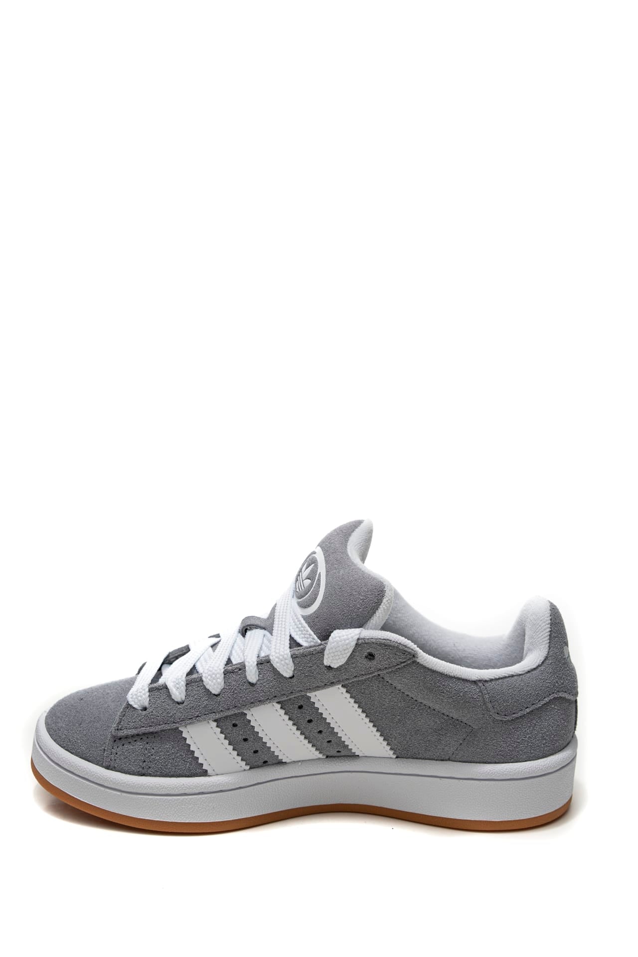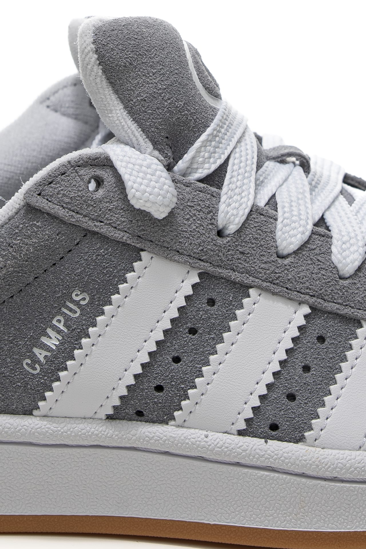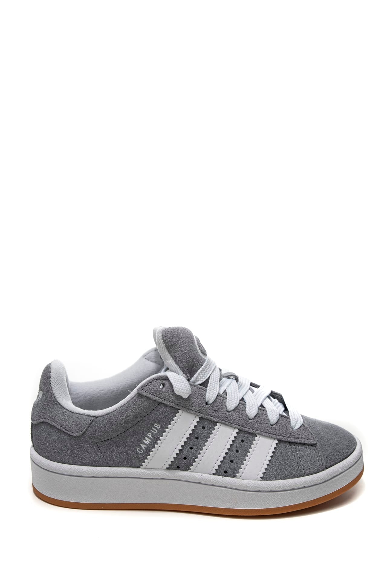 Scarpa Adidas Campus 00s da bambino a in nabuk scamosciato, modello sneakers bassa dal design iconico anni '80 rivisitata nelle proporzioni, con allacciatura a stringhe e lacci intercambiabili in dotazione, strisce laterali seghettate in pelle a contrasto colore, fodera in spugna tono su tono, logo impresso sul laterale esterno e sul tallone e suola in gomma.