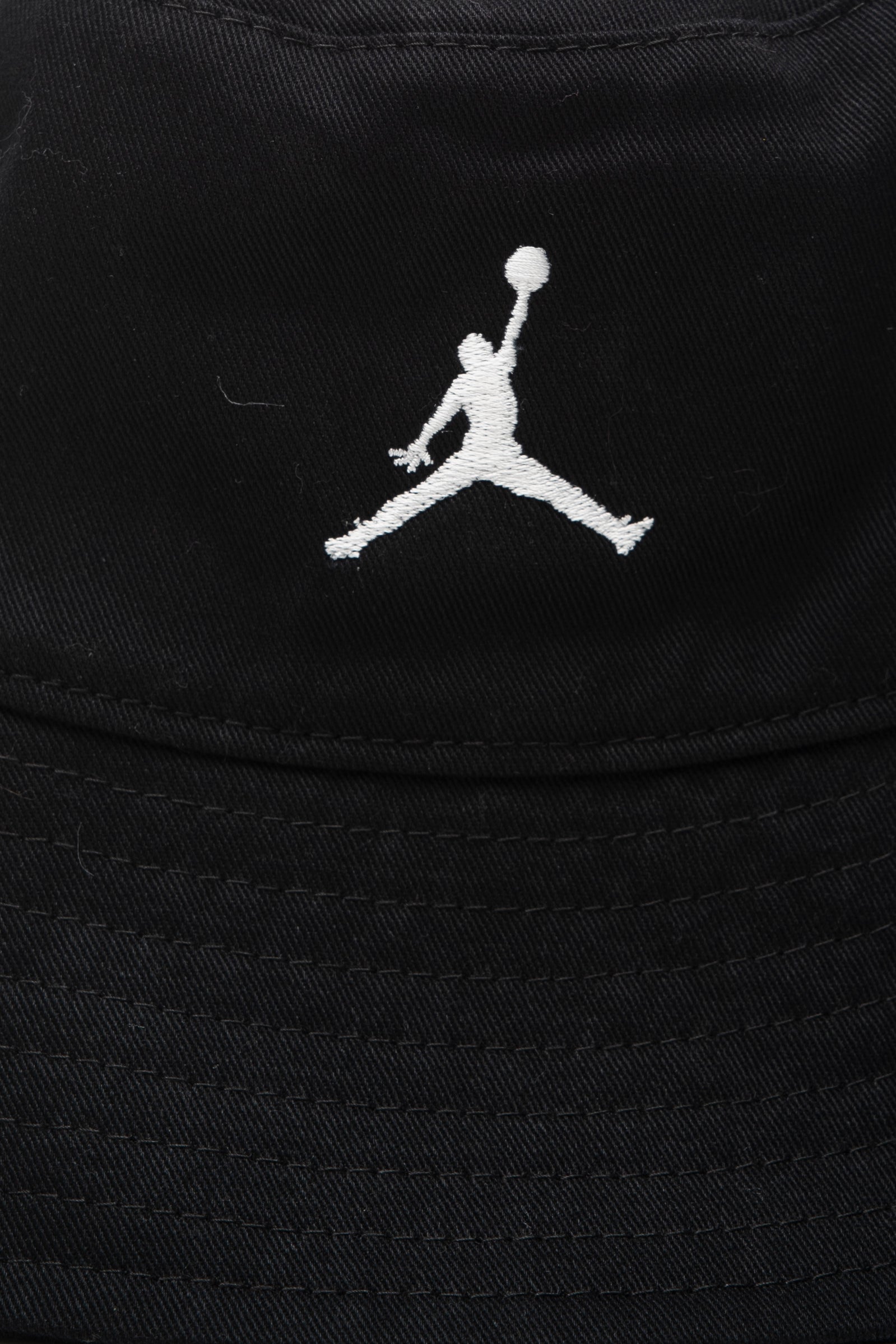 Cappello Nike Jordan da bambino in tessuto di puro cotone, modello bucket da pescatore a falda circolare impunturata, con piccolo logo Jordan frontale ricamato a filo a contrasto colore