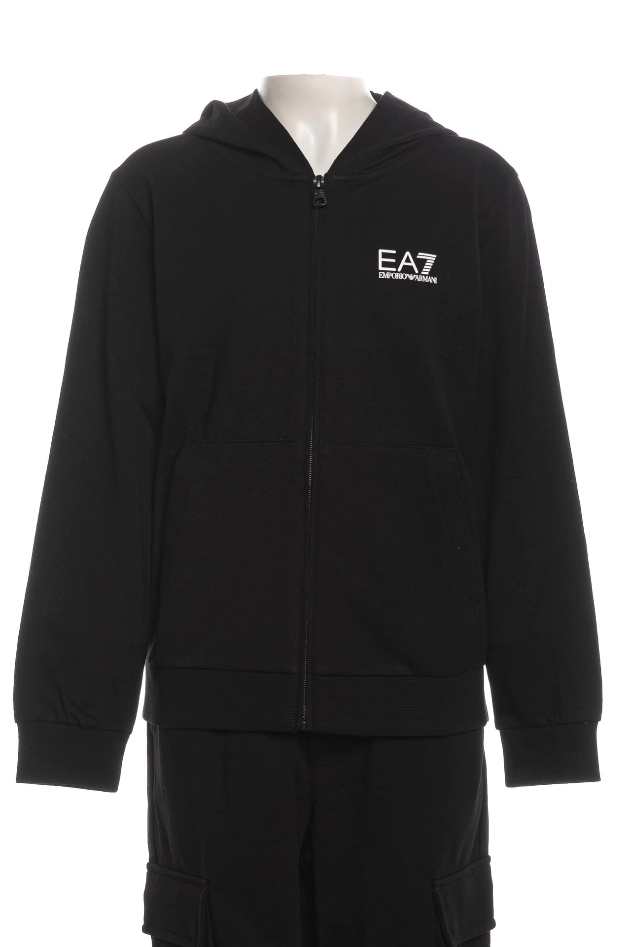 Felpa EA7 Train Core ID Boy Hoodie da bambino garzata in cotone, modern fit a manica lunga, con cappuccio, chiusura zip, logo in stampa gommata a contrasto colore sul petto, tasche a marsupio e cannolè in maglia