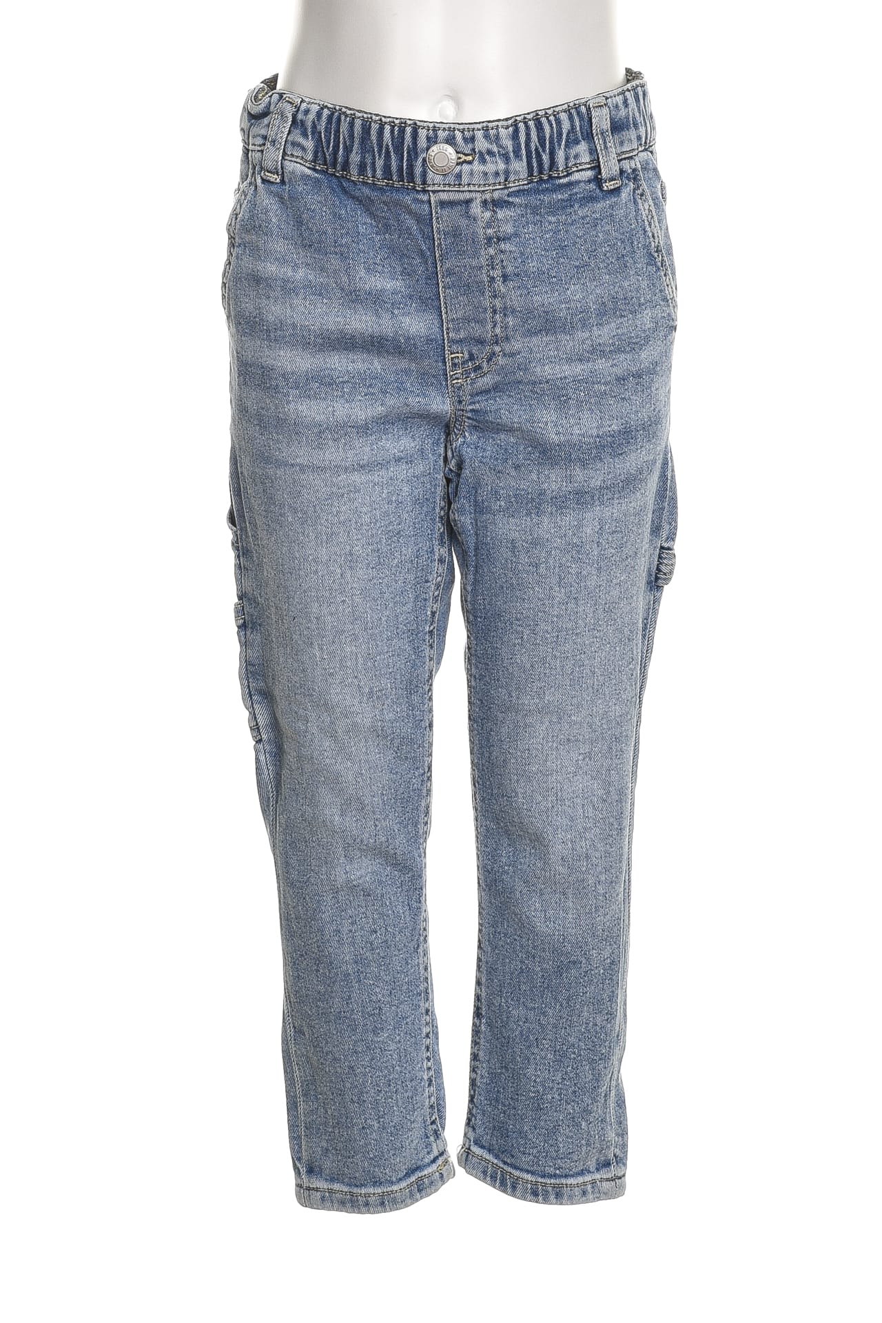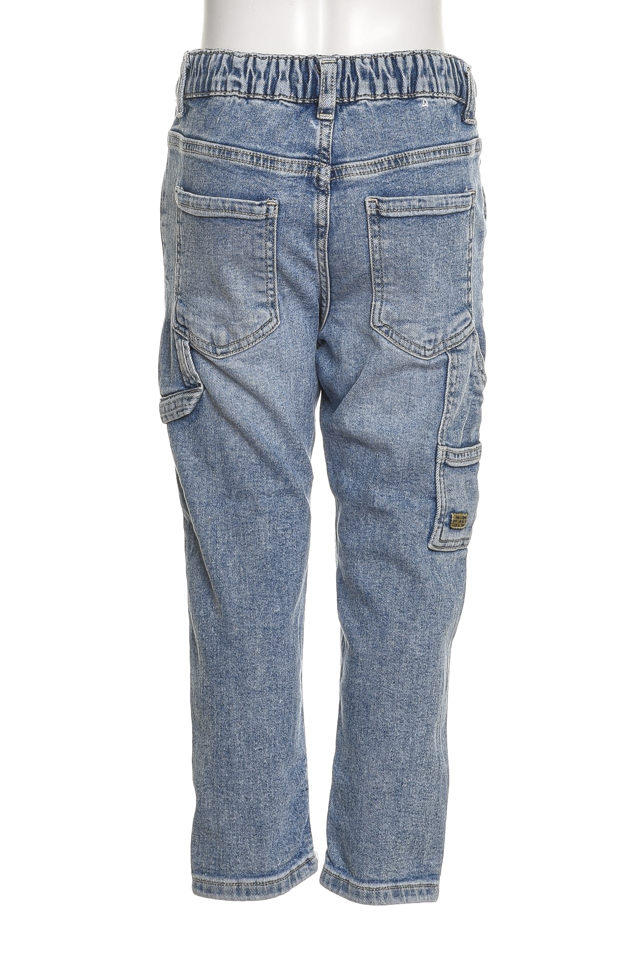 Jeans Name It Ben Tap da bambino in denim stretch di cotone parzialmente organico sottoposto a trattamento per un aspetto vintage, modello cinque tasche dal taglio chino, baggy tapered fit, con tasche america anteriori e a toppa laterali e posteriori e vita elasticizzata regolabile da bottoni interni