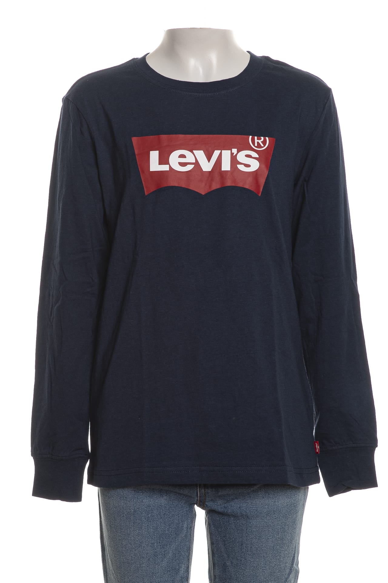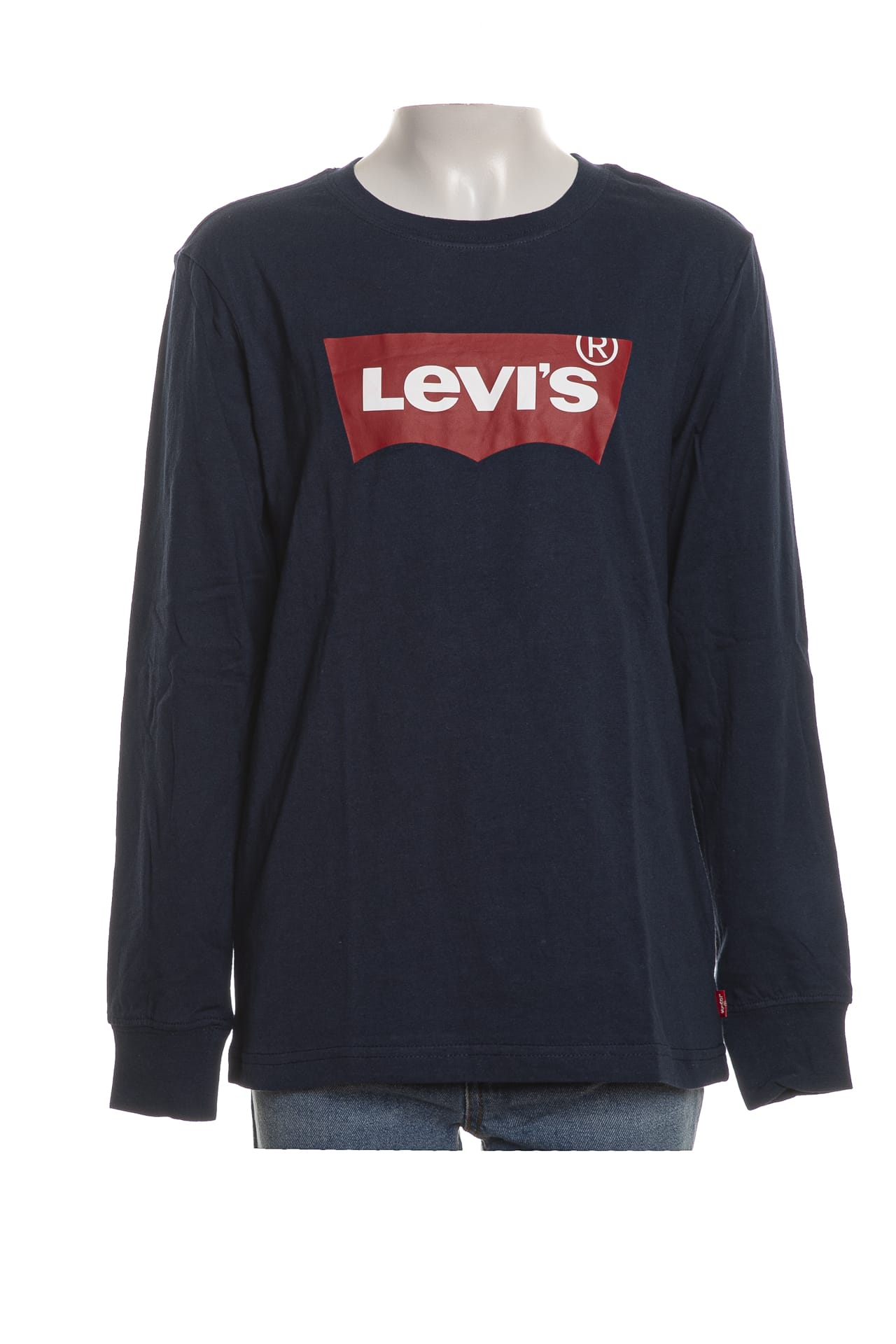 T shirt Levi's Bat Kid da bambino in tessuto di puro cotone, girocollo a manica lunga con polsino in maglia e maxi logo istituzionale frontale in stampa gommata bicolore