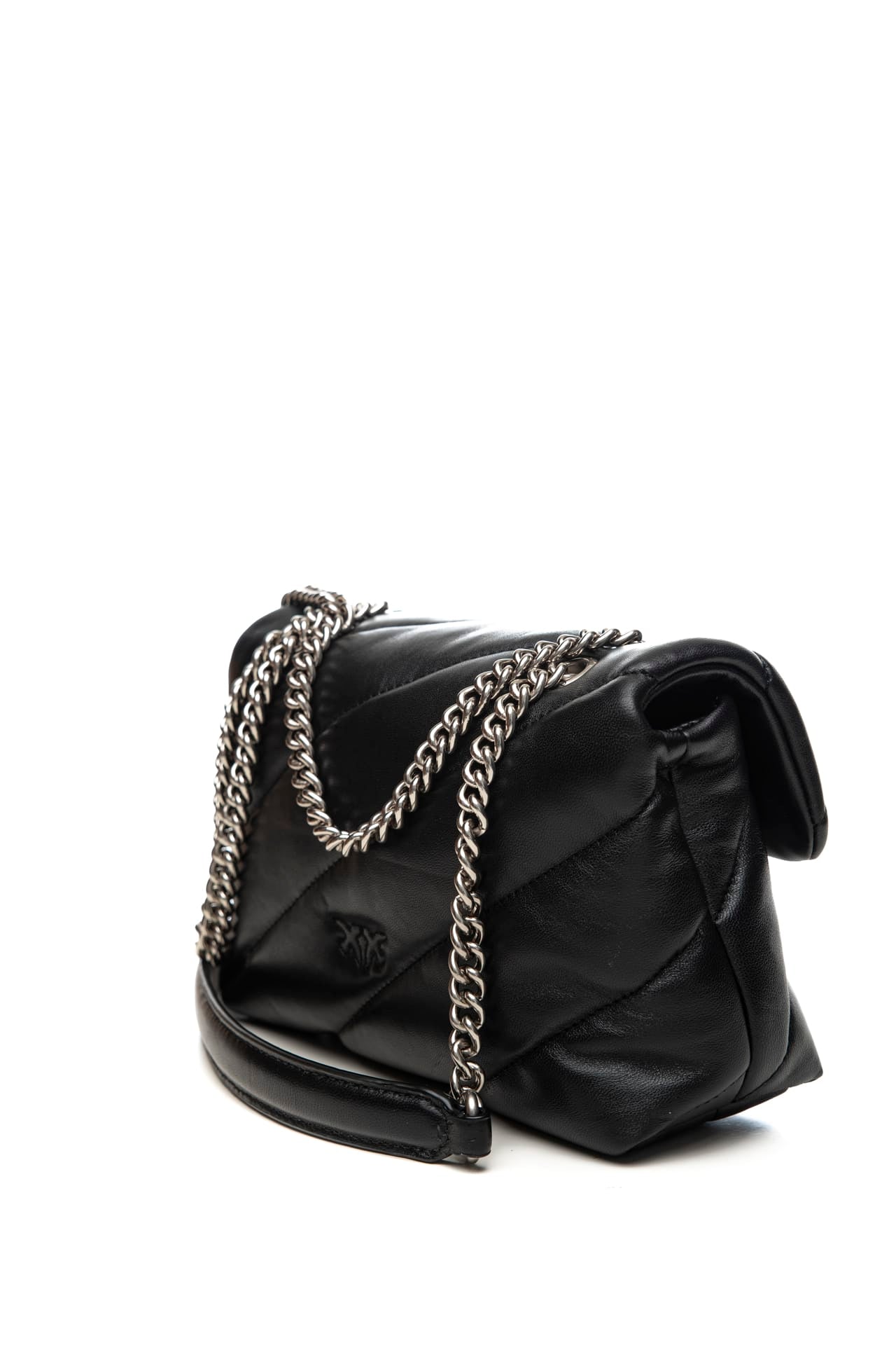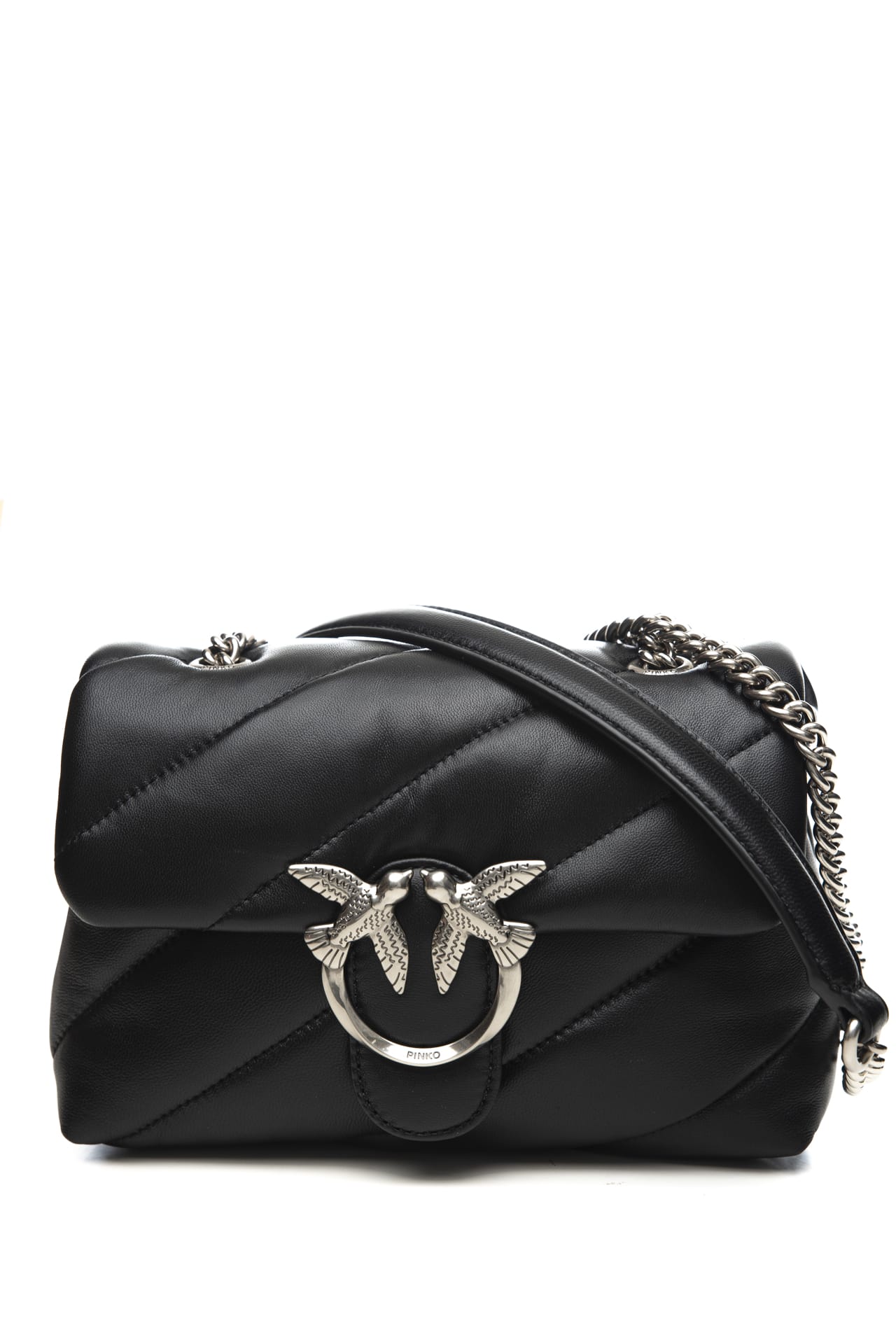 Borsa Pinko Love Puff Mini Sheep Steel da donna in nappa trapuntata diagonale, con fodera in microfibra ad effetto scamosciato, chiusura a incastro scorrevole, iconica fibbia Love Birds Diamond Cut sulla patta e tracolla regolabile in catena acciaio Misure: 21x9x15 cm