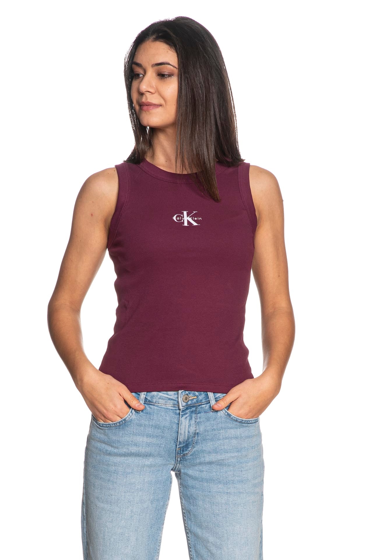 Canotta Calvin Klein Rib Mono Da Donna Vinaccia