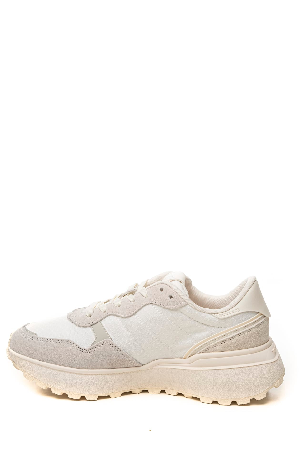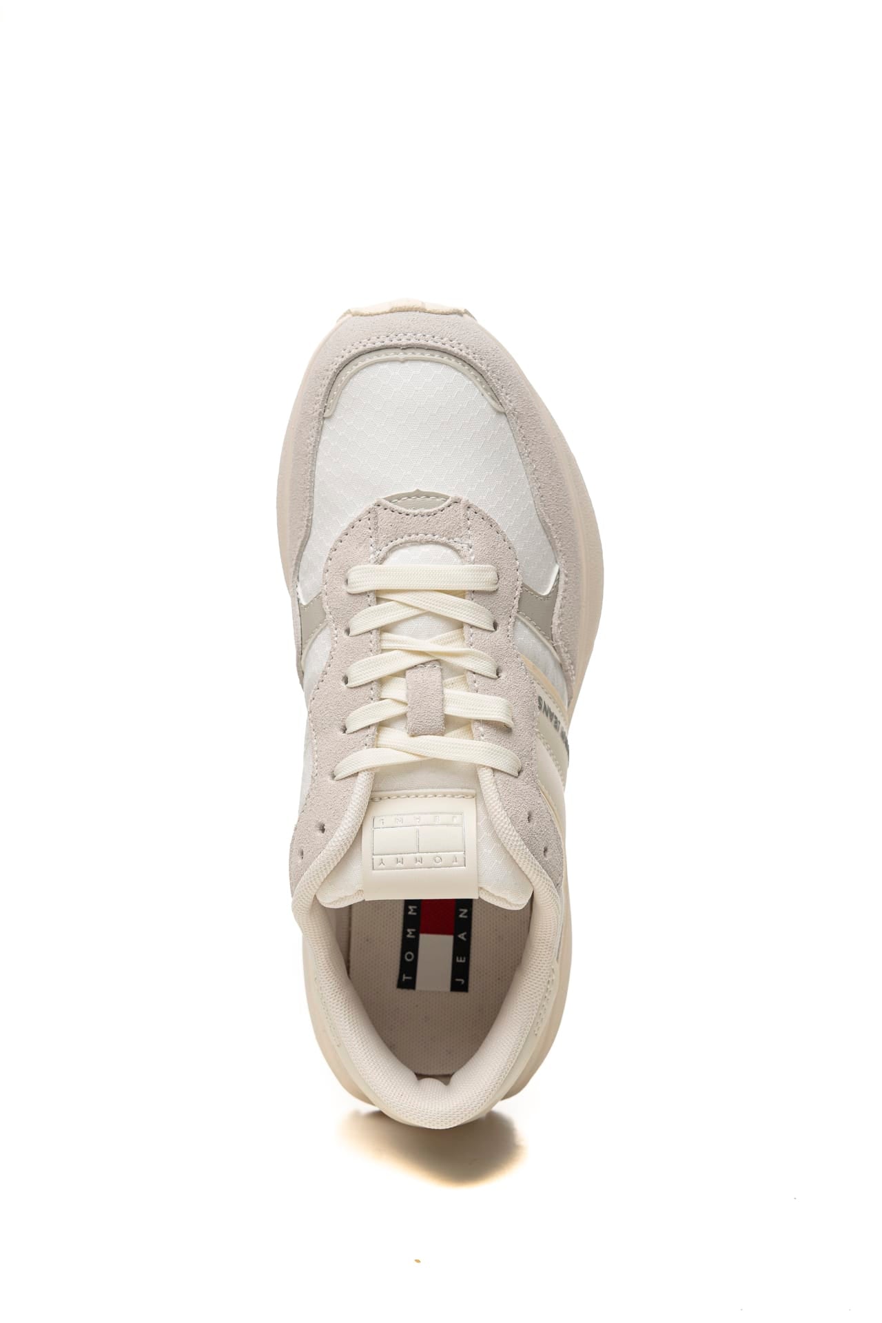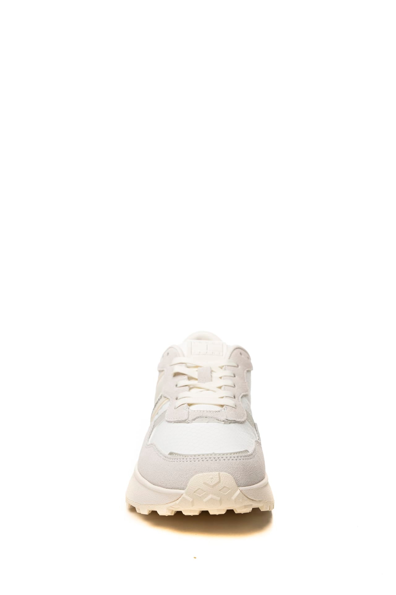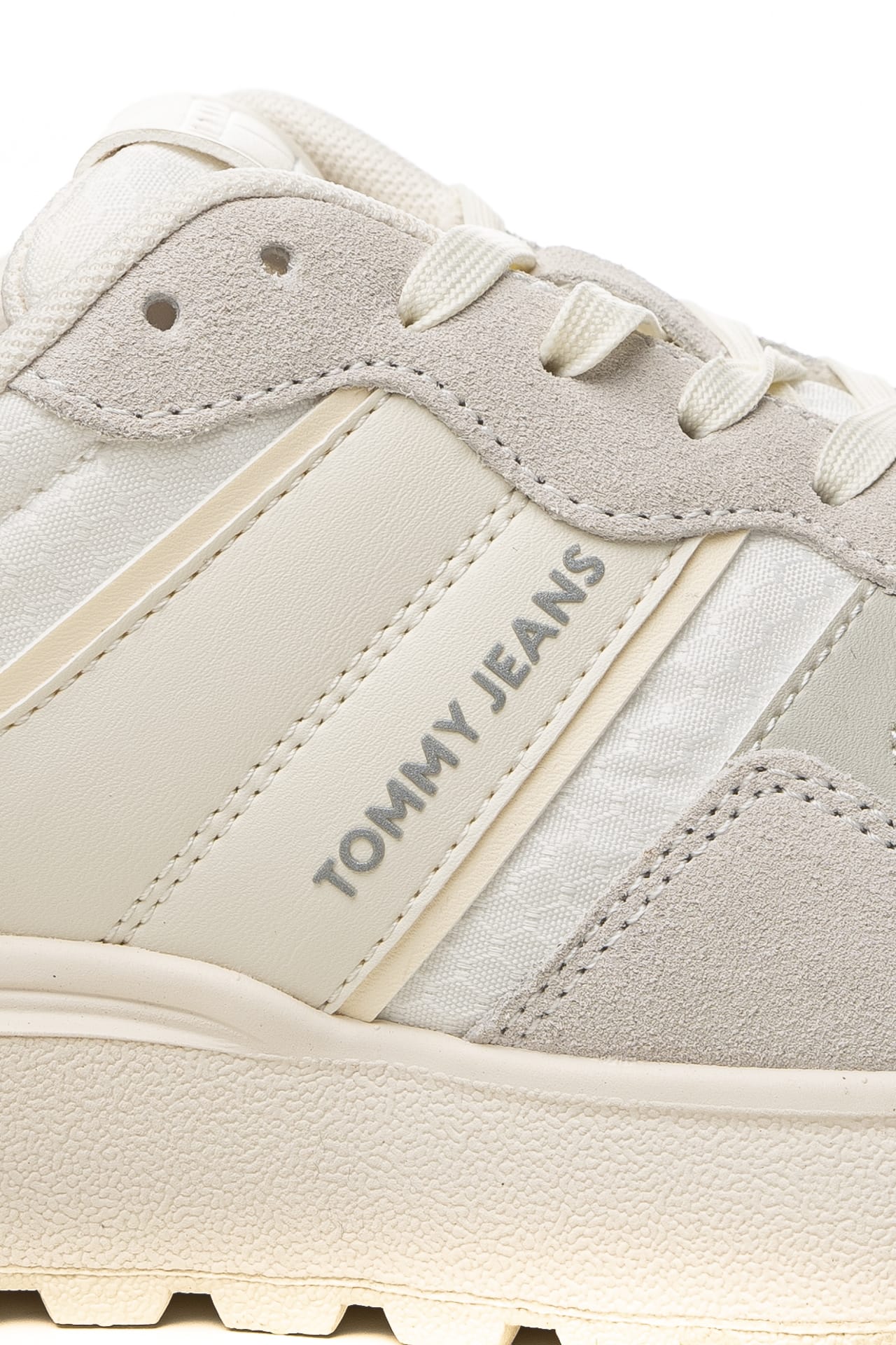 Scarpa Tommy Hilfiger Cleated Runner Suede Mix Da Donna Bianca Grigio Perla In Tessuto E Pelle Scamosciata