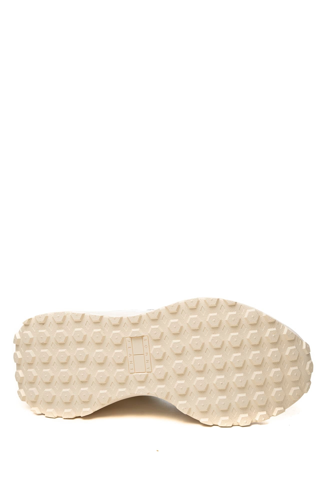 Scarpa Tommy Hilfiger Cleated Runner Suede Mix da donna in tessuto di poliestere e pelle scamosciata a contrasto colore, modello sneakers da running, con allacciatura a stringhe, collare e linguetta imbottiti, logo Twj lettering in stampa gommata sul laterale esterno e suola chunky con tacchetti antiscivolo in gomma