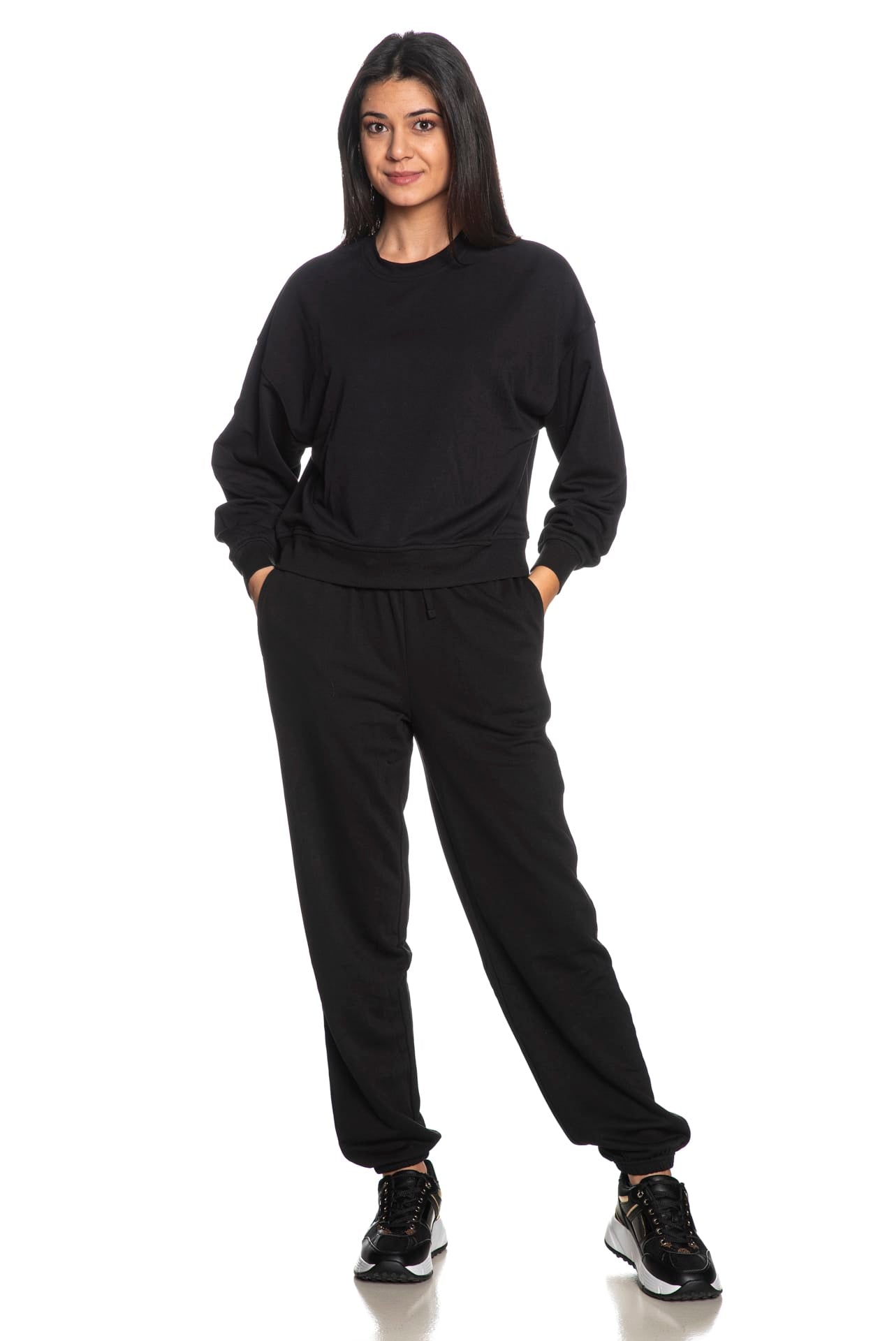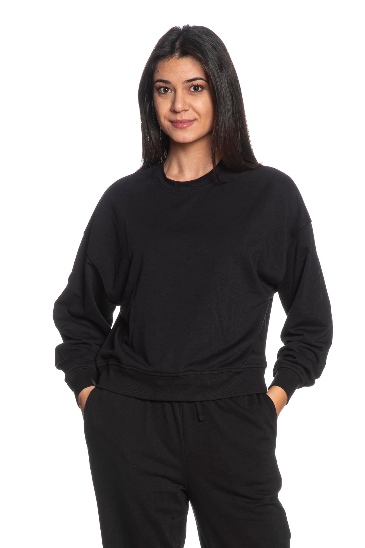 Felpa Only Best Classic Crw N da donna in tessuto garzato di poliestere riciclato e cotone, relaxed fit, corta, con spalla scesa, manica lunga, girocollo polsini e cannolè a costine