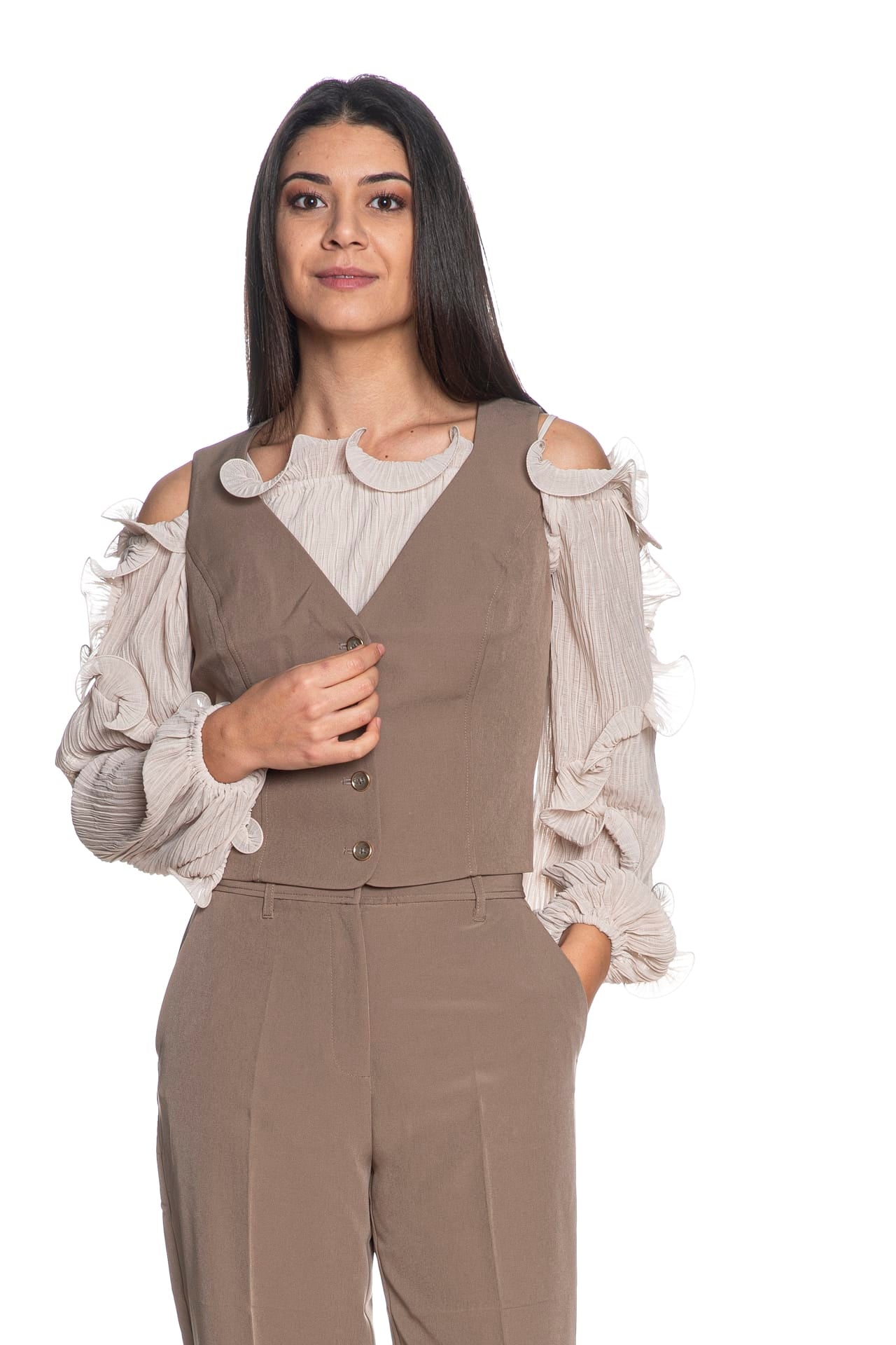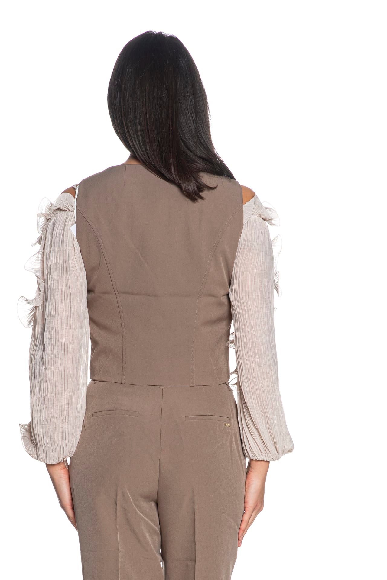 Gilet Guess Nausica da donna in tessuto di poliestere stretch, dal taglio sartoriale e sagomato, a quattro bottoni, con scollo a V e fondo dritto