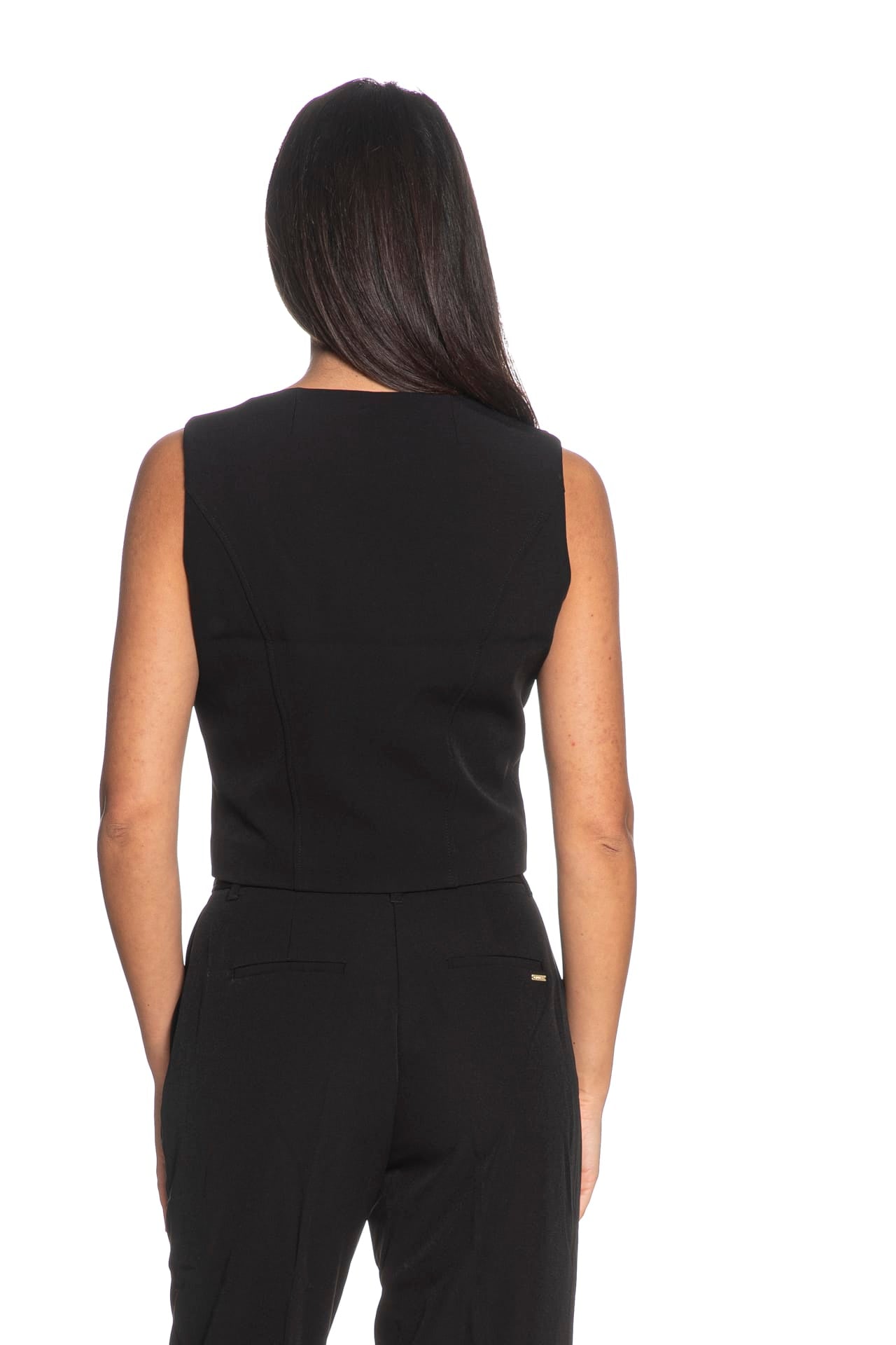 Gilet Guess Nausica da donna in tessuto di poliestere stretch, dal taglio sartoriale e sagomato, a quattro bottoni, con scollo a V e fondo dritto