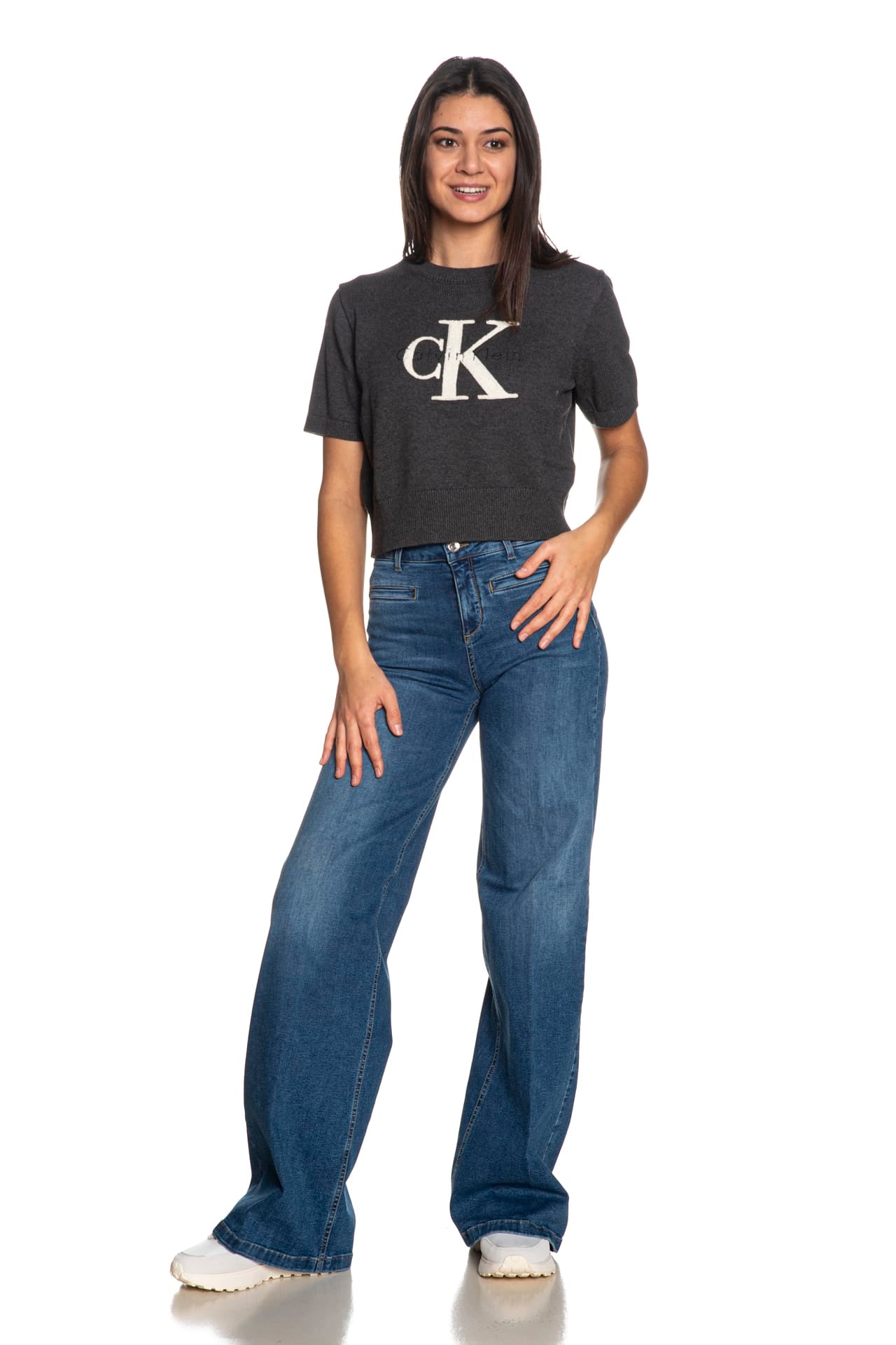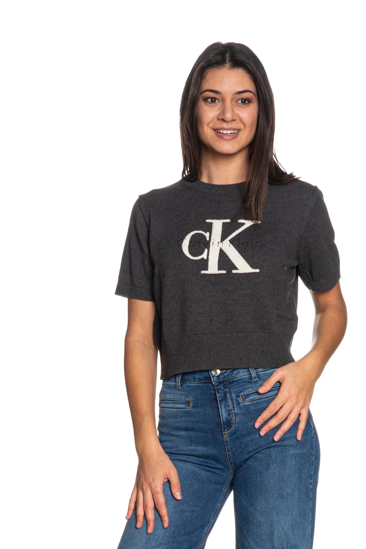 Maglia Calvin Klein Txt Cr Da Donna Fumo