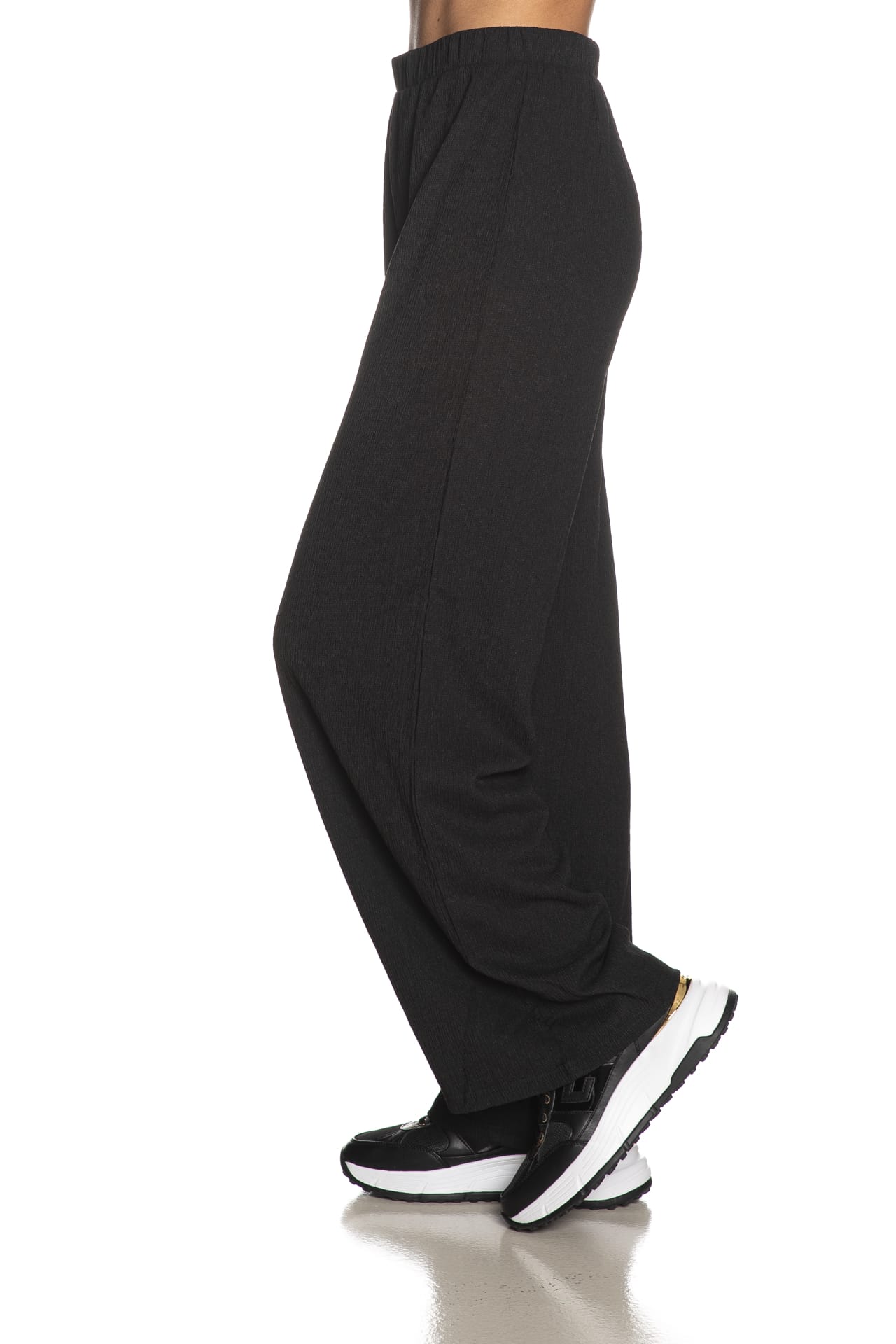 Pantalone Jdy Debbie W da donna in croccante tessuto wrinkle di poliestere elasticizzato, wide fit con vita elasticizzata