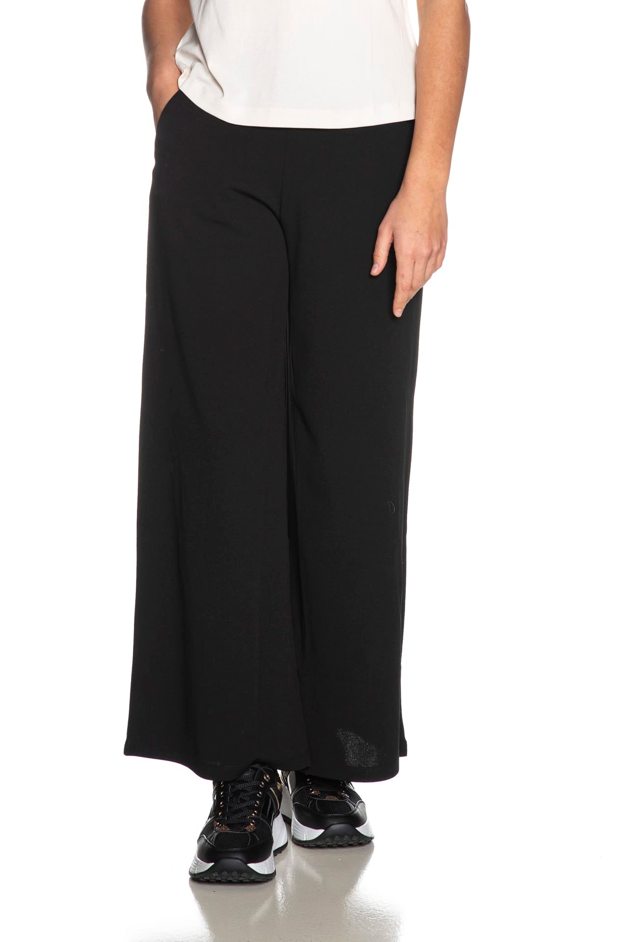 Pantalone Jdy Tanja da donna in tessuto stretch di poliestere, modello chino wide fit, con elastico posteriore in vita, tasche laterali america e gamba ampia